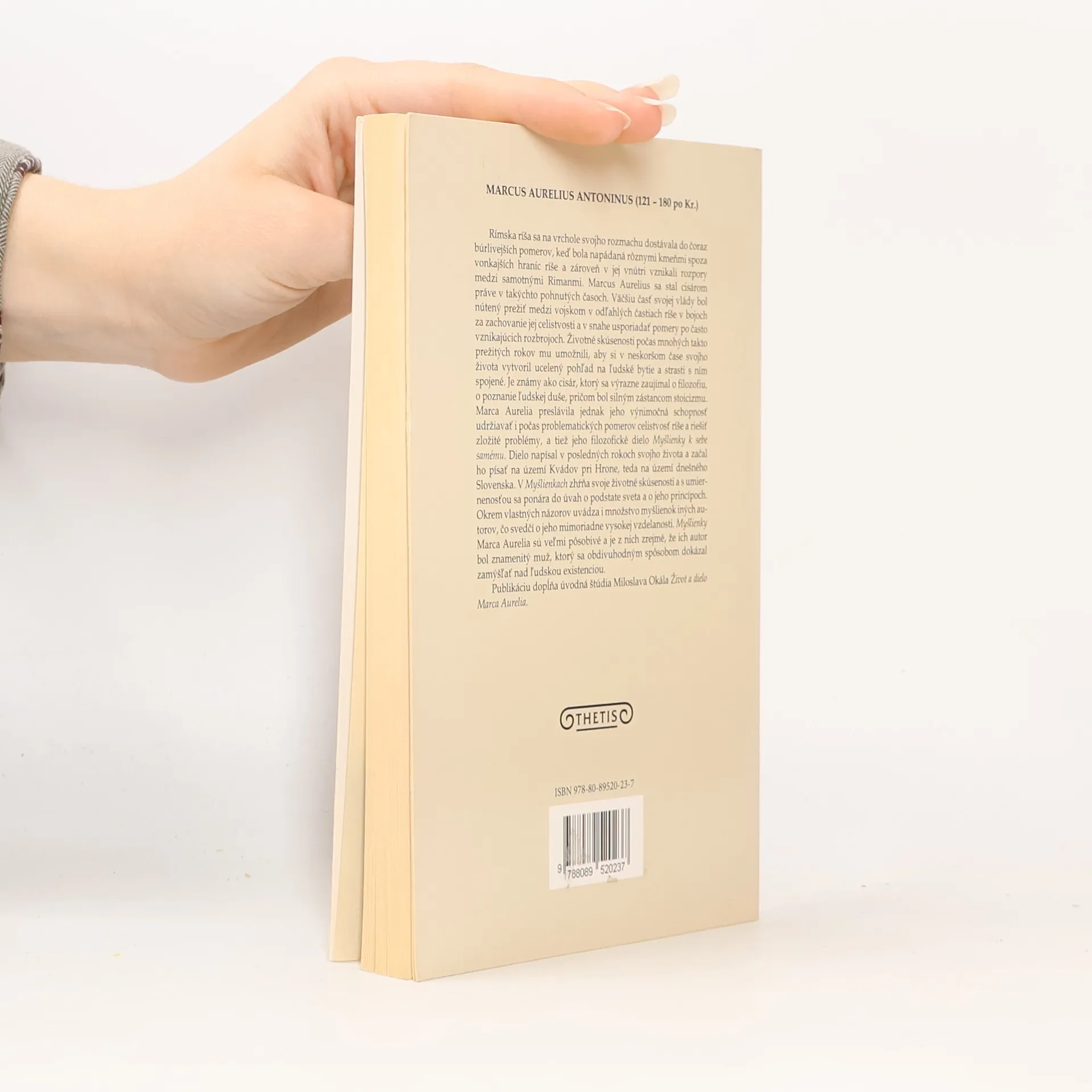 Rímska ríša sa na vrchole svojho rozmachu dostávala do búrlivých pomerov, keď čelila útokom rôznych kmeňov a vnútorným rozporom. Marcus Aurelius sa stal cisárom v týchto pohnutých časoch a väčšinu svojej vlády strávil medzi vojskom v odľahlých častiach ríše, kde bojoval za jej celistvosť a usporiadanie pomerov po rozbrojoch. Jeho životné skúsenosti mu umožnili vytvoriť si ucelený pohľad na ľudské bytie a strasti s ním spojené. Aurelius, známy svojím záujmom o filozofiu a stoicizmus, preslávil sa nielen schopnosťou udržať ríšu počas problémov, ale aj svojím filozofickým dielom, ktoré napísal v posledných rokoch života na území Kvádov, dnešného Slovenska. V diele zhŕňa svoje životné skúsenosti a zamýšľa nad podstatou sveta a jeho princípmi, pričom uvádza aj myšlienky iných autorov, čo svedčí o jeho vzdelanosti. Myšlienky Marca Aurelia sú pôsobivé a odhaľujú jeho hlboké zamyslenie nad ľudskou existenciou. Publikáciu dopĺňa úvodná štúdia Miloslava Okála o jeho živote a diele.