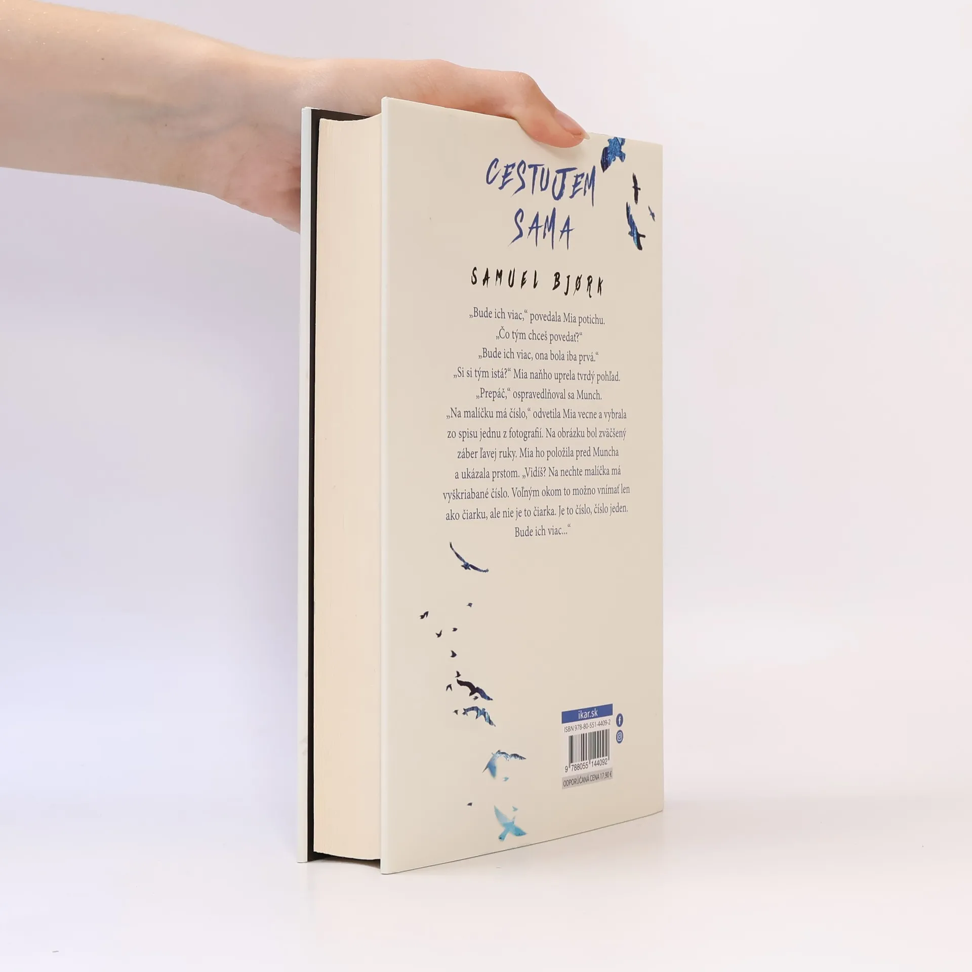 Brilantný nórsky triler, ktorý vyvolal hotovú senzáciu. Počas prechádzky sa mužovi z ničoho nič vytrhne pes a zmizne medzi stromami. Muž sa za ním rozbehne do hlbokého lesa a tam sa mu naskytne otrasný pohľad. Na strome visí obesené dievčatko, odeté ako bábika. Na chrbte má školskú aktovku a okolo krku priviazanú tabuľku s nápisom Cestujem sama. Prípadu sa ujme policajný vyšetrovateľ Holger Munch a veľmi rýchlo pochopí, že bude potrebovať pomoc bývalej kolegyne Mie Krügerovej. Len ona dokáže spozorovať stopy, ktoré všetkým naokolo unikajú. Lenže Mia, kedysi energická a plná života, má vážne psychické problémy. Holger Munch sa ju rozhodne vyhľadať a presvedčiť, aby mu pomohla s vyšetrovaním. Ani jeden z nich však ešte netuší, že tento prípad sa rýchlo zmení na najhoršiu nočnú moru.