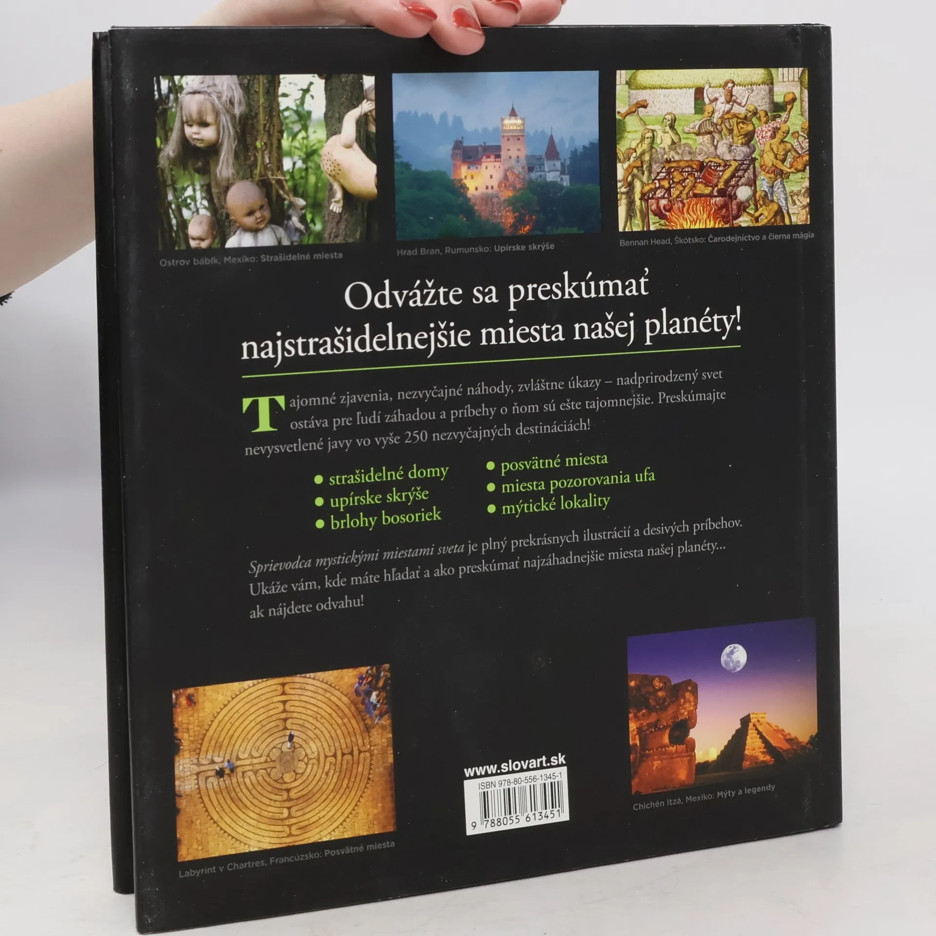 Bosorky a diabli, duchovia a upíri, mimozemšťania a duše vúdú... Nadprirodzené znamenia už po stáročia vyvolávajú v ľuďoch hrôzu a zároveň ich fascinujú. Naberte odvahu a odhaľte najväčšie záhady sveta v pozoruhodnej zbierke strašidelných hradov, zabudnutých úkrytov a nezvyčajných, no významných udalostí! Bohato ilustrovaný Sprievodca mystickými miestami sveta priblíži vyše 250 pozoruhodných destinácií od Ostrova bábik až po Chichén Itzá v Mexiku.