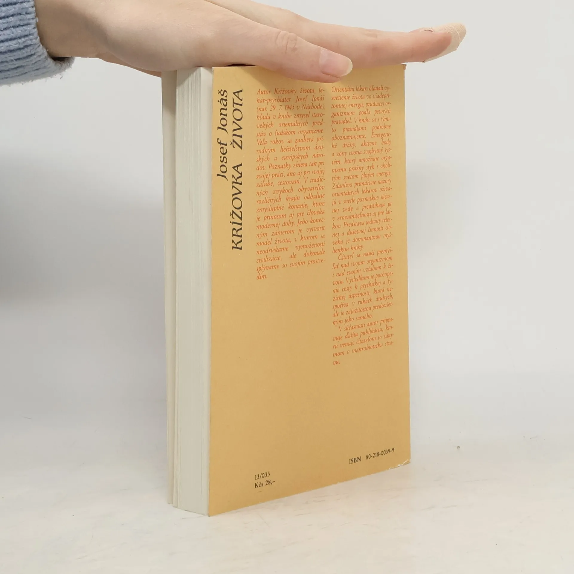 Autor Krížovky života, lekár-psychiater Josef Jonáš (nar. 29. 7. 1945 v Náchode), hľadá v knihe zmysel starovekých orientálnych predstáv o ľudskom organizme. Veľa rokov sa zaoberá prírodným liečiteľstvom ázijských a európskych národov. Poznatky zbiera tak pri svojej práci, ako aj pri svojej záľube, cestovaní. V tradičných zvykoch obyvateľov rozličných krajín odhaľuje zmysluplné konanie, ktoré je prínosom aj pre človeka modernej doby. Jeho konečným zámerom je vytvoriť model života, v ktorom sa neodriekame vymožeností civilizácie, ale dokonale splývame so svojím prostredím. Orientálni lekári hľadali vysvetlenie života vo všadeprítomnej energii, prúdiacej organizmom podľa pevných pravidiel. V knihe sa s týmito pravidlami podrobne oboznamujeme. Energetické dráhy, aktívne body a zóny tvoria svojbytný systém, ktorý umožňuje organizmu pružný styk s okolitým svetom plným energie. Zdanlivo primitívne názory orientálnych lekárov ožívajú v svetle poznatkov súčasnej vedy a predstihujú ju v zrozumiteľnosti aj pre laikov. Predstava jednoty telesnej a duševnej činnosti človeka je dominantnou myšlienkou knihy. Čitateľ sa naučí premýšľať nad svojím organizmom i nad svojím vzťahom k životu. Výsledkom je pochopenie cesty k psychickej a fyzickej úspešnosti, ktorá nespočíva v rukách druhých, ale je záležitosťou predovšetkým jeho samého.