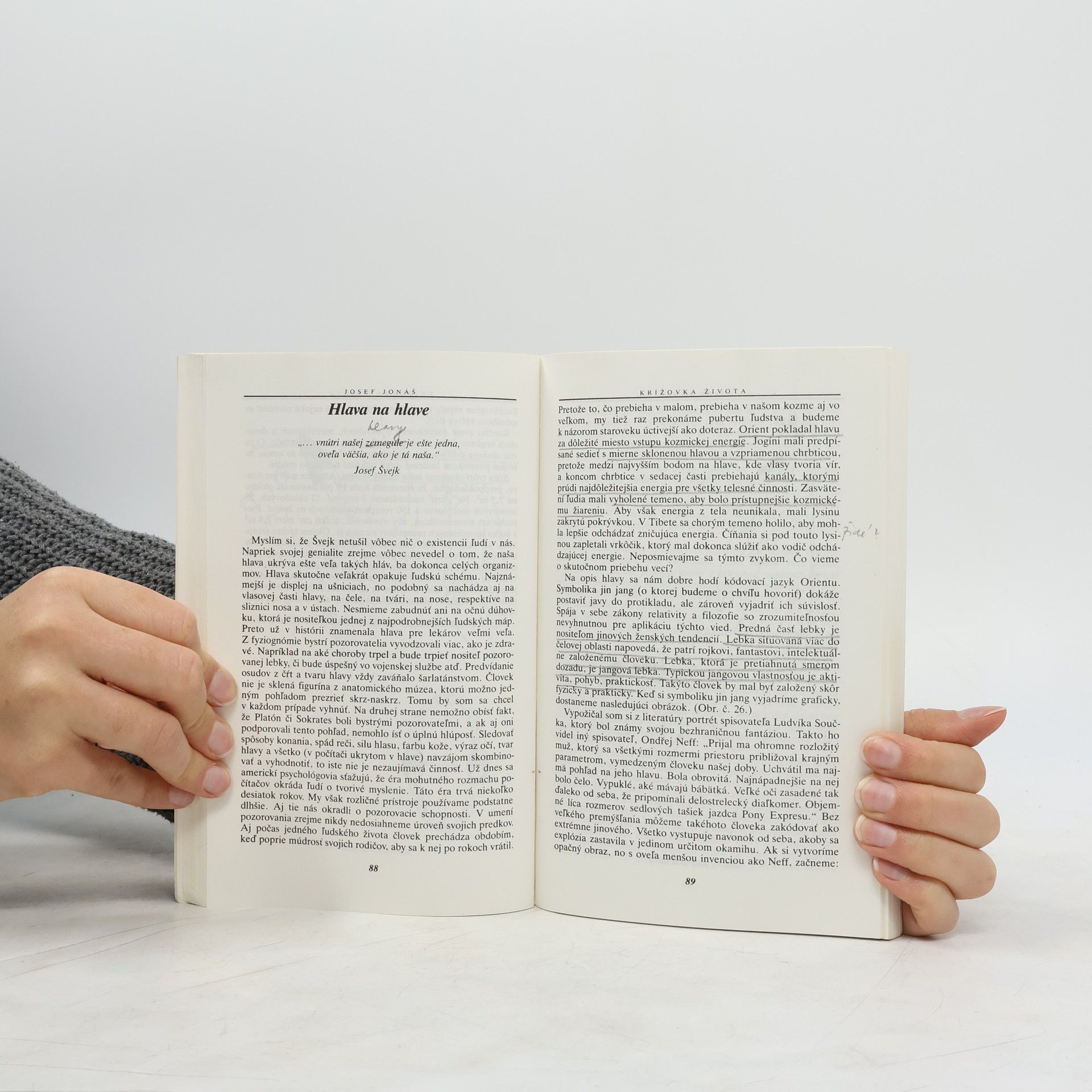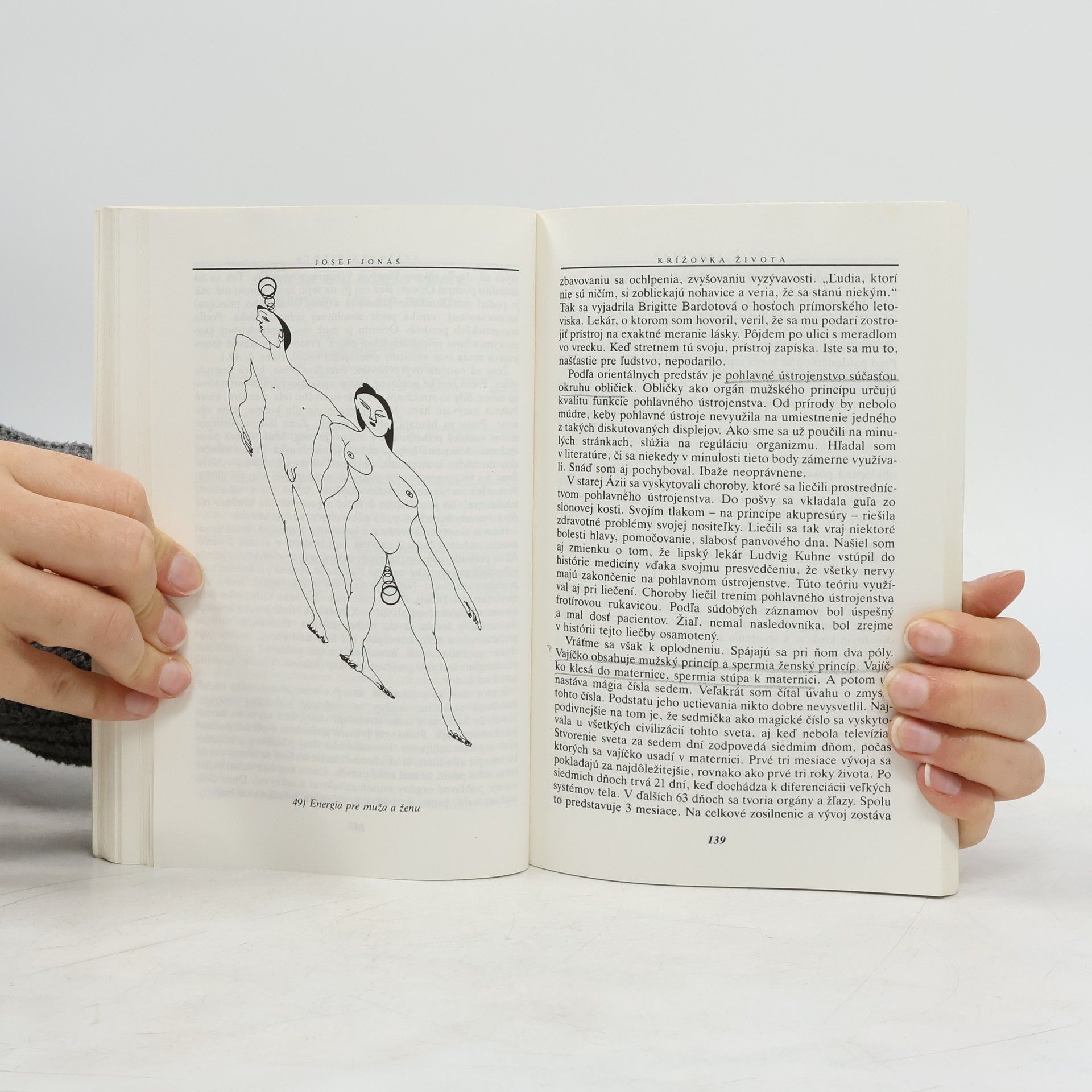 Autor Krížovky života, lekár-psychiater Josef Jonáš (nar. 29. 7. 1945 v Náchode), hľadá v knihe zmysel starovekých orientálnych predstáv o ľudskom organizme. Veľa rokov sa zaoberá prírodným liečiteľstvom ázijských a európskych národov. Poznatky zbiera tak pri svojej práci, ako aj pri svojej záľube, cestovaní. V tradičných zvykoch obyvateľov rozličných krajín odhaľuje zmysluplné konanie, ktoré je prínosom aj pre človeka modernej doby. Jeho konečným zámerom je vytvoriť model života, v ktorom sa neodriekame vymožeností civilizácie, ale dokonale splývame so svojím prostredím. Orientálni lekári hľadali vysvetlenie života vo všadeprítomnej energii, prúdiacej organizmom podľa pevných pravidiel. V knihe sa s týmito pravidlami podrobne oboznamujeme. Energetické dráhy, aktívne body a zóny tvoria svojbytný systém, ktorý umožňuje organizmu pružný styk s okolitým svetom plným energie. Zdanlivo primitívne názory orientálnych lekárov ožívajú v svetle poznatkov súčasnej vedy a predstihujú ju v zrozumiteľnosti aj pre laikov. Predstava jednoty telesnej a duševnej činnosti človeka je dominantnou myšlienkou knihy. Čitateľ sa naučí premýšľať nad svojím organizmom i nad svojím vzťahom k životu. Výsledkom je pochopenie cesty k psychickej a fyzickej úspešnosti, ktorá nespočíva v rukách druhých, ale je záležitosťou predovšetkým jeho samého.