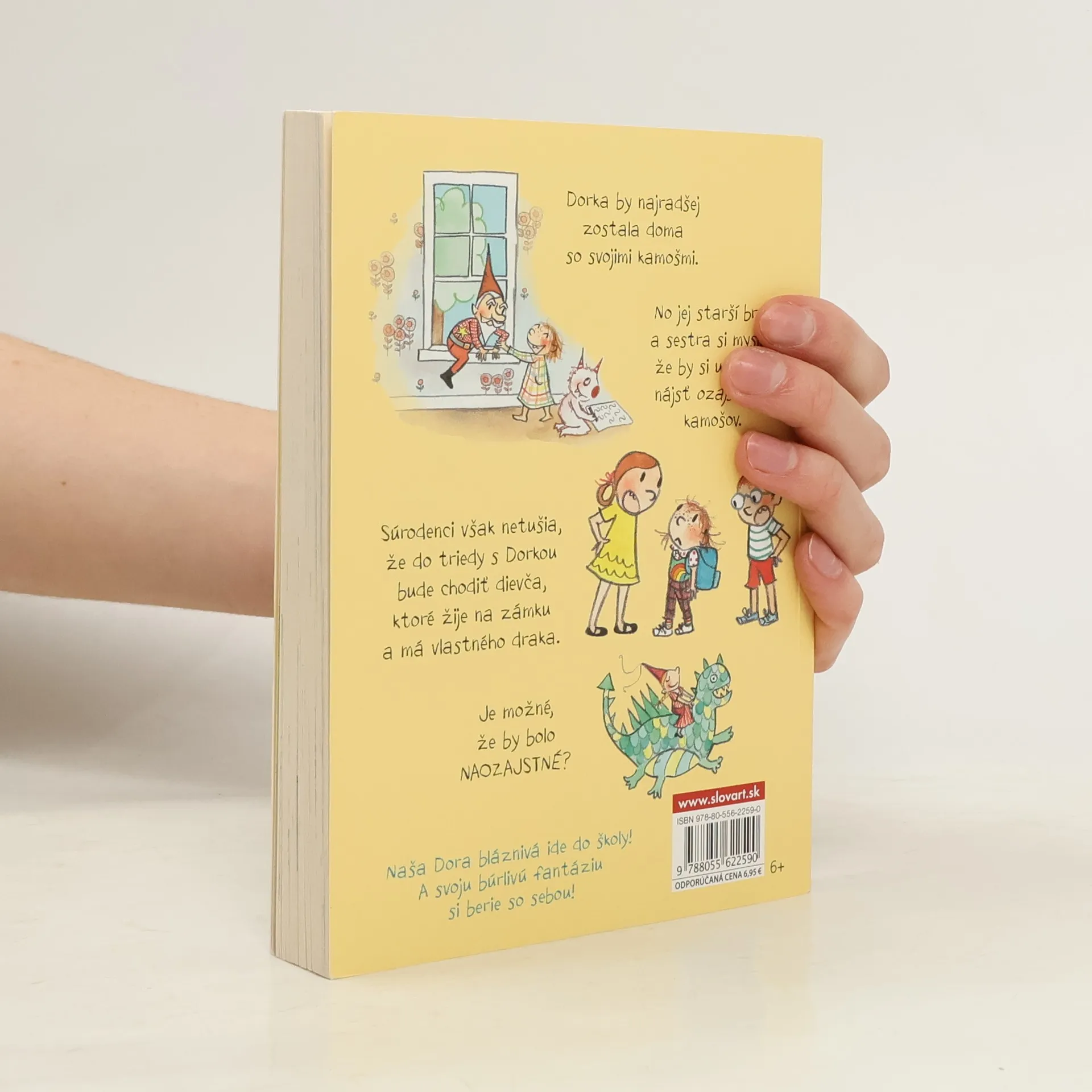 Prečítajte si druhé pokračovanie fantasticky fantazmagorických dobrodružstiev Dorky Magorky. Jej fantázia nepozná hraníc. Už sa nevie dočkať svojho prvého školského dňa. Teda, až kým jej súrodenci nepovedia, čo všetko sa tam nesmie robiť. Nesmie chodiť celý deň v pyžame, rozprávať sa sama so sebou, presúvať nábytok a stavať si pevnosť. Ale najhoršie je, že je tam prísne zakázané fantazmagoriť! Takže s ňou jej najlepšia kamoška Zorka nemôže ísť do školy. Našťastie v triede stretne dievčatko s rovnako bujnou fantáziou. Teraz už len musí všetkých presvedčiť, že si novú kamošku nevymyslela.
