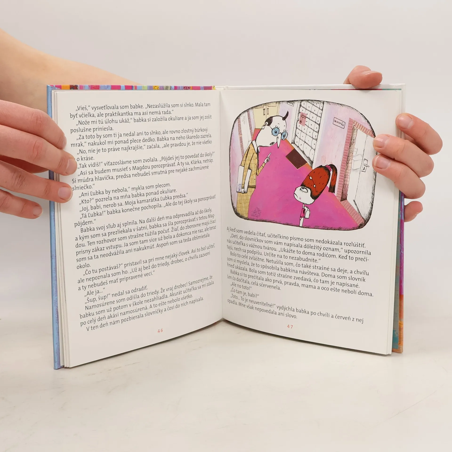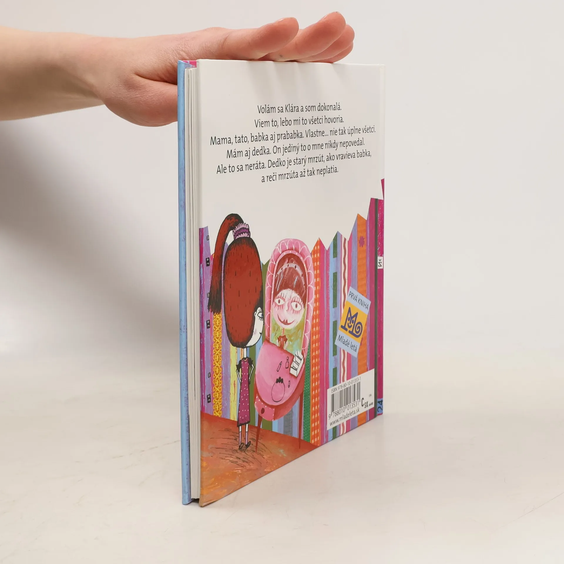 Väčšina detí prichádza do prvej triedy s obavami, aké to tam bude, či to zvládnu, či bude pani učiteľka dobrá… Ale to sa netýka Kláry. Klára má babku učiteľku, svoju školu už pozná, pozná aj učiteľky, lebo sa stretávajú s babkou, ba vie už aj čítať. V škole je preto suverénna a svoju prevahu dáva všetkým najavo. Zrazu však zažije veľké prekvapenie — zistí, že aj iné deti sú šikovné, ba môžu byť aj šikovnejšie, a to Kláru vyburcuje k zúrivému súťaženiu a porovnávaniu. Neváha dokonca nútiť babku učiteľku, aby jej protekčne vybavila výhody, keď nejde všetko podľa jej priania. Našťastie, je tu dedko, ktorý jediný povie svojej vnučke pravdu, aj keď je nepríjemná, a Klára si napokon uvedomí, prečo nedokáže zniesť prehru a prečo nemá kamarátky. Prvá kniha ponúka dieťaťu veselé príbehy zo školských lavíc a spolu s vtipnými ilustráciami ho bude sprevádzať aj cez prvé školské prázdniny, keď si ju už bude čítať ako naozajstný žiak. Bonus: na konci knihy je malá dramatizácia rozprávky, ktorú môžu prváčikovia nacvičiť s pani učiteľkou.