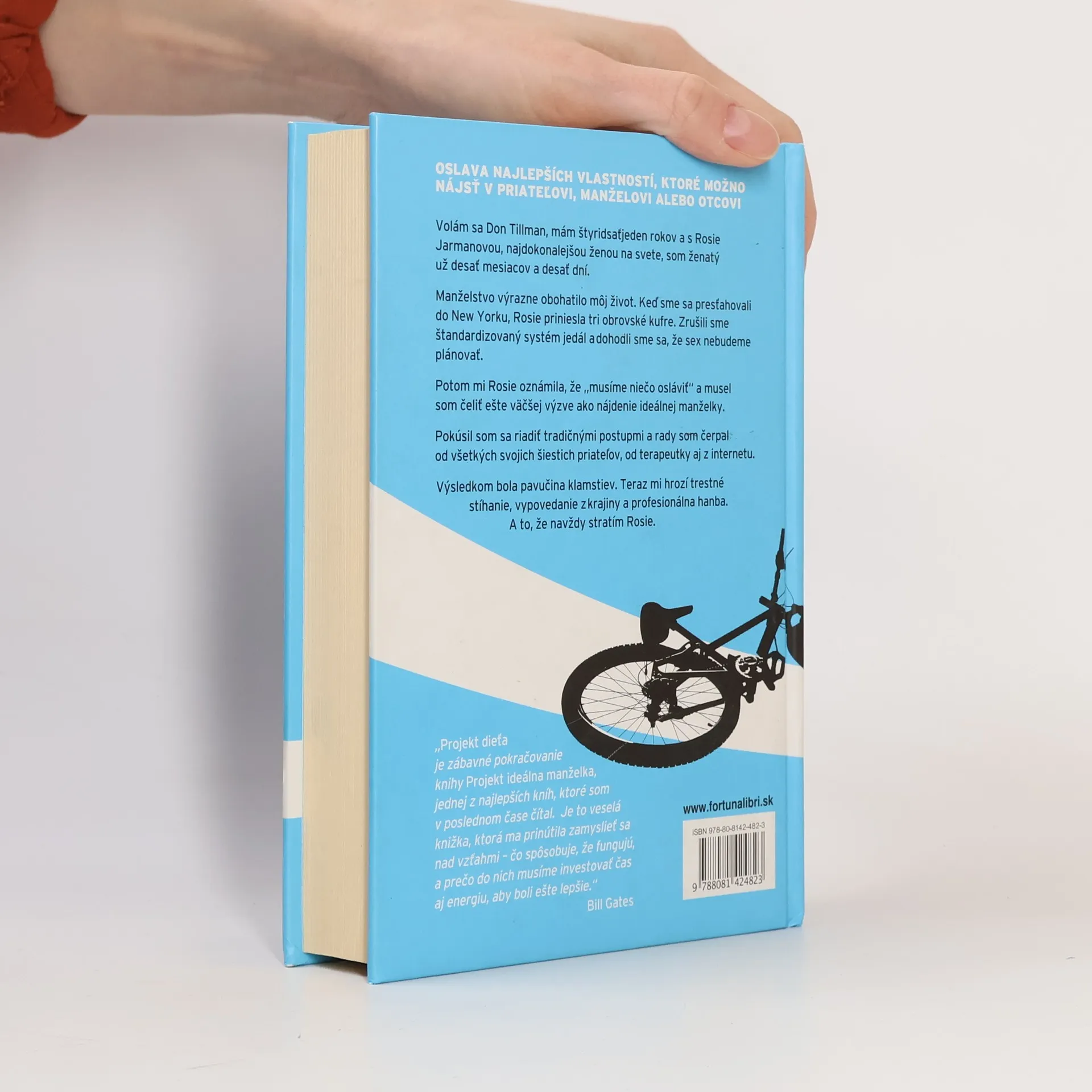 OSLAVA NAJLEPŠÍCH VLASTNOSTÍ, KTORÉ MOŽNO NÁJSŤ V PRIATEĽOVI, MANŽELOVI ALEBO OTCOVI Humorný román o Donovi, mužovi s Aspergerovým syndrómom, a jeho manželke Rosie a o tom, ako sa Don vyrovná so správou, že čakajú dieťa. Je to voľné pokračovanie prvej knihy Projekt ideálna manželka. V manželstve musí rozum často ustúpiť harmónii. Volám sa Don Tillman, mám štyridsaťjeden rokov a s Rosie Jarmanovou, najdokonalejšou ženou na svete, som ženatý už desať mesiacov a desať dní. Manželstvo výrazne obohatilo môj život. Keď sme sa presťahovali do New Yorku, Rosie priniesla tri obrovské kufre. Zrušili sme štandardizovaný systém jedál a dohodli sme sa, že sex nebudeme plánovať. Potom mi Rosie oznámila, že „musíme niečo osláviť“ a musel som čeliť ešte väčšej výzve ako nájdenie ideálnej manželky. Pokúsil som sa riadiť tradičnými postupmi a čerpal som rady od všetkých svojich šiestich priateľov, od terapeutky aj z internetu. Výsledkom bola pavučina klamstiev. Teraz mi hrozí trestné stíhanie, vypovedanie z krajiny a profesionálna hanba. A to, že navždy stratím Rosie.