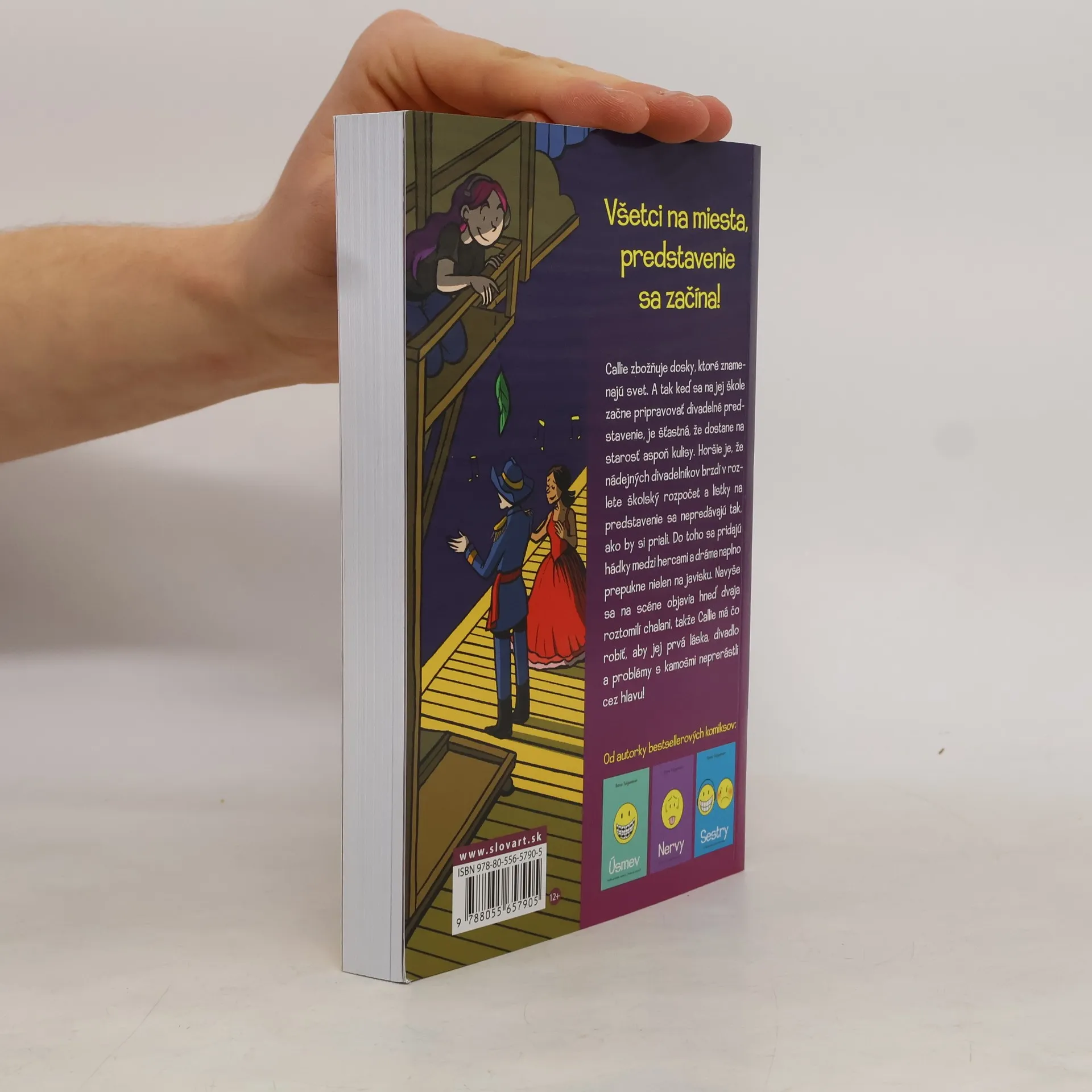 Callie zbožňuje dosky, ktoré znamenajú svet. A tak keď sa na jej škole začne pripravovať divadelné predstavenie, je celá šťastná, že dostala na starosti aspoň kulisy. Horšie je, že nádejných divadelníkov brzdí v rozlete školský rozpočet a lístky na predstavenie sa nepredávajú tak, ako by si priali. Do toho sa pridajú hádky medzi hercami a dráma môže naplno prepuknúť nielen na javisku. Navyše sa na scéne objavia hneď dvaja roztomilí chalani, takže Callie bude mať čo robiť, aby jej prvá láska, divadlo a problémy s kamošmi neprerástli cez hlavu!