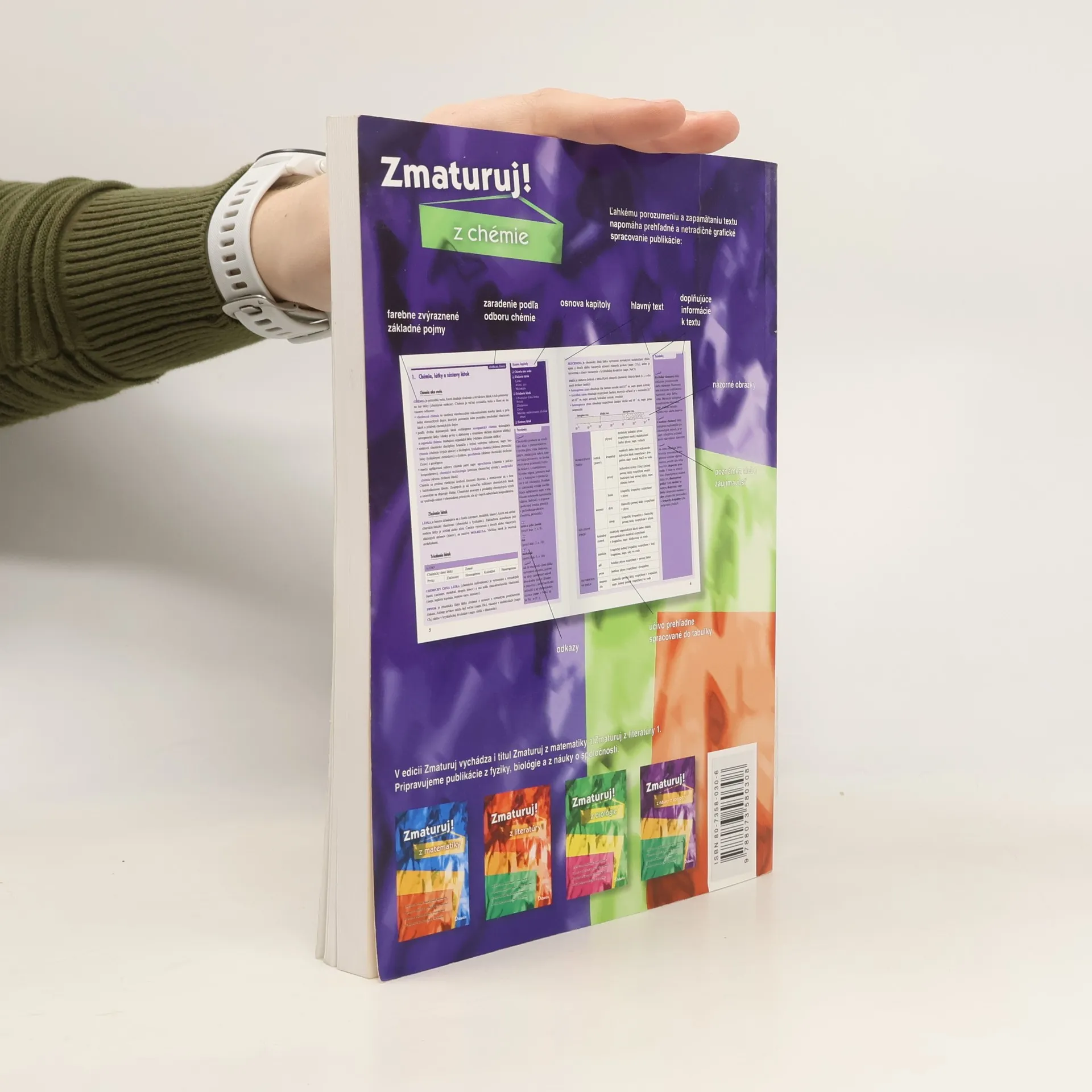 Publikácia podáva prehľadne usporiadané učivo chémie v rozsahu osnov strednej školy. Čitateľa postupne zoznámi s poznatkami zo všeobecnej chémie, anorganickej a organickej chémie, biochémie a tiež termochémie. Porozumenie a zapamätanie učiva podporujú prehľadné tabuľky a názorné schémy, text je doplnený aj príkladmi chemických výpočtov. Orientáciu v texte zjednodušuje členenie učiva na kapitoly a menšie tematické celky i abecedný register pojmov. Prehľadná a svieža grafická úprava uľahčí a spríjemní učenie. Publikácia je určená študentom stredných škôl, ktorí ju využijú počas celého stredoškolského štúdia, na prípravu na maturitu a tiež na prijímacie skúšky na vysoké školy.