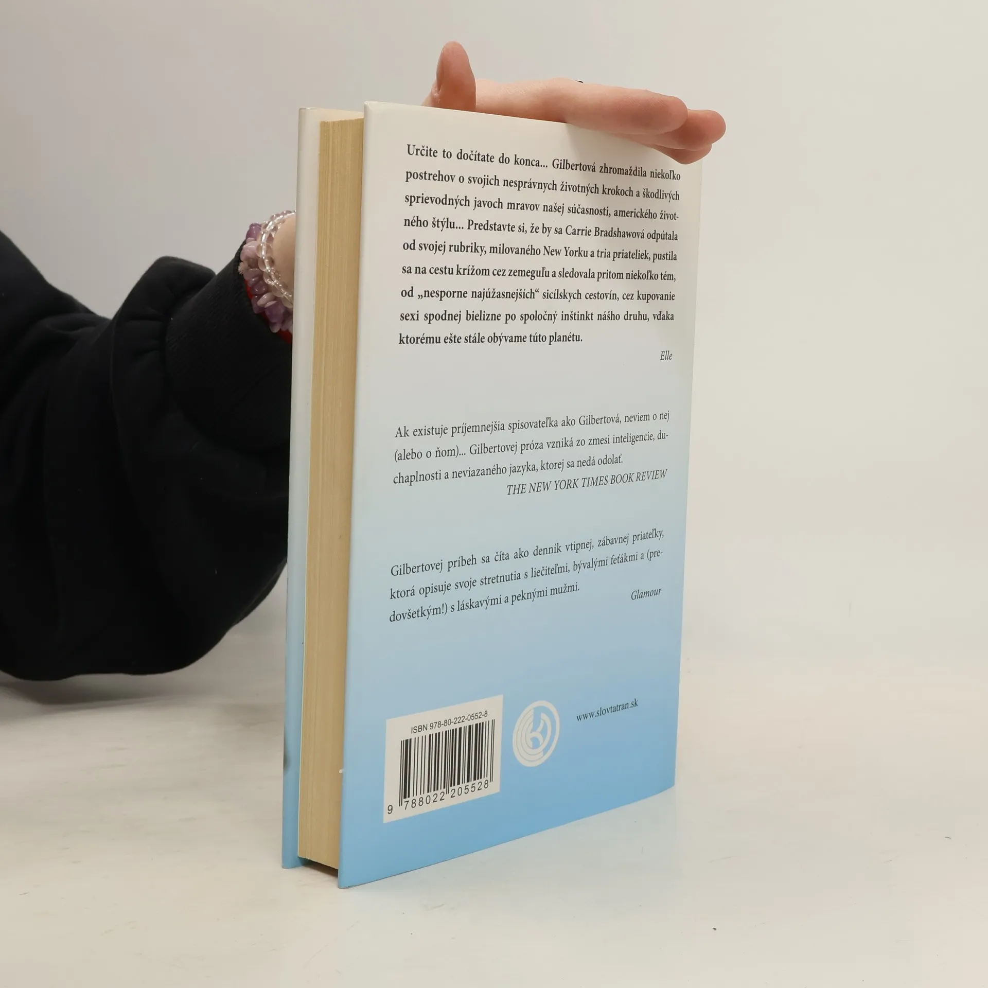 O žene, ktorá sa vybrala do Talianska, Indie a Indonézie, aby tam našla všetko... Krátko po tridsiatke mala Elizabeth Gilbertová všetko, po čom túži zvyčajne moderná Američanka – manžela, dom na vidieku, kariéru –, ale namiesto pocitov šťastia a naplnenia sa jej zmocnil panický strach a zmätok. Táto múdra a strhujúca kniha je príbehom o tom, ako zanechala všetky vonkajšie znaky úspešného života, aj o tom, čím ich nahradila. Po rozvode a zdrvujúcej depresii sa rozhodla preskúmať tri stránky svojho charakteru na scéne troch kultúr: v Taliansku hľadala pôžitok, v Indii zbožnosť a na indonézskom ostrove Bali rovnováhu medzi svetskými radosťami a božskou transcendenciou. Pôvabný, inteligentný a mimoriadne zábavný príbeh rozpráva autorka s vervou, humorom a prenikavým pohľadom, ktorým priťahuje ľudí ako magnet. Je to zarytá cestovateľka, skvelá rozprávačka, pričom terčom jej jedovatého humoru je často ona sama.