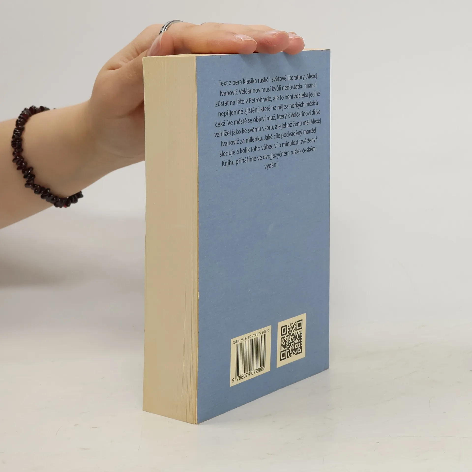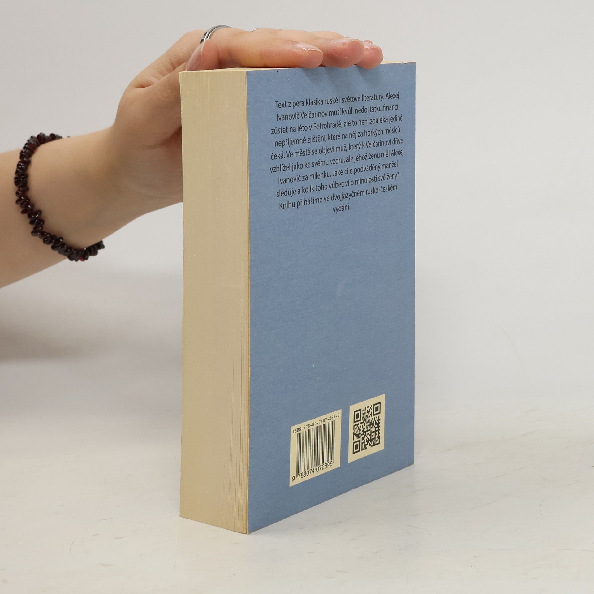 Text z pera klasika ruské i světové literatury. Alexej Ivanovič Velčarinov musí kvůli nedostatku financí zůstat na léto v Petrohradě, ale to není zdaleka jediné nepříjemné zjištění, které na něj za horkých měsíců čeká. Ve městě se objeví muž, který k Velčarinovi dříve vzhlížel jako ke svému vzoru, ale jehož ženu měl Alexej Ivanovič za milenku. Jaké cíle podváděný manžel sleduje a kolik toho vůbec ví o minulosti své ženy? Knihu přinášíme ve dvojjazyčném rusko-českém vydání.
