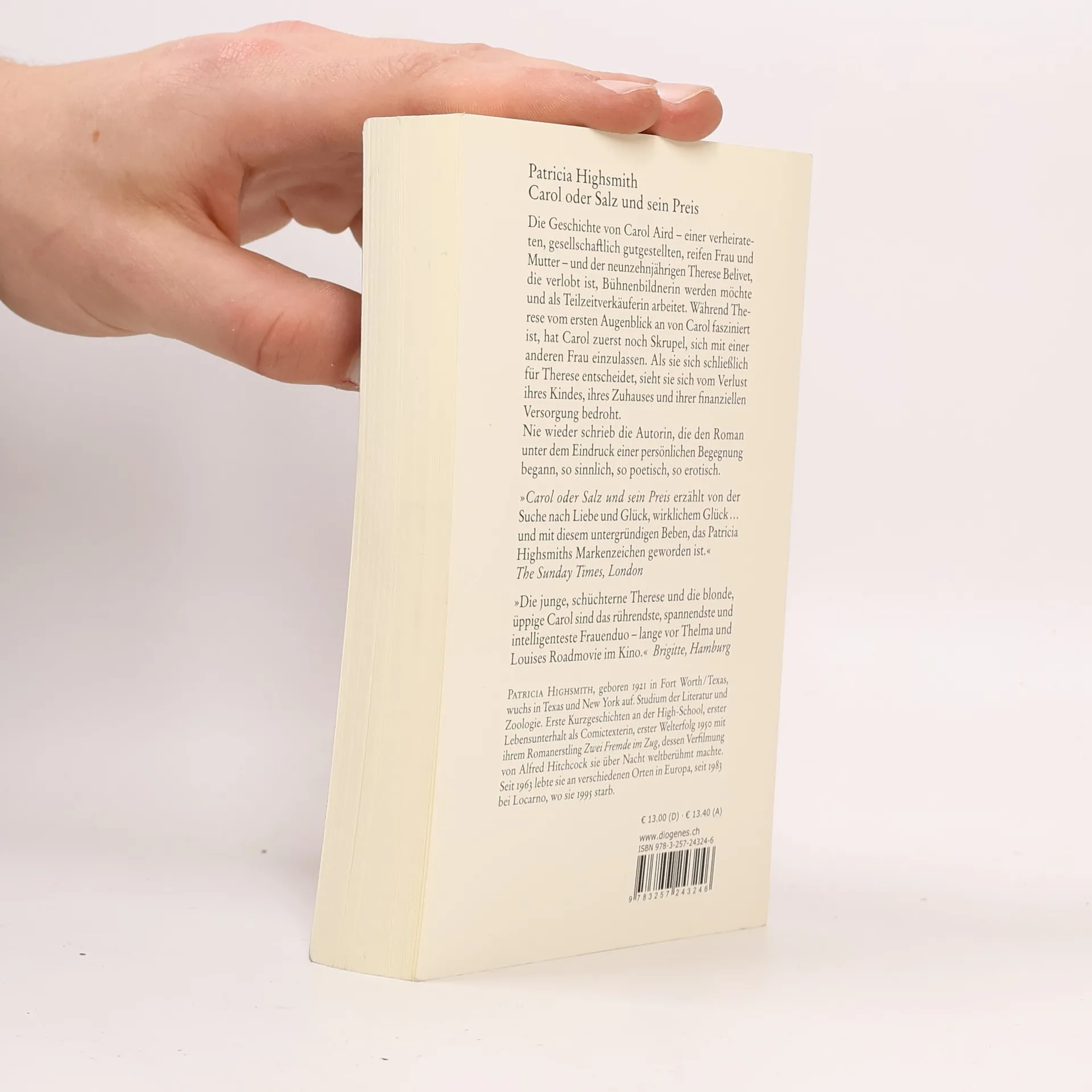 Die Geschichte von Carol Aird – einer verheirateten, gesellschaftlich gutgestellten, reifen Frau und Mutter – und der neunzehnjährigen Therese Belivet, die verlobt ist, Bühnenbildnerin werden möchte und als Teilzeitverkäuferin arbeitet. Während Therese vom ersten Augenblick an von Carol fasziniert ist, hat Carol zuerst noch Skrupel, sich mit einer Frau einzulassen. Als sie sich schließlich für Therese entscheidet, sieht sie sich vom Verlust ihres Kindes, ihres Zuhauses und ihrer finanziellen Versorgung bedroht. Nie wieder schrieb Patricia Highsmith, die den Roman unter dem Eindruck einer persönlichen Begegnung begann, so sinnlich, so poetisch, so erotisch.