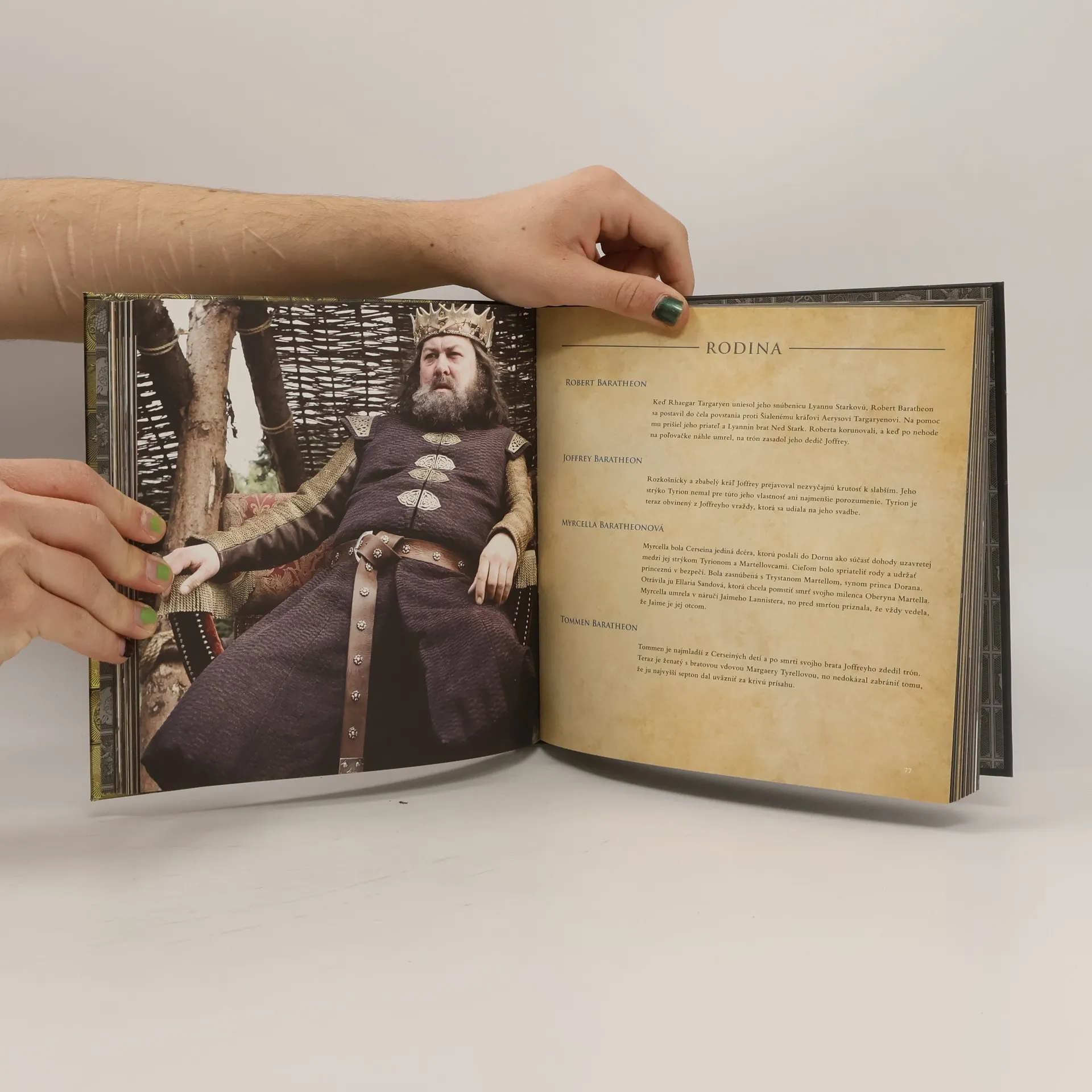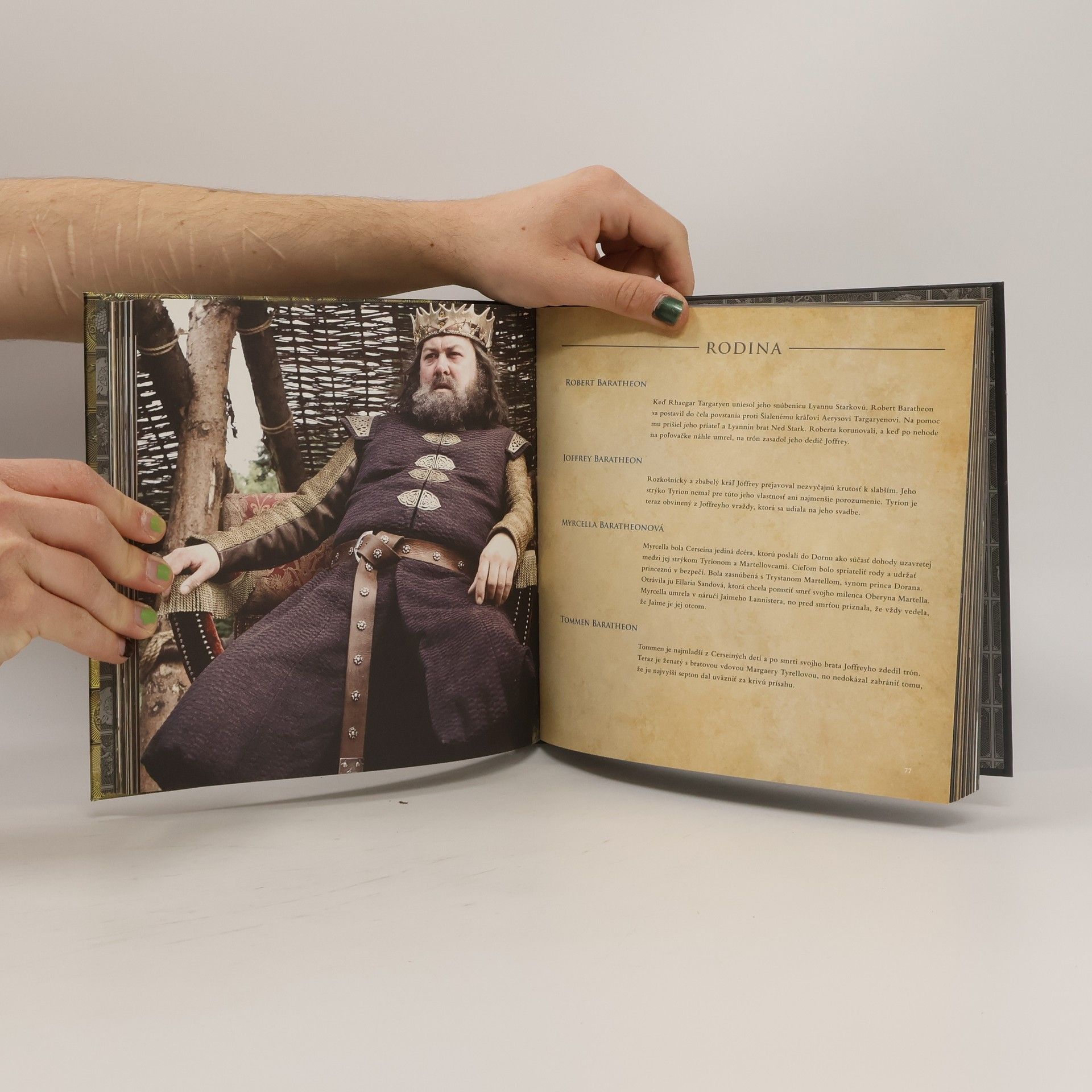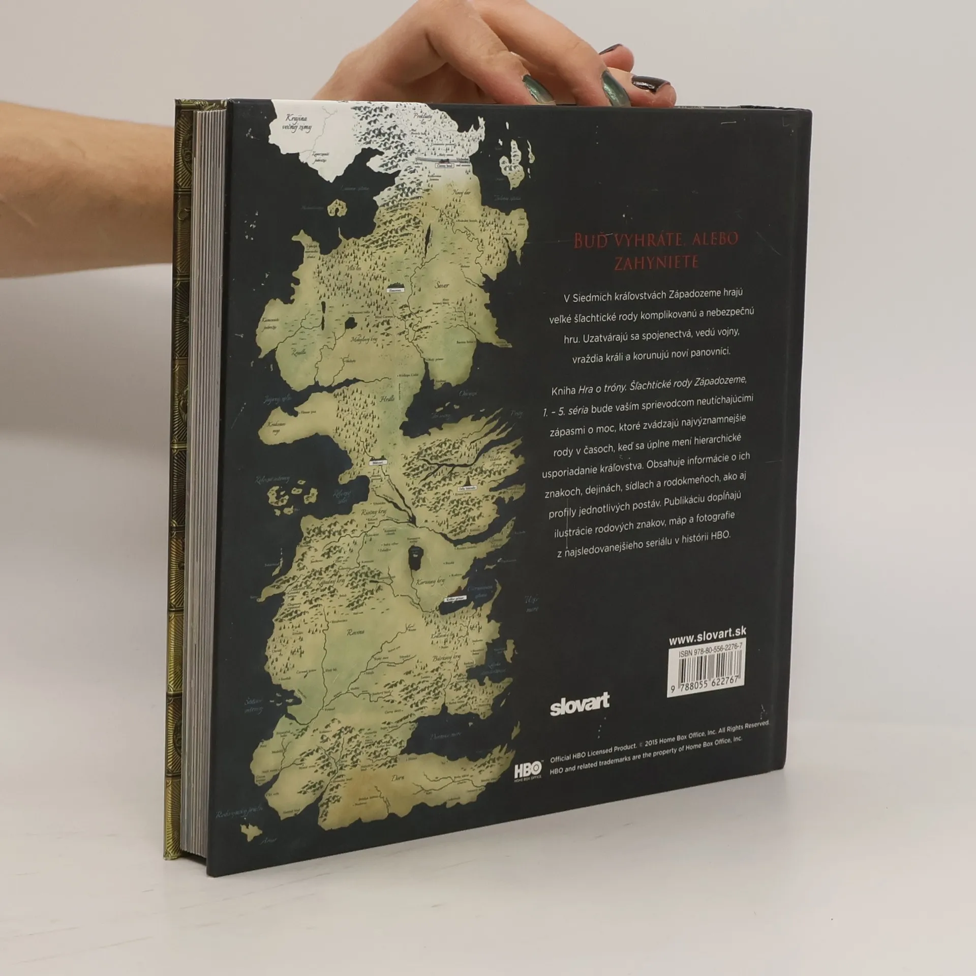 V Siedmich kráľovstvách Západozeme hrajú veľké šľachtické rody komplikovanú a nebezpečnú hru. Uzatvárajú sa spojenectvá, vedú vojny, vraždia králi a korunujú noví panovníci. Kniha Hra o tróny. Šľachtické rody Západozeme, 1. - 5. séria bude vaším sprievodcom neutíchajúcimi zápasmi o moc, ktoré zvádzajú najvýznamnejšie rody v časoch, keď sa úplne mení hierarchické usporiadanie kráľovstva. Obsahuje informácie o ich znakoch, dejinách, sídlach a rodokmeňoch, ako aj profily jednotlivých postáv. Publikáciu dopĺňajú ilustrácie rodových znakov, máp a fotografie z najsledovanejšieho seriálu v histórii HBO.