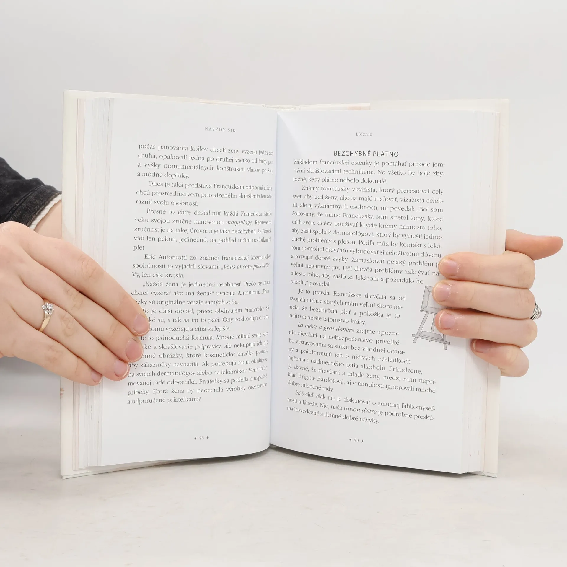 Šlabikár krásy, kniha o tom, ako starnúť po francúzsky – graciózne a štýlovo. Aj Francúzky, ktoré už prekročili štyridsiatku, sú očarujúce a šarmantné. Záleží im na rozvoji intelektu, na tom, aby vedeli na úrovni konverzovať, ale rovnako je pre ne dôležité, aby boli šik. Vyzerajú mladšie, ako v skutočnosti sú, a celý život si zachovávajú štýl. Narodeniny chápu ako oslavu svojho pohodového života a zároveň ako dobrý dôvod vyraziť na nákupy a potom sa perfektne nahodiť na oslavu ďalšieho výročia. Tish Jettová je americká novinárka a módna editorka. Dlhé roky žije vo Francúzsku a tamojšie ženy ju očarili. Pozoruje Francúzky, ktoré už prekročili štyridsiatku, aby odhalila ich tajomstvá a mohla sa o ne s čitateľkami podeliť. V jednotlivých kapitolách knihy prezrádza triky a tajomstvá, vďaka ktorým sa žena istého veku (bez ohľadu na to, kde žije) bude cítiť mlado, vyzerať dobre a bude intelektuálne na úrovni – rovnako ako Francúzky. V knihe skúma, ako sa šatník Francúzok, ich stravovanie, skrášľovacie procedúry, starostlivosť o vlasy, pleť a pokožku postupom času menia, pričom podstata zostáva rovnaká. Autorka ukazuje, ako Francúzky v istom veku zdôrazňujú svoje silné stránky a zriedka (alebo skôr nikdy) nehovoria o obavách, omyloch, chybách a nedostatkoch. Pretože vo Francúzsku nemá krása, štýl, inteligencia a šarm dátum exspirácie!