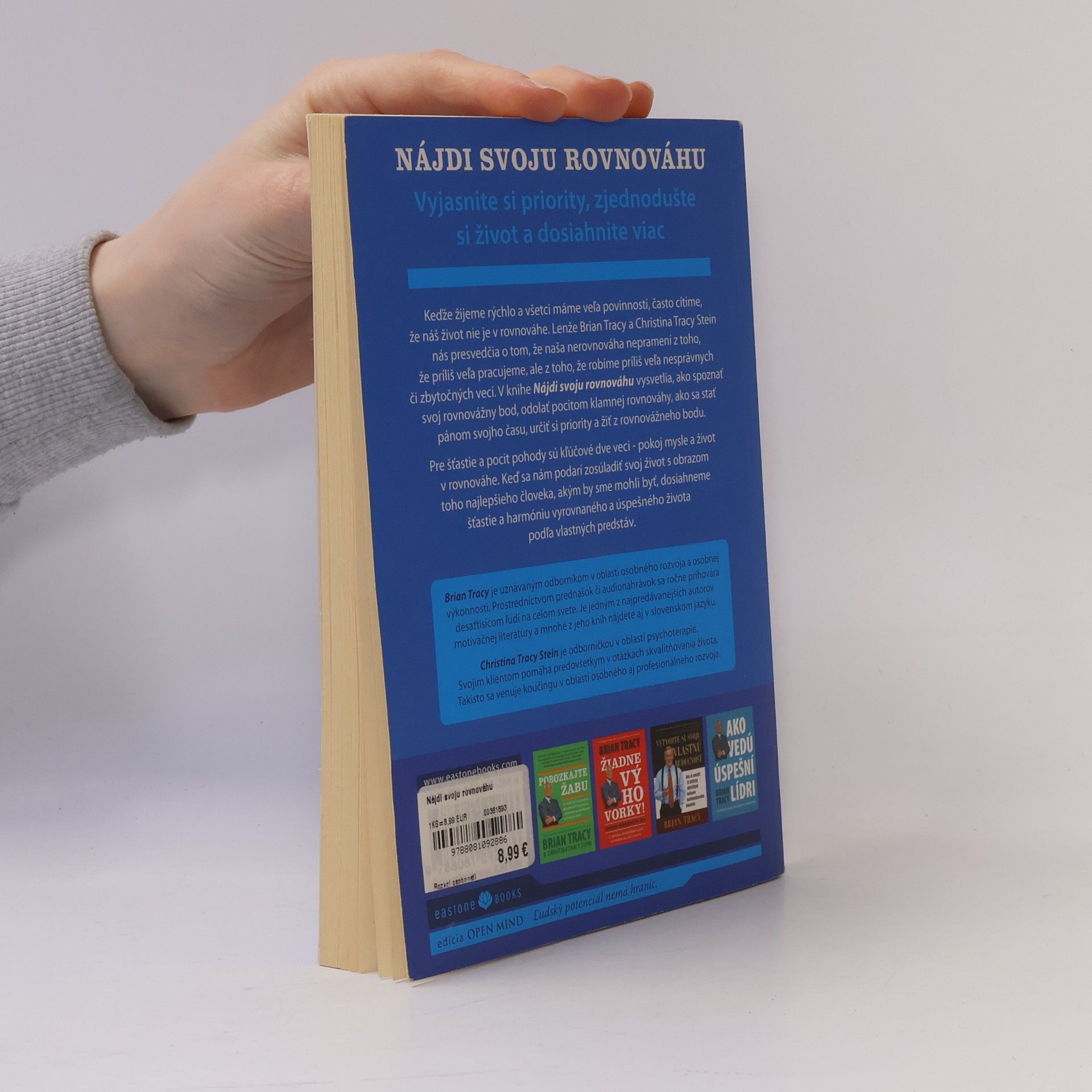 Keďže žijeme rýchlo a všetci máme veľa povinností, často cítime, že náš život nie je v rovnováhe. Lenže Brian Tracy a Christina Stein nás presvedčia o tom, že naša nerovnováha nepramení z toho, že príliš veľa pracujeme, ale z toho, že robíme príliš veľa nesprávnych či zbytočných vecí. V knihe Nájdi svoju rovnováhu vysvetlia, ako spoznať svoj rovnovážny bod, odolať pocitom klamnej rovnováhy, ako sa stať pánom svojho času, určiť si priority a harmonicky žiť.