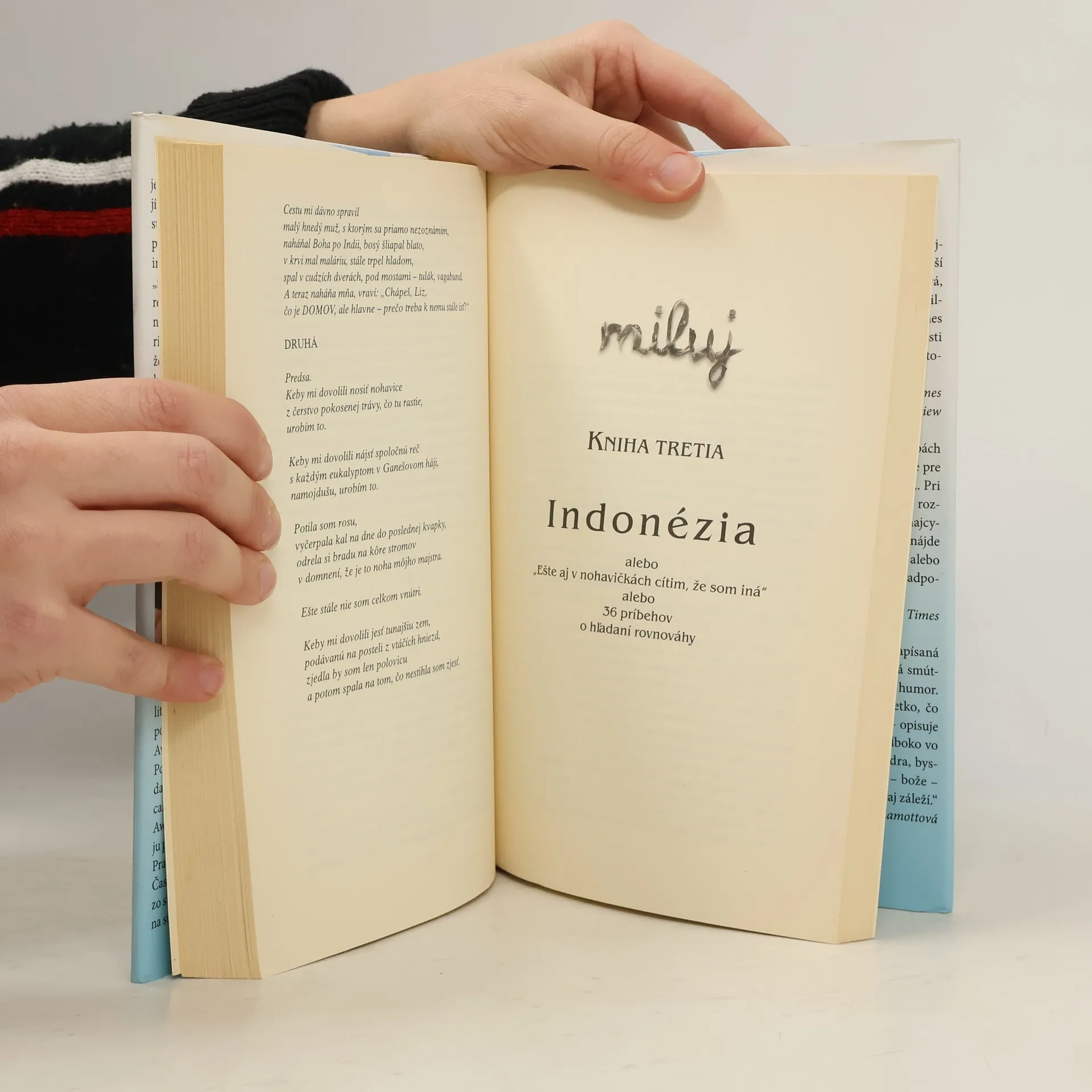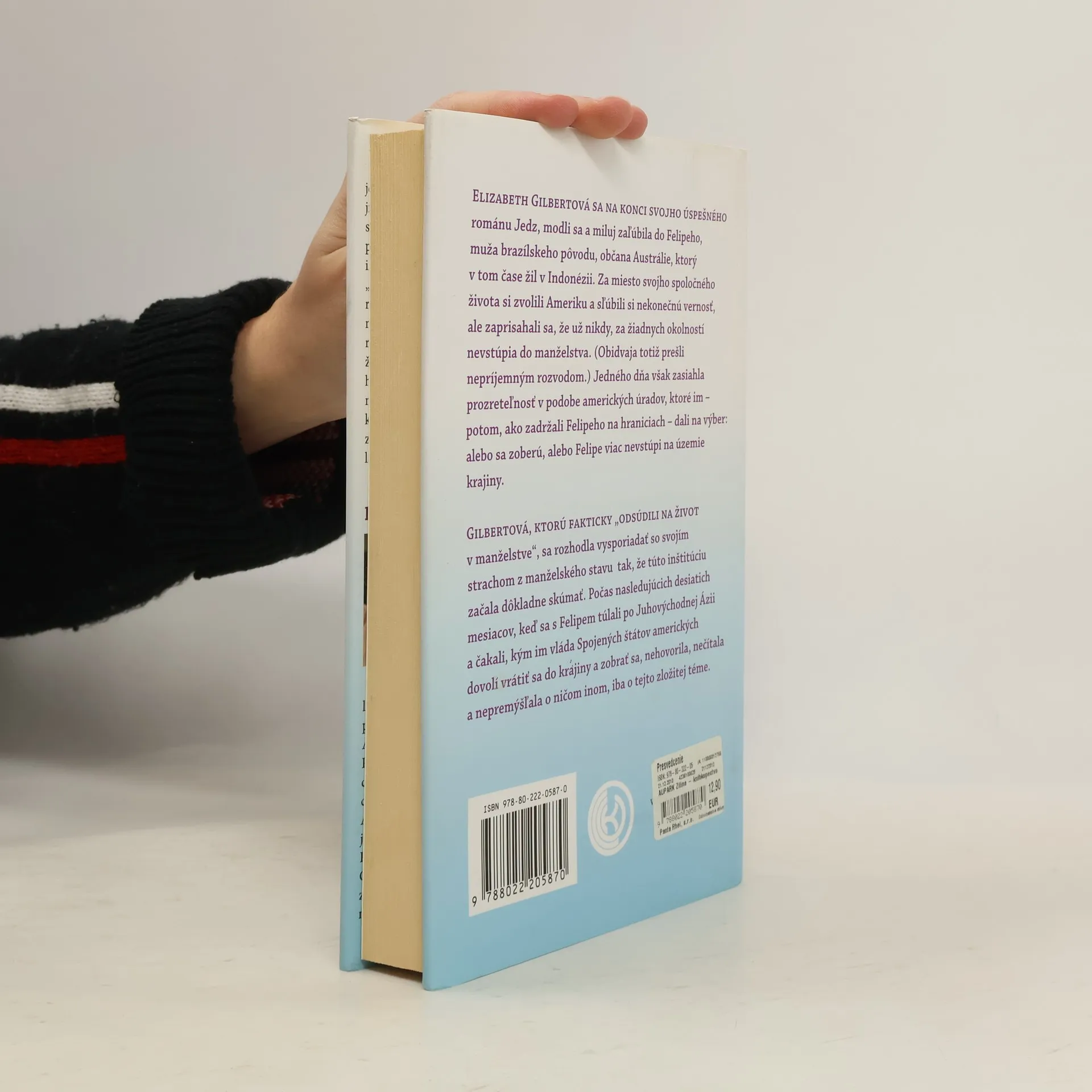 Voľné pokračovanie románu Jedz, modli sa a miluj! Elizabeth Gilbertová sa na konci svojho úspešného románu zaľúbila do Felipeho, muža brazílskeho pôvodu žijúceho v Indonézii. Spoločne sa rozhodli žiť v Amerike a sľúbili si vernosť, avšak bez manželstva, ktoré obaja zažili v nepríjemných rozvodoch. Ich plány sa zmenili, keď americké úrady zadržali Felipeho na hraniciach a dali im na výber: buď sa vezmú, alebo Felipe nebude môcť vstúpiť do krajiny. Gilbertová sa rozhodla čeliť svojmu strachu z manželstva a začala túto inštitúciu dôkladne skúmať. Počas desiatich mesiacov, keď sa s Felipem túlali po Juhovýchodnej Ázii a čakali na povolenie vrátiť sa do USA, sa sústredila len na túto zložitú tému. Príbeh rozpráva o jej snahe zmieriť sa s manželstvom prostredníctvom úvah, štúdia dejín a rozhovorov s rôznymi ľuďmi. Gilbertová otvorene preskúmava otázky kompatibility, vernosti, rodinnej tradície, očakávaní spoločnosti a rizík rozvodu. Rúcajú sa mýty a vyvracajú obavy, pričom sa hľadá historická perspektíva. Kniha sa stáva oslavou lásky so všetkými jej zložitými dôsledkami v reálnom svete.