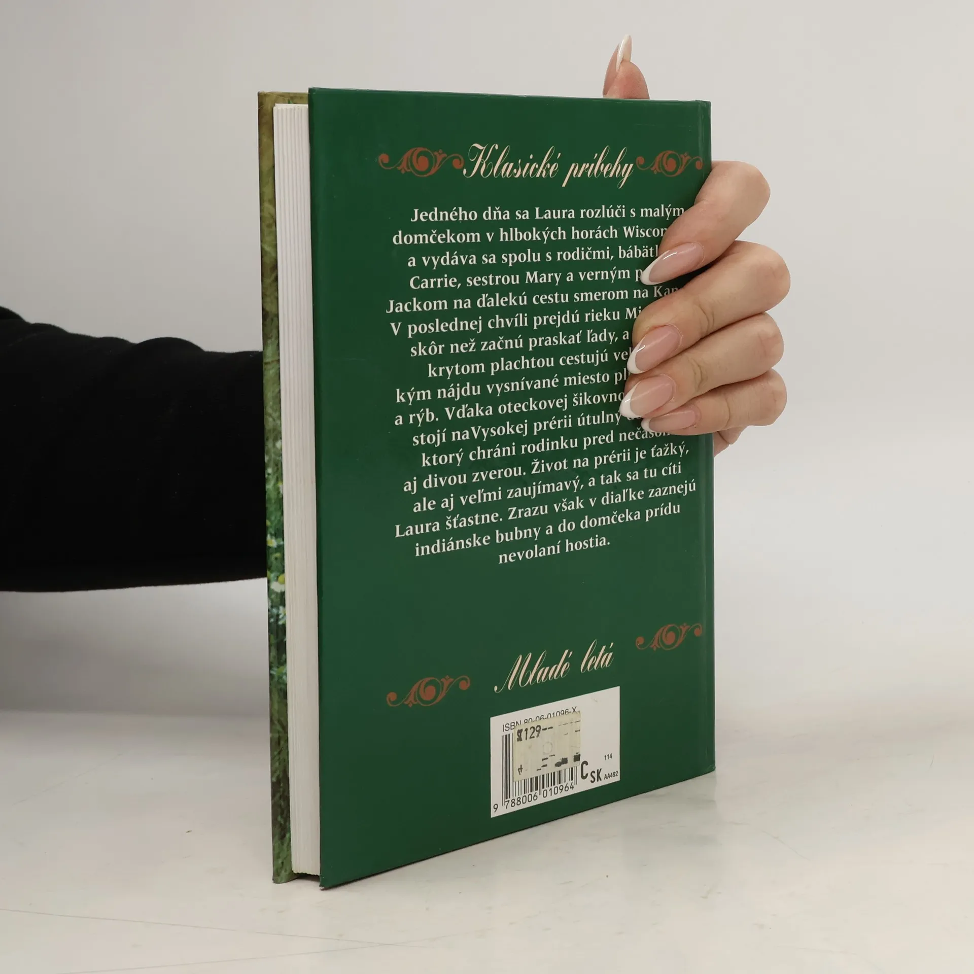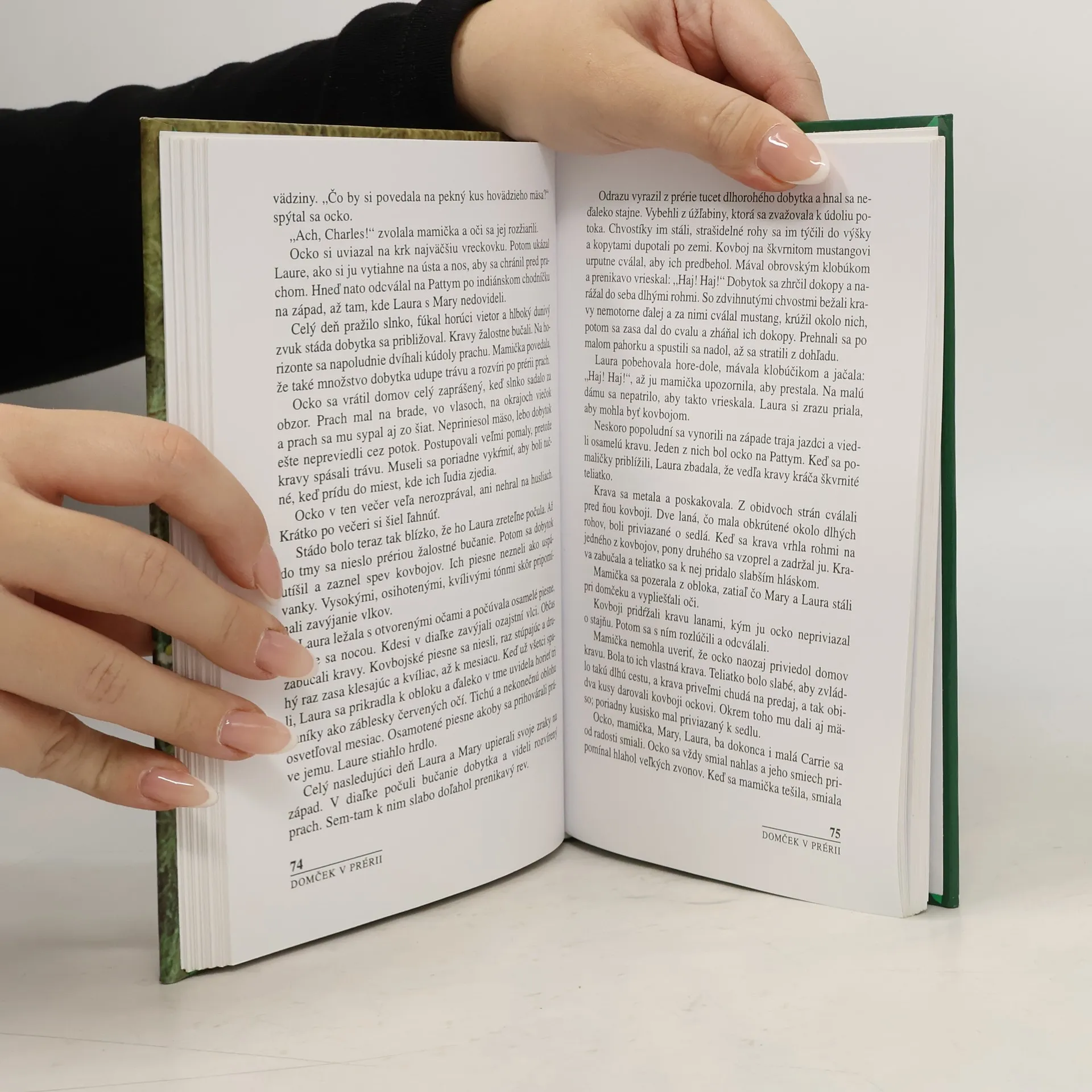 Jedného dňa sa Laura rozlúči s malým domčekom v hlbokých horách Wisconsinu a vydáva sa spolu s rodičmi, bábätkom Carrie, sestrou Mary a verným psíkom Jackom na ďalekú cestu smerom na Kansas. V poslednej chvíli prejdú rieku Mississippi, skôr než začnú praskať ľady, a vo voze krytom plachtou cestujú veľa dní, kým nájdu vysnívané miesto plné zveriny a rýb. Vďaka oteckovej šikovnosti čoskoro stojí na Vysokej prérii útulný domček, ktorý chráni rodinku pred nečasom aj divou zverou. Život na prérii je ťažký, ale aj veľmi zaujímavý, atak sa tu cíti Laura šťastne. Zrazu však v diaľke zaznejú indiánske bubny a do domčeka prídu nevolaní hostia. Kapitoly: Dlhá cesta na západ, Nebezpečný brod cez potok, Táborenie na širokánskej prérii, Prvý deň v prérii, Domov v prérii, Sťahovanie do domčeka, Vlčia svorka, Dvoje bezpečných dverí, Plamene v kozube, Domček má peknú strechu a dlážku, Indiáni v domčeku, Čerstvá voda na pitie, Texaskí dlhorožci, Indiánsky tábor, Horúčka so zimnicou, Oheň v komíne, Ocko ide do mesta, Vysoký Indián, Pán Edwards stretáva Santa Clausa, Nočný výkrik, Indiánska slávnosť, Oheň v prérii, Indiánsky bojový pokrik, Indiáni tiahnu preč, Vojaci, Odchod z Vysokej prérie.