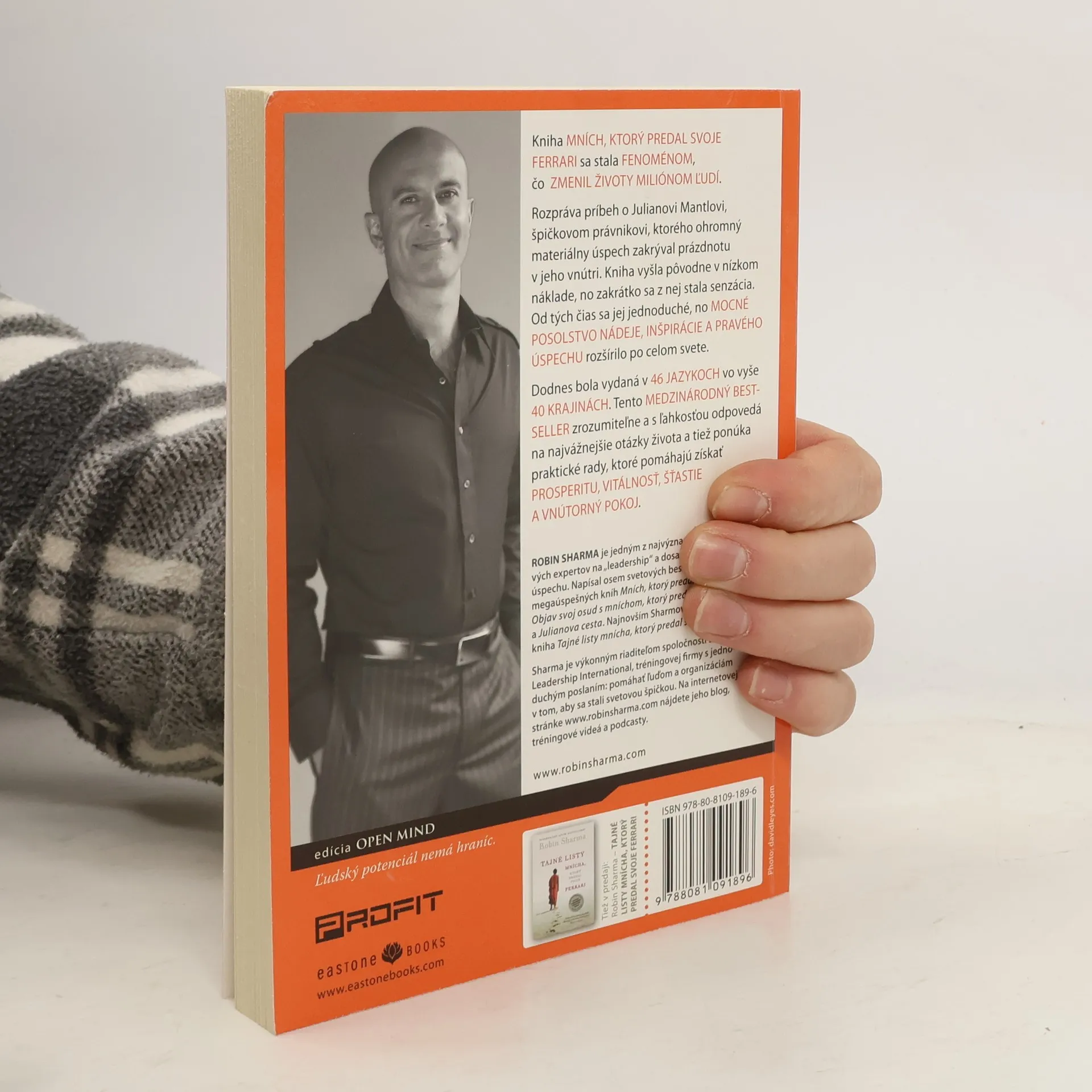 Mních, ktorý predal svoje Ferrari, je kniha, ktorá sa stala fenoménom. Vyšla pred desiatimi rokmi a odvtedy zmenila miliónom ľudí život. Rozpráva príbeh o Julianovi Mantlovi, špičkovom právnikovi, ktorého ohromný materiálny úspech zakrýval prázdnotu v jeho vnútri. Kniha vyšla pôvodne v nízkom náklade, no zakrátko sa z nej stala senzácia. Od tých čias sa jej jednoduché, no mocné posolstvo nádeje, inšpirácie a pravého úspechu rozšírilo po celom svete. Dodnes bola vydaná v 46 jazykoch vo vyše 40 krajinách. Tento medzinárodný bestseller zrozumiteľne a s ľahkosťou odpovedá na najvážnejšie otázky života a tiež ponúka praktické rady, ktoré pomáhajú získať prosperitu, vitálnosť, šťastie a vnútorný pokoj.