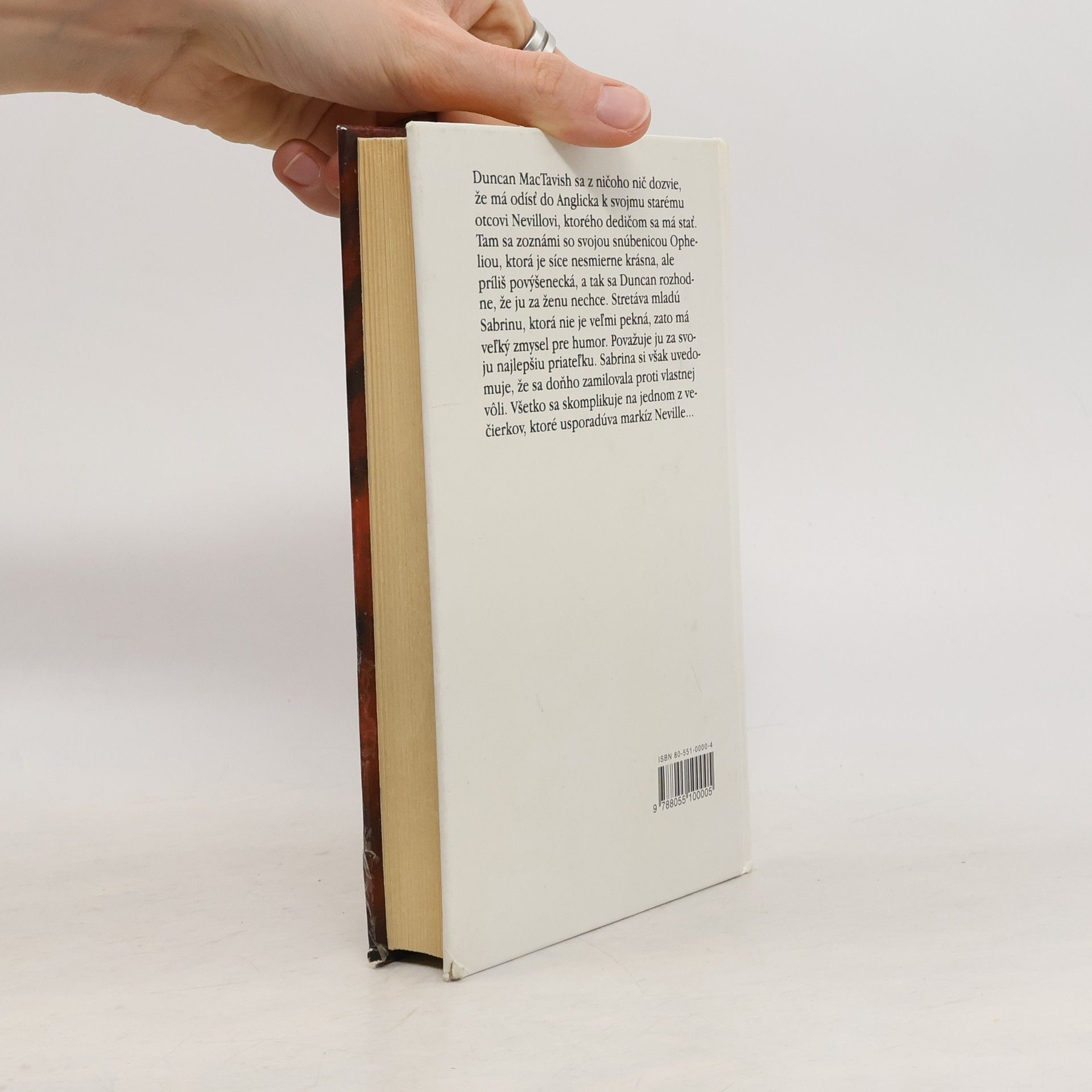 Duncan MacTavish sa z ničoho nič dozvie, že má odísť do Anglicka k svojmu starému otcovi Nevillovi, ktorého dedičom sa má stať. Tam sa zoznámi so svojou snúbenicou Opheliou, ktorá je síce nesmierne krásna, ale príliš povýšenecká, a tak sa Duncan rozhodne, že ju za ženu nechce. Stretáva mladú Sabrinu, ktorá nie je veľmi pekná, zato má veľký zmysel pre humor. Považuje ju za svoju najlepšiu priateľku. Sabrina si však uvedomuje, že sa doňho zamilovala proti vlastnej vôli. Všetko sa skomplikuje na jednom z večierkov, ktoré usporadúva markíz Neville...
