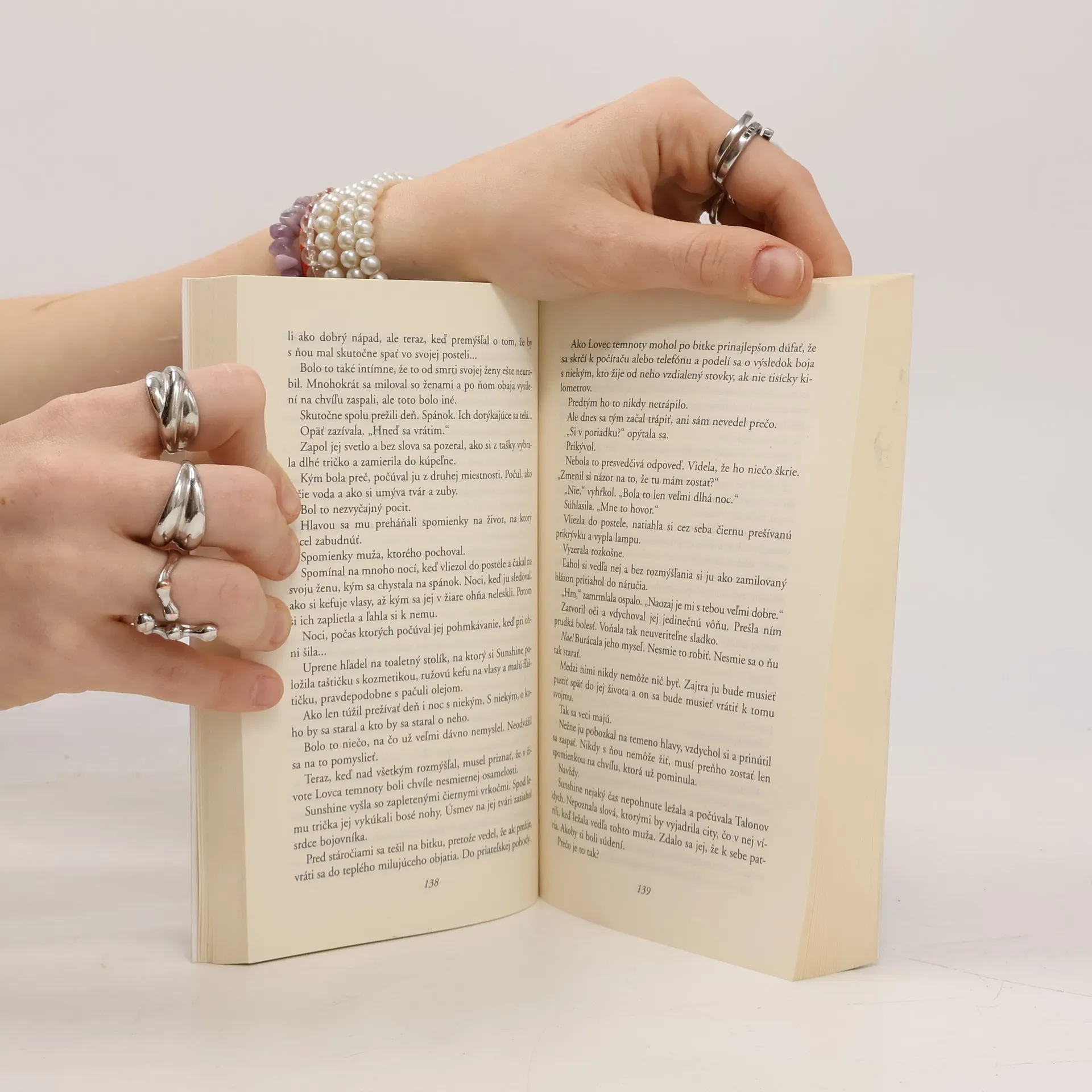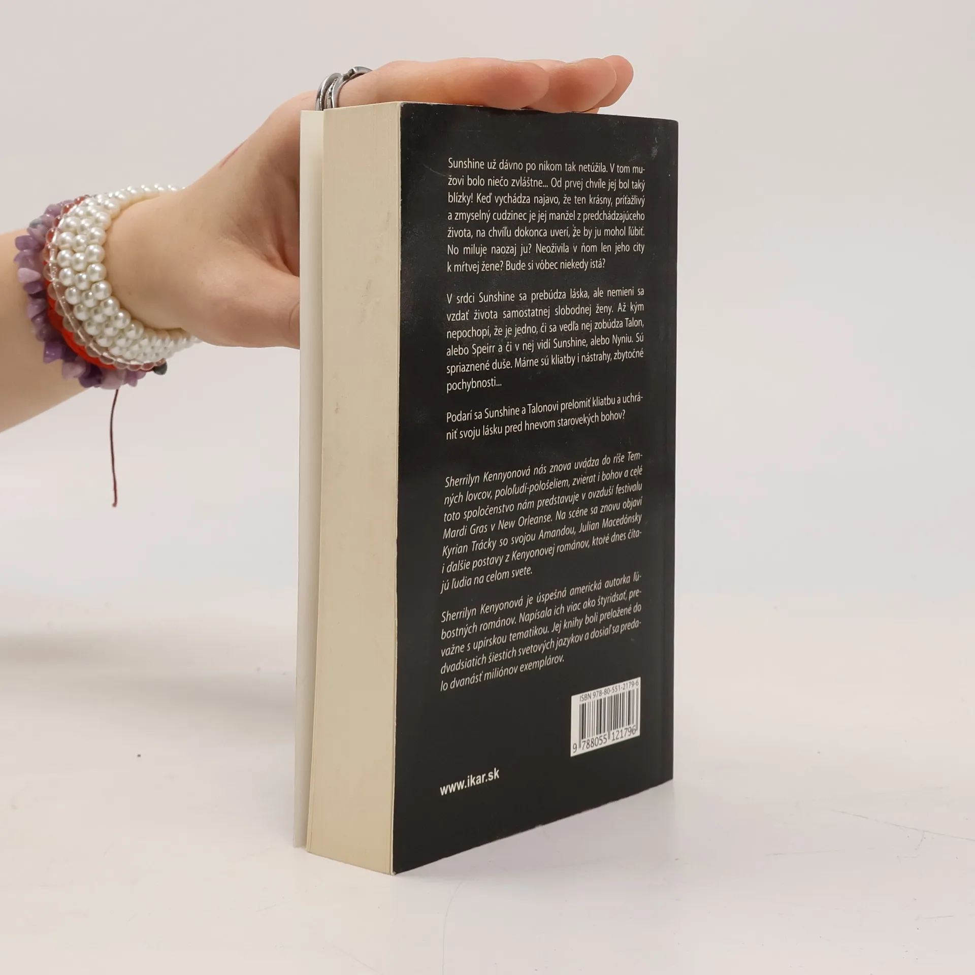 Sunshine už dávno po nikom tak netúžila. V tom mužovi bolo niečo zvláštne... Od prvej chvíle jej bol taký blízky! Keď vychádza najavo, že ten krásny, príťažlivý a zmyselný cudzinec je jej manžel z predchádzajúceho života, na chvíľu dokonca uverí, že by ju mohol ľúbiť. No miluje naozaj ju? Neoživila v ňom len jeho city k mŕtvej žene? Bude si vôbec niekedy istá? V srdci Sunshine sa prebúdza láska, ale nemieni sa vzdať života samostatnej slobodnej ženy. Až kým nepochopí, že je jedno, či sa vedľa nej zobúdza Talon, alebo Speirr a či v nej vidí Sunshine, alebo Nyniu. Sú spriaznené duše. Márne sú kliatby i nástrahy, zbytočné pochybnosti... Podarí sa Sunshine a Talonovi prelomiť kliatbu a uchrániť svoju lásku pred hnevom starovekých bohov? Sherrilyn Kennyonová nás znova uvádza do ríše Temných lovcov, poloľudí-pološeliem, zvierat i bohov a celé toto spoločenstvo nám predstavuje v ovzduší festivalu Mardi Gras v New Orleanse. Na scéne sa znovu objaví Kyrian Trácky so svojou Amandou, Julian Macedónsky i ďalšie postavy z Kenyonovej románov, ktoré dnes čítajú ľudia na celom svete.