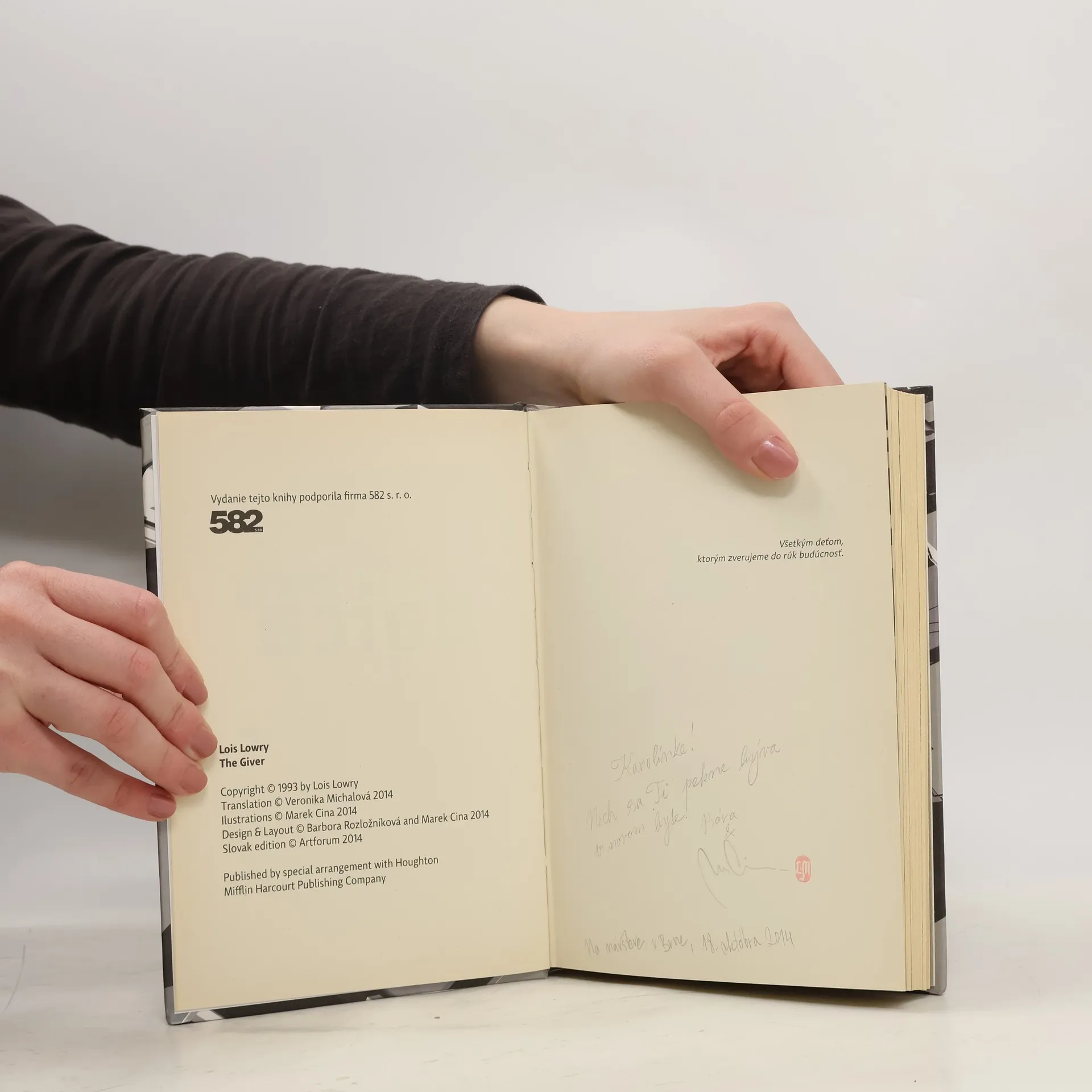Dvanásťročný Jonas žije vo svete riadenom všadeprítomnými pravidlami. Všetko je dokonale zorganizované človeku pridelia meno, rodičov, povolanie, partnera. Všetci sú si rovní, všetci žijú v dostatku a spokojnosti. Komunita vedená Radou starších sa vyrovnala s vojnami a kriminalitou, ale aj s bolesťou, hnevom, neistotu a sklamaním. Stačí dodržiavať pravidlá. Jonas však nezískava povolanie ako jeho vrstovníci. Je vyvolený stať sa Príjemcom pamäti. Aby sa mohol stať strážcom spomienok minulých generácií, musí prejsť výcvikom. Pod vedením svojho učiteľa, múdreho starca, sa postupne sa dozvedá o bolesti a utrpení, no aj o kráse, umení a láske a začína chápať, aká je cena za bezpečný a bezstarostný život jeho spoločenstva. Súcit a schopnosť milovať ho dovedú k závažnému rozhodnutiu. Svoj román venovala Lois Lowry všetkým deťom, ktorým zverujeme do rúk budúcnosť. Román určený vnímavým dospievajúcim aj dospelým, bol preložený do viac ako tridsiatich jazykov a autorka zaň získala niekoľko cien. Na niektorých amerických školách bol zaradený medzi povinné čítanie, na iných naopak zakázaný. Prečo?Pretože je to kniha, ktorá deti vedie k tomu, aby okolitý svet neprijímali automaticky, aby sa oň zaujímali, premýšľali, kládli si otázky a hľadali odpovede. Aby si uvedomili, že pravidlá, ktoré nás majú chrániť, nás môžu zároveň ochudobňovať a pripraviť o slobodnú vôľu.