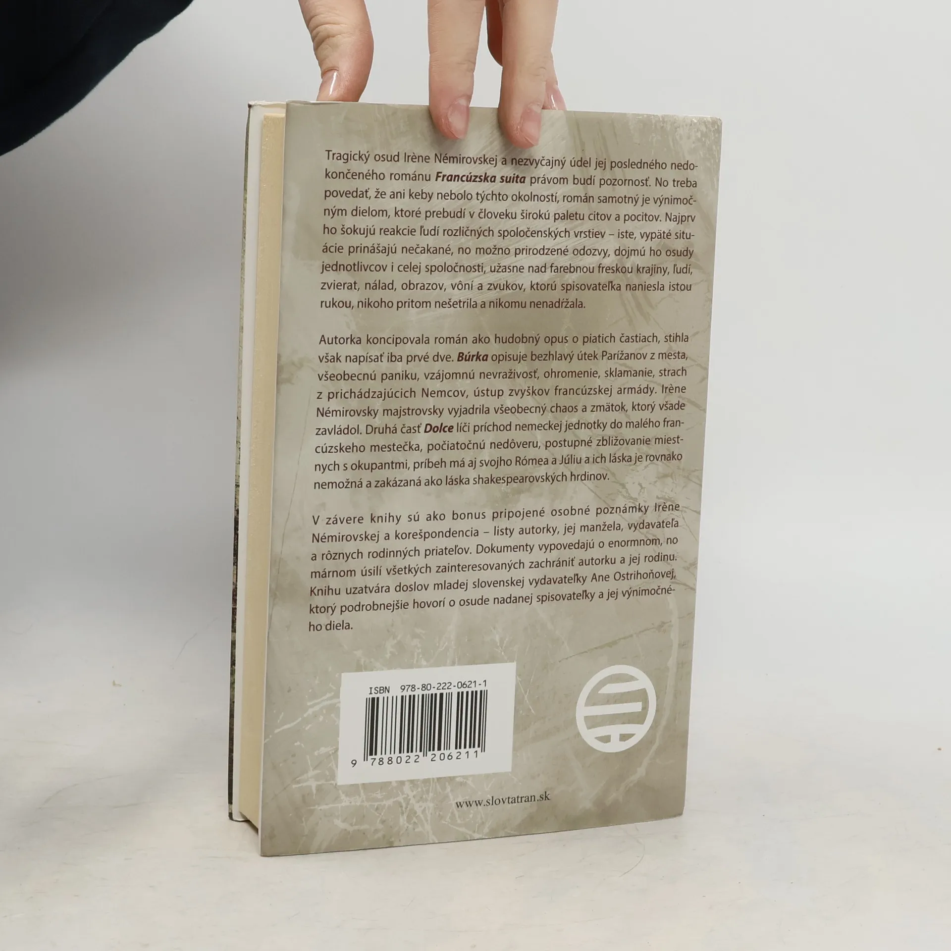 Autorka koncipovala román ako hudobný opus o piatich častiach, stihla však napísať iba prvé dve. Búrka opisuje bezhlavý útek Parížanov z mesta, všeobecnú paniku, vzájomnú nevraživosť, ohromenie, sklamanie, strach z prichádzajúcich Nemcov, ústup zvyškov francúzskej armády. Irene Némirovsky majstrovsky vyjadrila všeobecný chaos a zmätok, ktorý všade zavládol. Druhá časť Dolce líči príchod nemeckej jednotky do malého francúzskeho mestečka, počiatočnú nedôveru, postupné zbližovanie miestnych s okupantmi, príbeh má aj svojho Rómea a Júliu a ich láska je rovnako nemožná a zakázaná ako láska shakespearovských hrdinov.