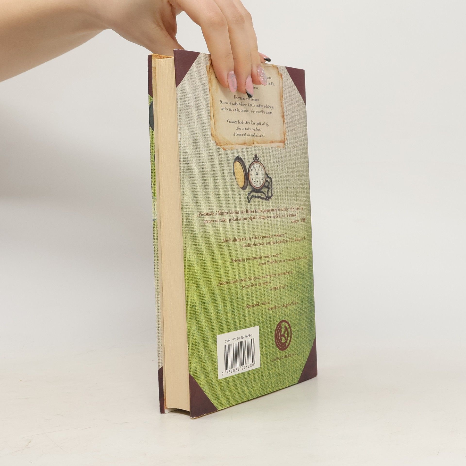 Mitch Albom vo svojom najnovšom diele krásnej literatúry rozpráva príbeh vynálezcu prvých hodín na svete, ktorého neminie trest za pokus odmeriavať najväčší dar od boha. Musí prežiť stáročia vo väzení jaskyne a načúvať hlasom, ktoré k nemu doliehajú s jedinou prosbou – prosbou o viac dní, viac rokov. Napokon, s dušou takmer zlomenou, získa otec Čas voľnosť a s ňou aj čarovné presýpacie hodiny a poslanie: dostane šancu odčiniť dávny hriech, ak naučí dvoch ľudí na Zemi skutočnému významu času. Vracia sa do moderného sveta, posadnutého meraním času, ktoré sám tak nevinne začal, a vydáva sa na púť s dvomi nezvyčajnými spoločníkmi: mladým dievčaťom, ktoré sa chystá skoncovať so životom, a zomierajúcim boháčom, ktorý baží po večnom živote. Ak sa chce otec Čas zachrániť, musí najprv zachrániť ich dvoch. A zastaviť svet, aby uspel. Príbeh, vyrozprávaný v Albomovom typicky stručnom štýle, pripomína čitateľom, aby zvážili vlastné chápanie času a zamysleli sa, ako ho trávia a aký je v skutočnosti vzácny.