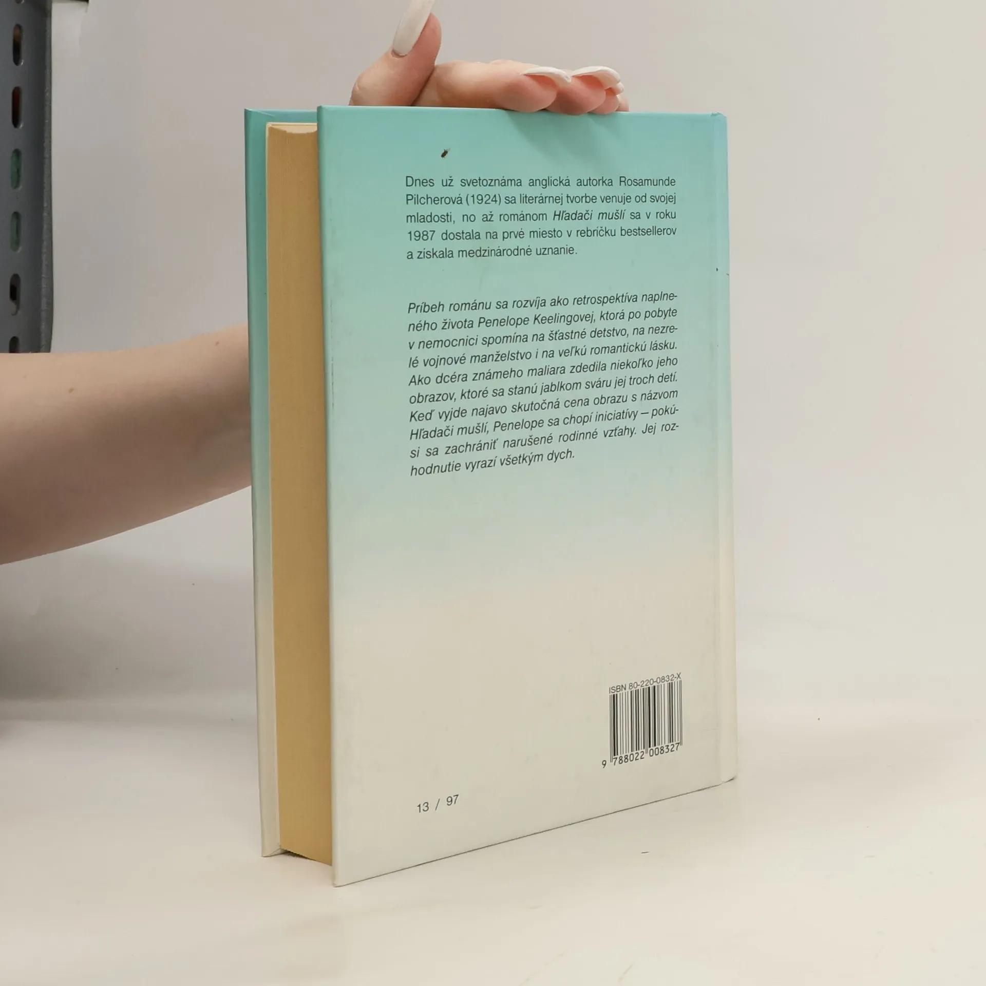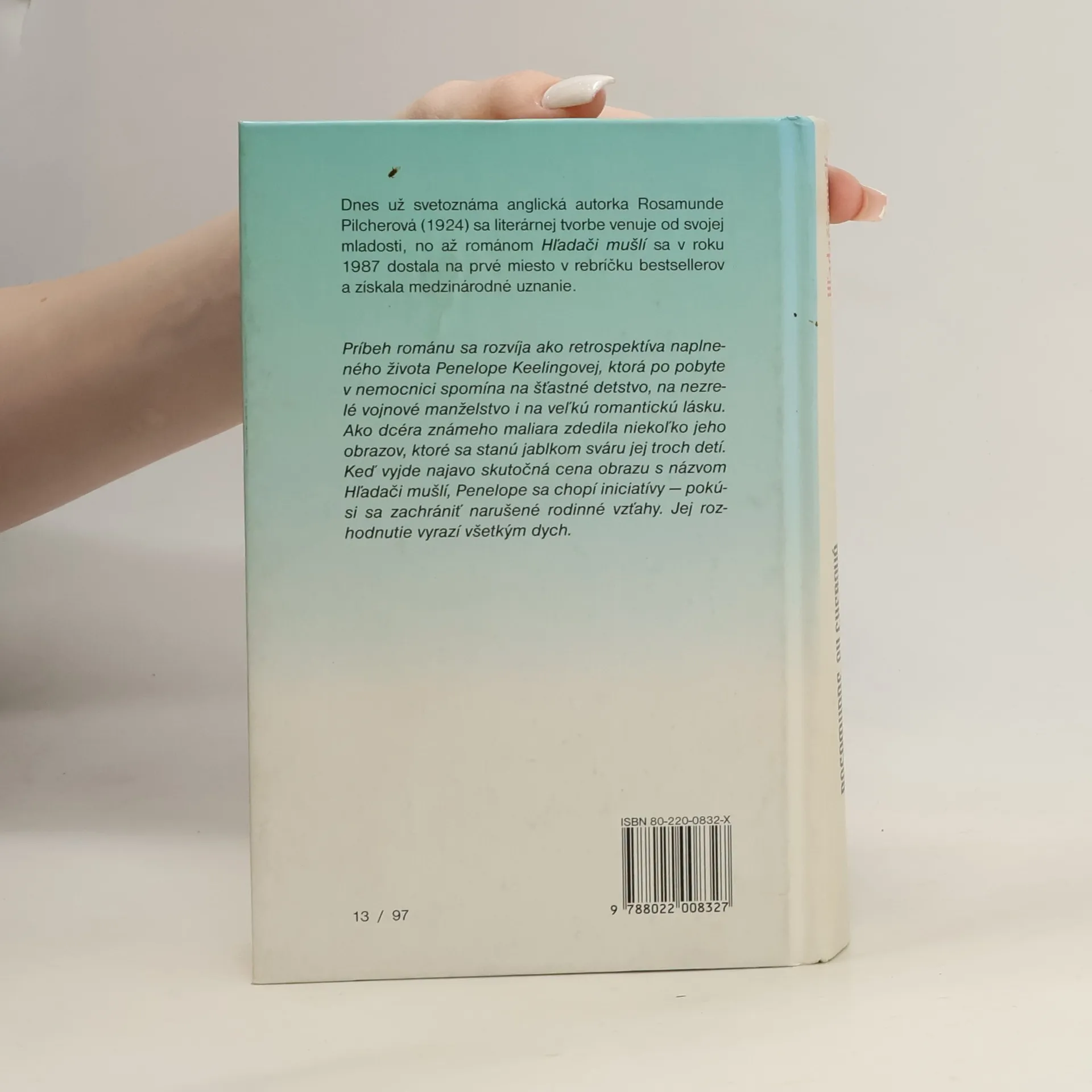 Dnes už svetoznáma anglická autorka Rosamunde Pilcherová (1924) sa literárnej tvorbe venuje od svojej mladosti, no až románom Hľadači mušlí sa v roku 1987 dostala na prvé miesto v rebríčku bestsellerov a získala medzinárodné uznanie. Príbeh románu sa rozvíja ako retrospektíva naplneného života Penelope Keelingovej, ktorá po pobyte v nemocnici spomína na šťastné detstvo, na nezrelé vojnové manželstvo i na veľkú romantickú lásku. Ako dcéra známeho maliara zdedila niekoľko jeho obrazov, ktoré sa stanú jablkom sváru jej troch detí. Keď vyjde najavo skutočná cena obrazu s názvom Hľadači mušlí, Penelope sa chopí iniciatívy — pokúsi sa zachrániť narušené rodinné vzťahy. Jej rozhodnutie vyrazí všetkým dych.