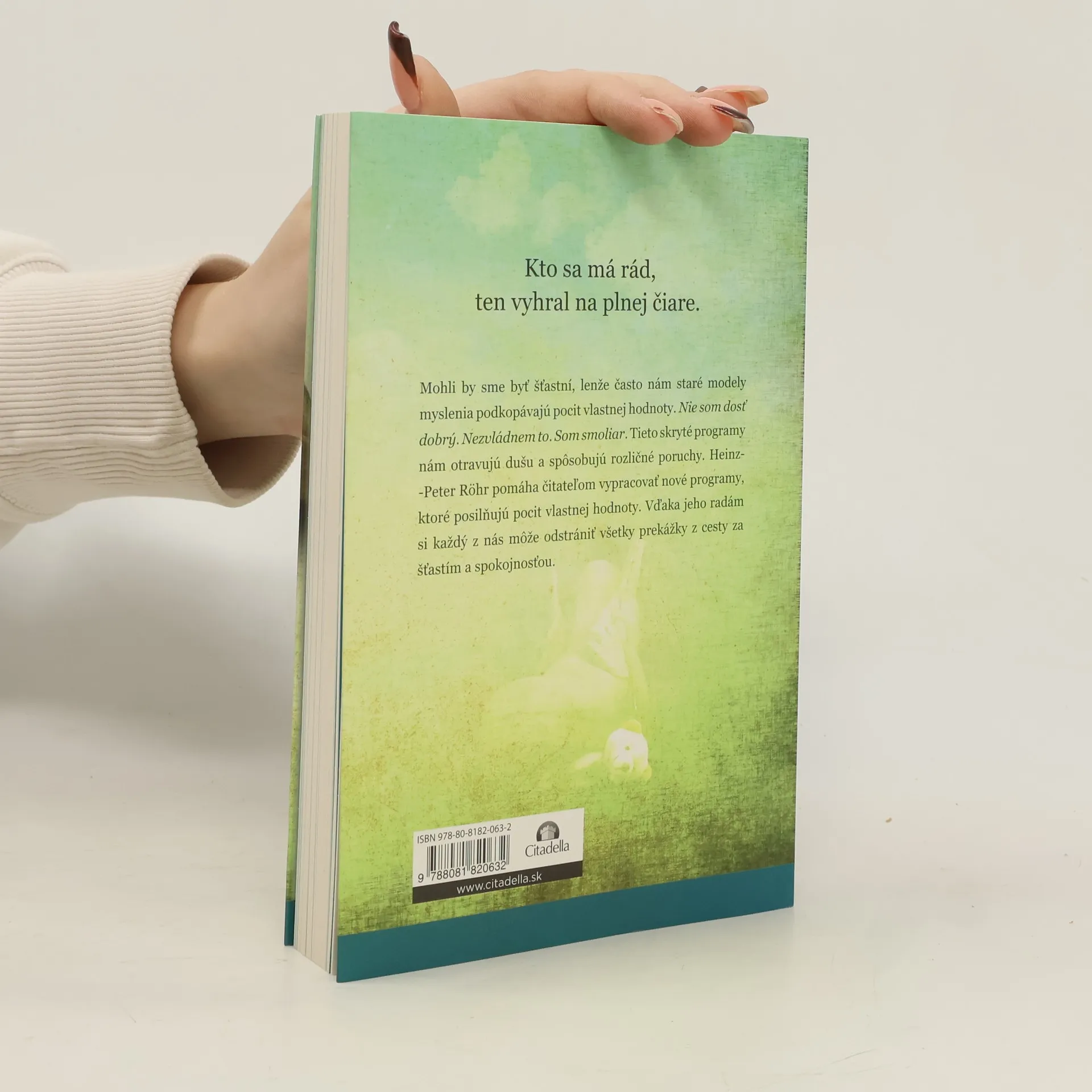 Odhaľte skryté programy svojej duše. Mohli by sme byť šťastní, lenže často nám staré modely myslenia podkopávajú pocit vlastnej hodnoty. Nie som dosť dobrý. Nezvládnem to. Som smoliar. Tieto skryté programy nám otravujú dušu a spôsobujú rozličné poruchy. Heinz- Peter Röhr pomáha čitateľom vypracovať nové programy, ktoré posilňujú pocit vlastnej hodnoty. Vďaka jeho radám si každý z nás môže odstrániť všetky prekážky z cesty za šťastím a spokojnosťou.