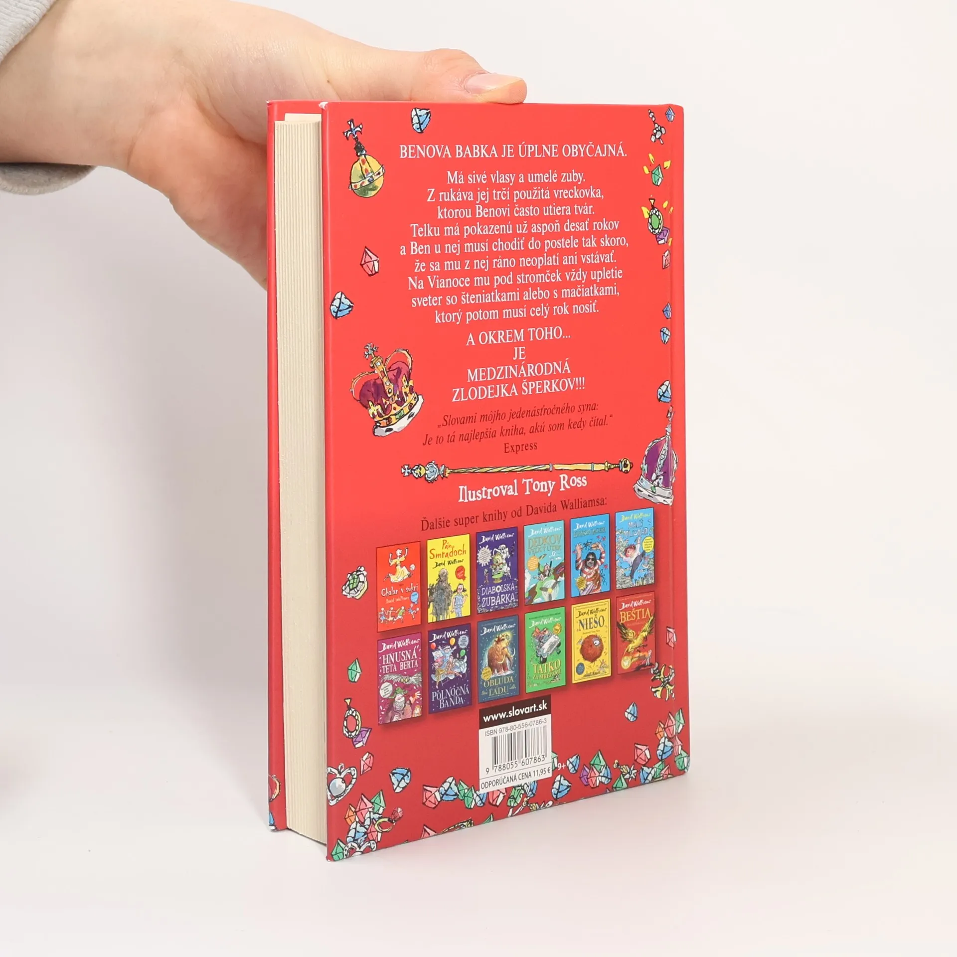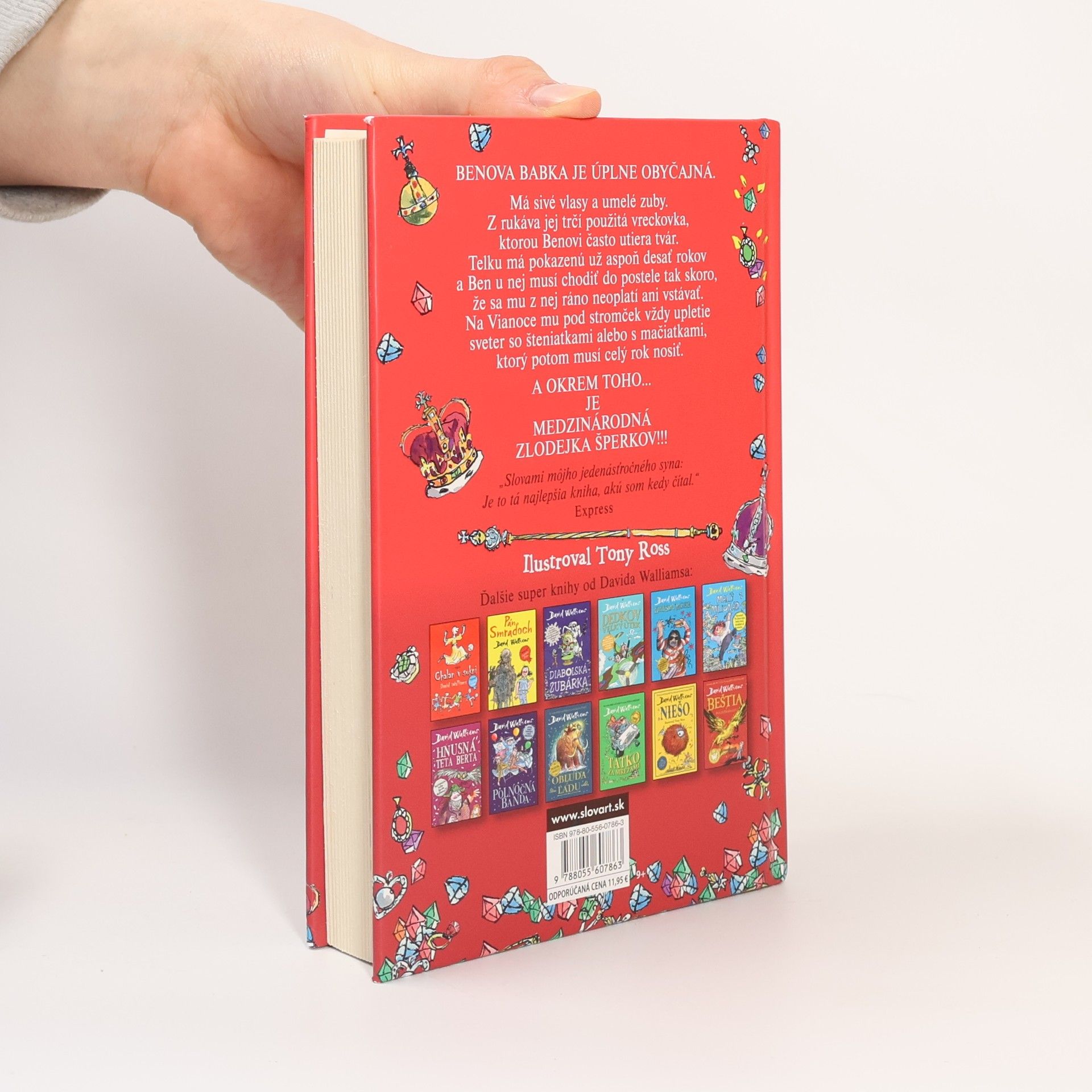 Ben neznáša piatkové večery u svojej babky. Je to tá najnudnejšia babka na svete. Nezaujíma ju nič iné len scrabble a kapustová polievka. Ben však o svojej babke ani zďaleka nevie všetko. Jedného dňa zistí, že zamladi bola medzinárodnou zlodejkou šperkov a navyše celý život sníva o krádeži korunovačných klenotov. Dokáže si babička gaunerka splniť svoj celoživotný sen? A ako jej pri tom môže pomôcť jej vnuk Ben? Zoznámte sa s Benovou babkou. Je to typická babka: Má biele vlasy. Nosí zubnú protézu . V rukáve má zastrčenú špinavú vreckovku. A... je medzinárodnou zlodejkou šperkov!