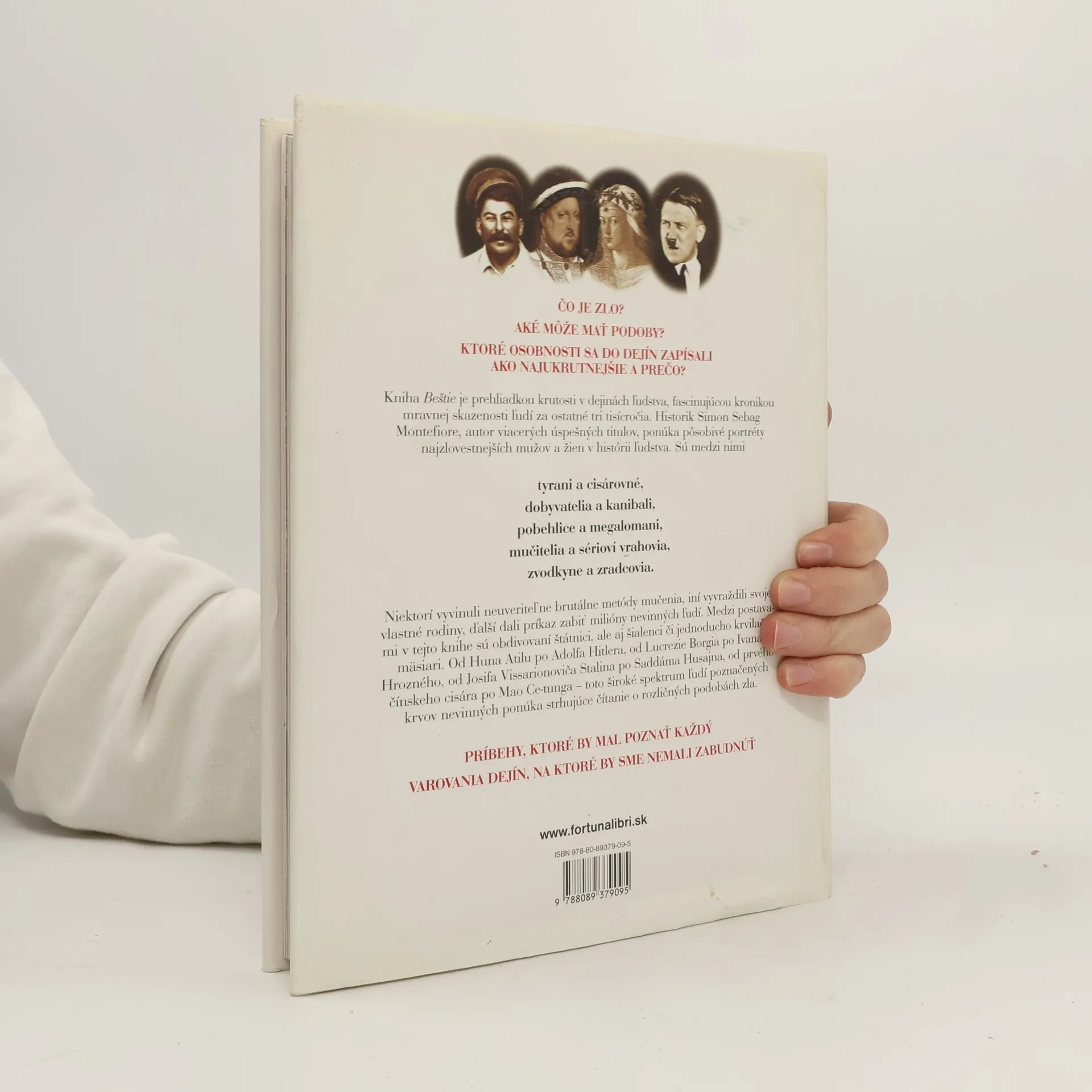 Životné príbehy z temnej histórie - portréty ľudí, ktorých moc sa spájala s krviprelievaním - mapujú odvrátenú tvár dejín. Nájdeme tu životné osudy Herodesa, Attilu, anglického kráľa Richarda II., Alžbety Báthoryovej, Rudolfa Hessa, Dr. Jozefa Mengeleho aj Saddáma Husajna.... A mnoho ďalších, bohužiaľ. Príbehy sú radené v časovej postupnosti a ten posledný patrí Usámovi bin Ládinovi. Kiež by bol skutočne posledným...