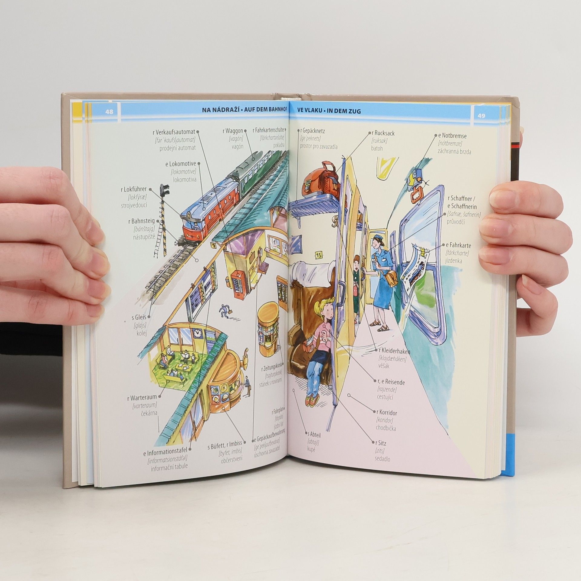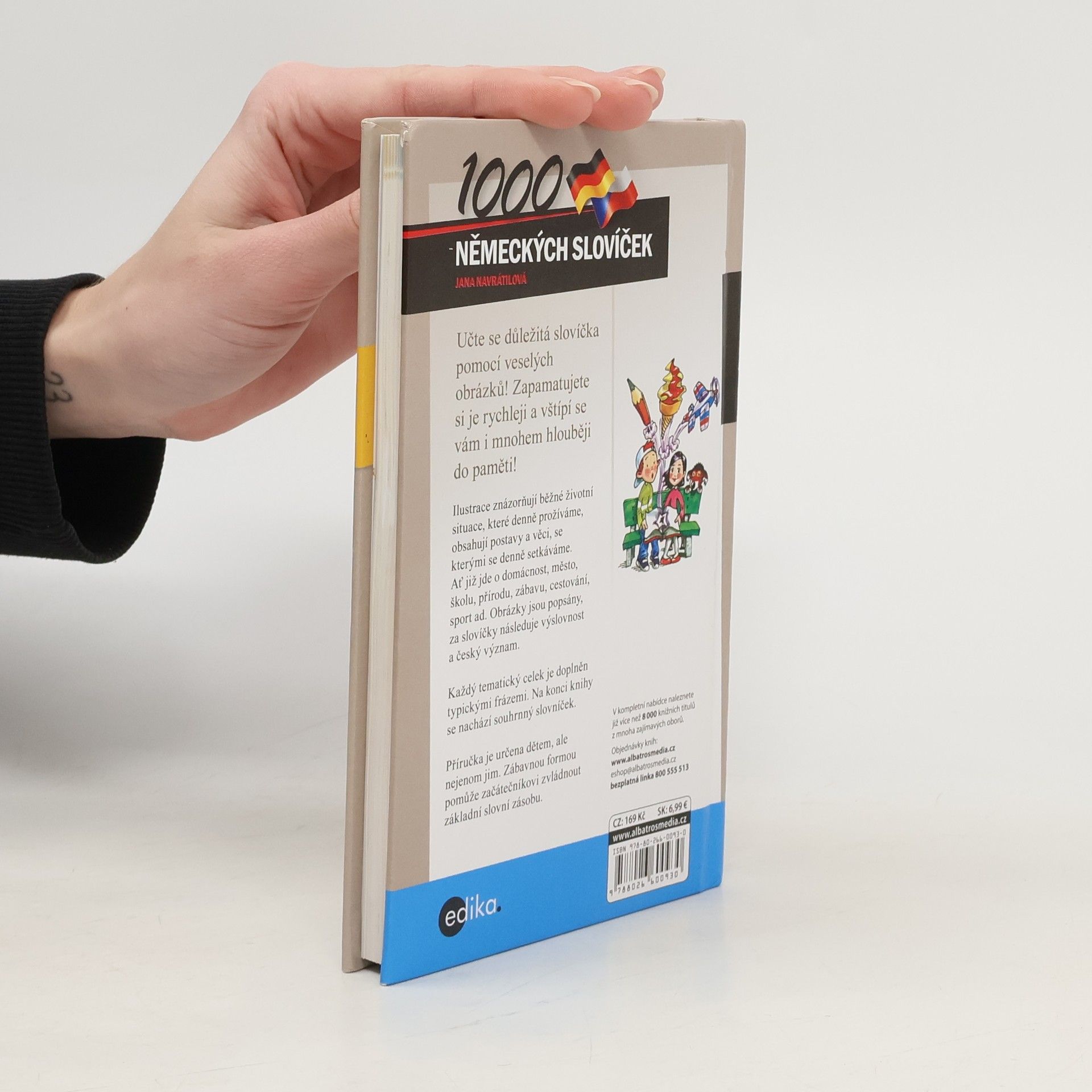 Ilustrovaný slovník znázorňující běžné životní situace, postavy, věci ap. k procvičování německých slovíček určený začátečníkům, zejména dětem. U každého slova je uveden fonetický přepis výslovnosti a český překlad. Každý tematický celek je doplněn jednoduchými frázemi. V závěru knihy je česko-německý slovník slov vyskytujících se na obrázcích.