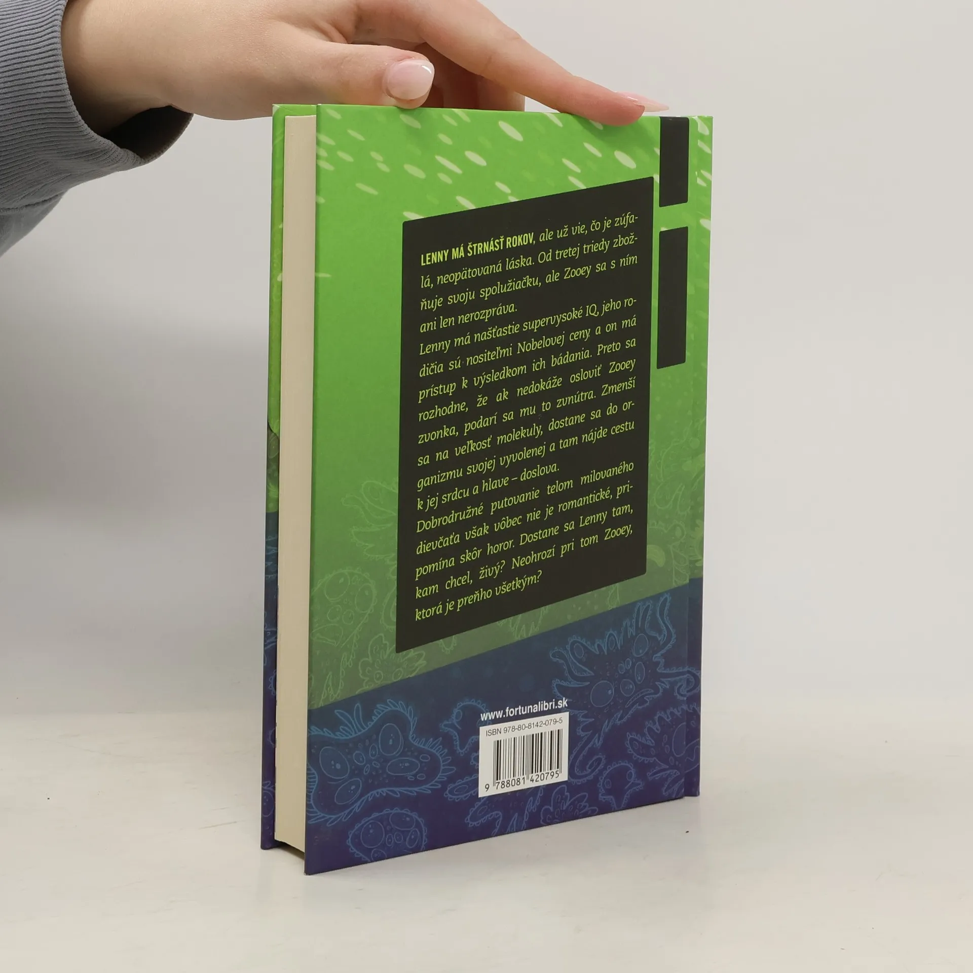 Lenny má štrnásť rokov, ale už vie, čo je zúfalá, neopätovaná láska. Od tretej triedy zbožňuje svoju spolužiačku, ale Zooey sa s ním ani len nerozpráva. Lenny má našťastie supervysoké IQ, jeho rodičia sú nositľmi Nobelovej ceny a on má prístup k výsledkom ich bádania. Preto sa rozhodne, že ak nedokáže osloviť Zooey zvonka, podarí sa mu to zvnútra. Zmenší sa na veľkosť molekuly, dostane sa do organizmu svojej vyvolenej a tam nájde cestu k jej srdcu a hlave – doslova. Dobrodružné putovanie telom milovaného dievčaťa však vôbec nie je romantické, pripomína skôr horor. Dostane sa Lenny tam, kam chcel, živý? Neohrozí pri tom Zooey, ktorá je preňho všetkým?