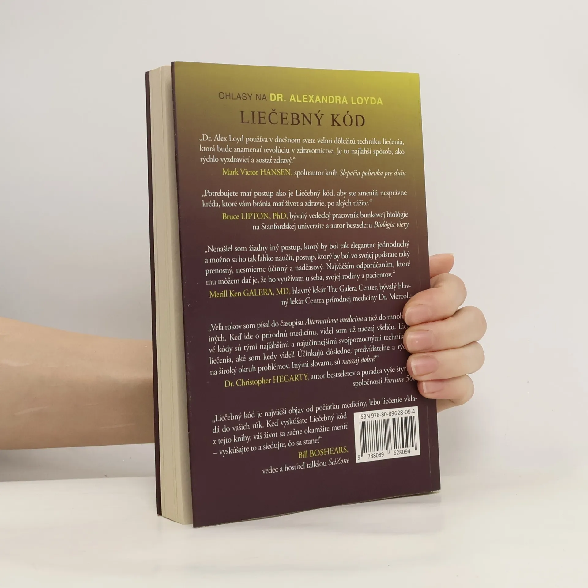 V roku 2001 prišiel Dr. Alexander Loyd na to, ako aktivovať v tele zabudovanú fyzickú funkciu, ktorá odstraňuje zdroj deväťdesiatich piatich percent všetkých ochorení. Nervovo-imunitný systém môže potom vykonávať svoju hojivú prácu všade tam, kde je v tele niečo v neporiadku. Zistenia Dr. Loyda overili testy a tisícky ľudí z celého sveta, ktorí systém Liečebného kódu používajú na nápravu doslova každého fyzického, emocionálneho problému, problému so vzťahmi, ako aj na realizáciu postupu v zamestnaní. Pri testovaní tiež zistil, že existuje Univerzálny Liečebný kód, ktorý môže pomôcť pri liečení väčšiny problémov u väčšiny ľudí. V tejto knihe sa ten Univerzálny Liečebný kód naučíte a jeho vykonanie vám zaberie len niekoľko minút.