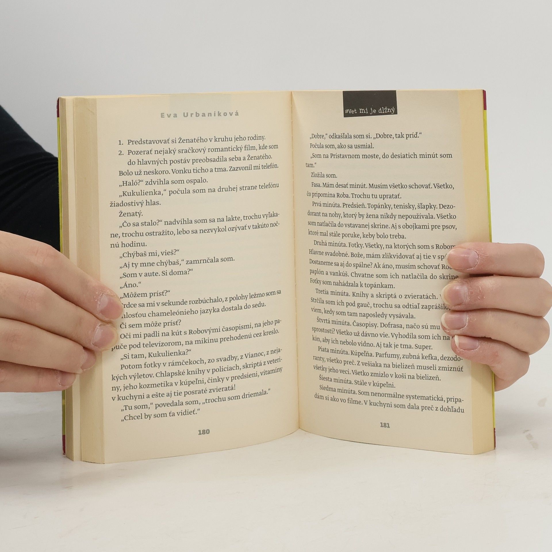 Svet mi je dlžný Keď je láska drogou. Chvíľami teší, v princípe zabíja Šťavnatý príbeh mladej ženy, ktorá chce byť šťastná. ZA KAŽDÚ CENU! Kniha o hľadaní lásky. O hľadaní šťastia. O hľadaní vnútornej rovnováhy. Tie však neprichádzajú, ak hľadáte na nesprávnych miestach. Nová dlhoočakávaná knižka Evity Urbaníkovej bude o tridsiatničke, ktorá je obrazom mnohých dnešných slovenských žien v jej veku. „Zásluhou emancipácie chce vo svojom živote všetko a hneď, zmätene sa motá v prioritách, chodí v bludnom kruhu,“ približuje Evita príbeh novej knihy. „Postupne zisťuje, že jej manželstvo nie je šťastné, že jej láme krídla, no na druhej strane nevie, čo s vlastným životom, so vzťahmi, s prácou, nedokáže byť spokojná a šťastná. Nedokáže však ani definovať príčinu. Chce slobodu, ale nechce byť sama. Chce peniaze, ale nechce pracovať od rána do večera. Chce rodinu, ale chce aj veľa cestovať. Cez mužov, excentrickú matku, cez sestru, na ktorú podvedome žiarli, a cez zúfalé tragikomické zážitky sa snaží nájsť vnútornú rovnováhu. Čo je náročné, ak robí tie isté chyby.“