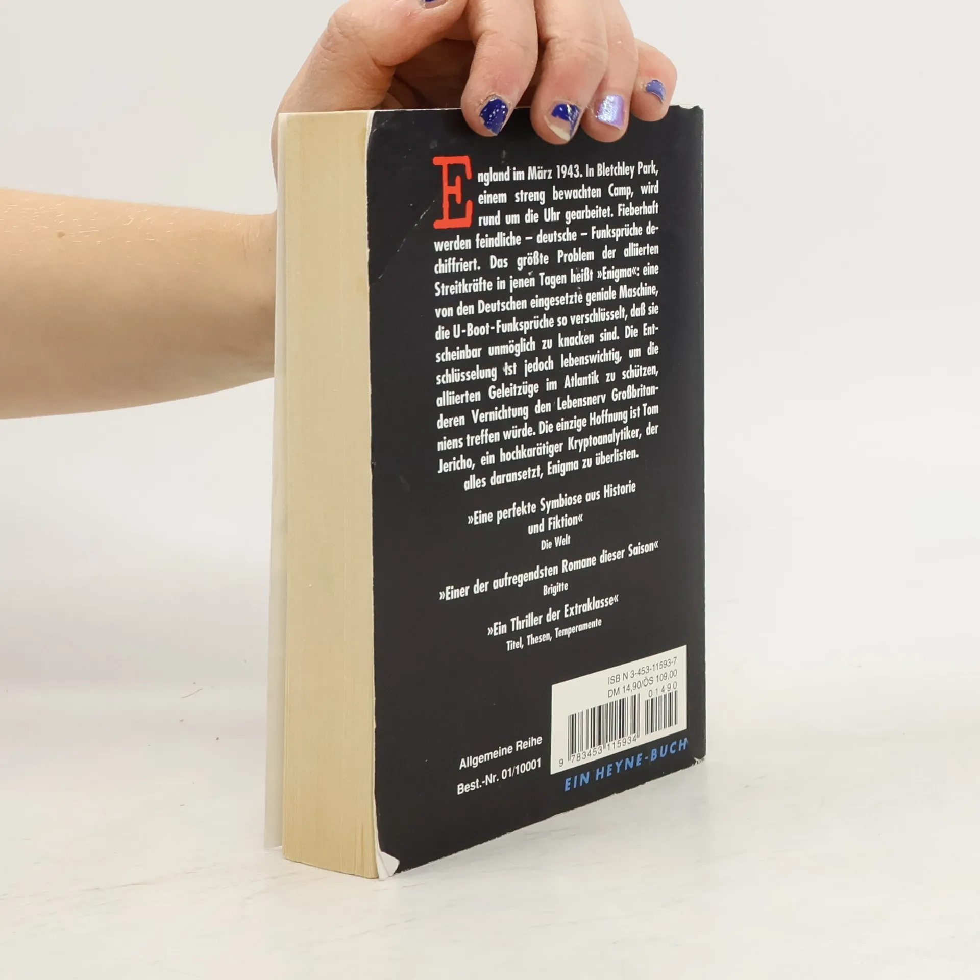 England im März 1943. In Bletchley Park wird fieberhaft daran gearbeitet, die Wunder-Chiffrier-Maschine Enigma, die den Funkverkehr der deutschen U-Boote verschlüsselt, zu knacken. Eine nahezu unlösbare Aufgabe für den Secret Intelligence Service, der seine letzten Hoffnungen in den genialen Kryptoanalytiker Tom Jericho setzt. Es beginnt ein Wettlauf mit der Zeit, der plötzlich sogar in den eigenen Reihen sabotiert zu werden scheint.