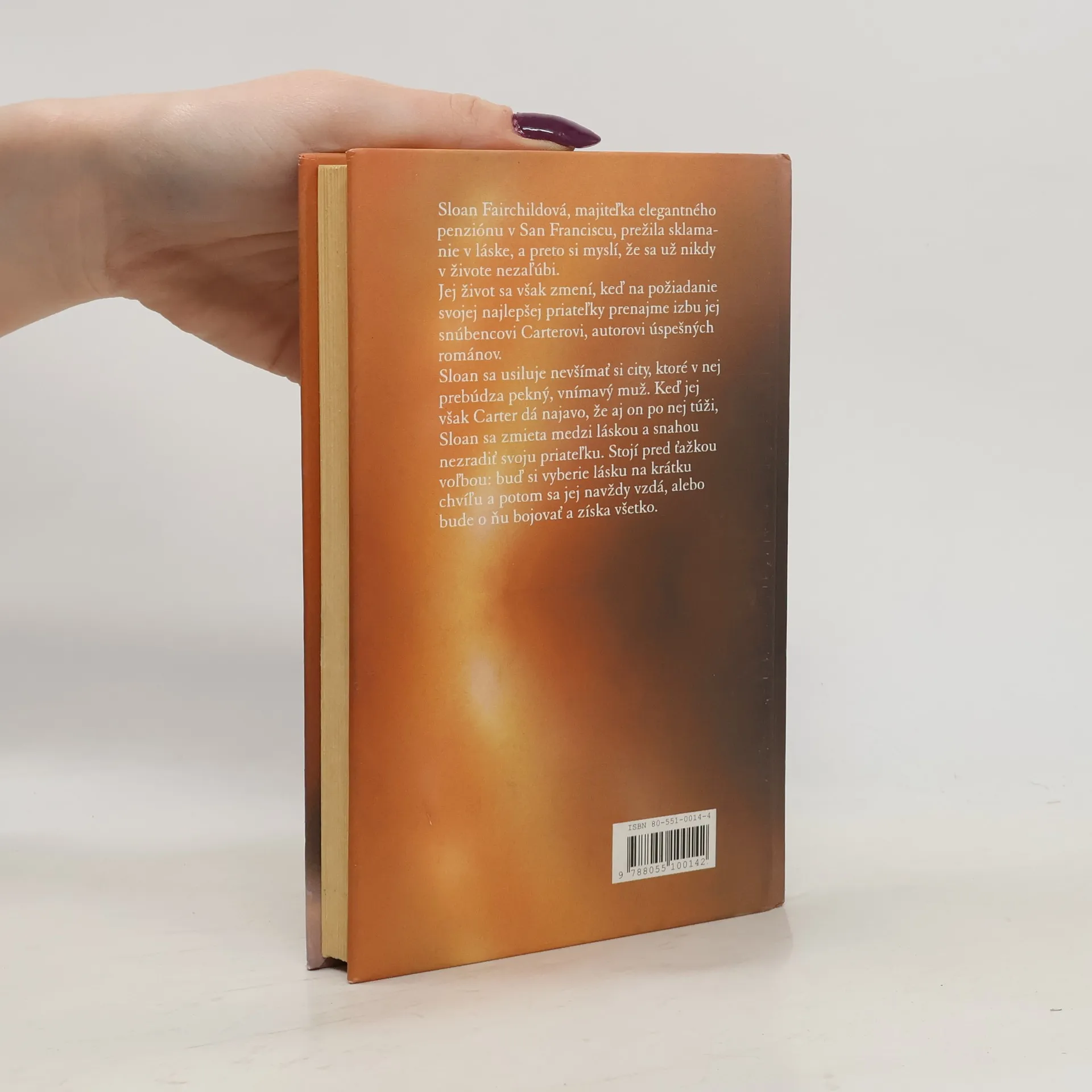 Sloan Fairchildová, majiteľka elegantného penziónu v San Franciscu, prežila sklamanie v láske, a preto si myslí, že sa už nikdy v živote nezaľúbi. Jej život sa však zmení, keď na požiadanie svojej najlepšej priateľky prenajme izbu jej snúbencovi Carterovi, autorovi úspešných románov. Sloan sa usiluje nevšímať si city, ktoré v nej prebúdza pekný, vnímavý muž. Keď jej však Carter dá najavo, že aj on po nej túži, Sloan sa zmieta medzi láskou a snahou nezradiť svoju priateľku. Stojí pred ťažkou voľbou: buď si vyberie lásku na krátku chvíľu a potom sa jej navždy vzdá, alebo bude o ňu bojovať a získa všetko.