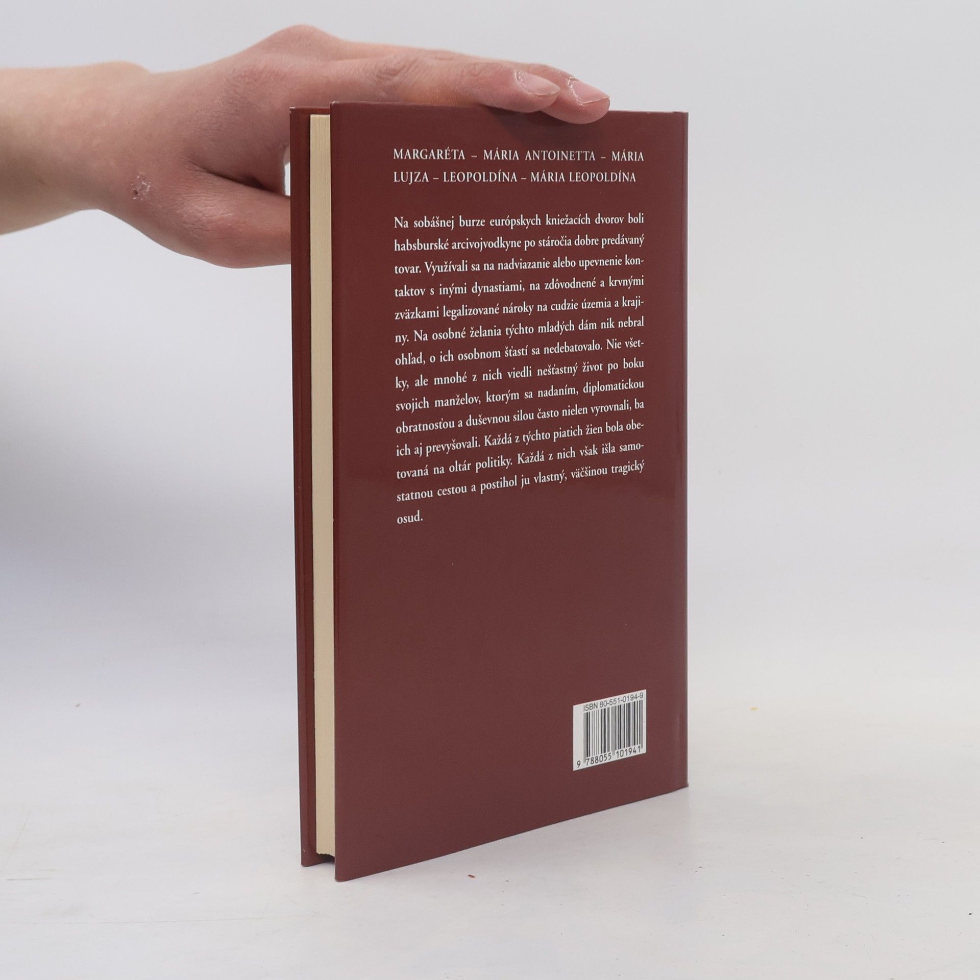 Na sobášnej burze európskych kniežacích dvorov boli habsburské vojvodkyne po stáročia dobre predávaný tovar. Využívali sa na nadviazanie alebo upevnenie kontaktov s inými dynastiami, na zdôvodnené a krvnými zväzkami legalizované nároky na cudzie územia a krajiny. Na osobné želania týchto mladých dám nik nebral ohľad, o ich osobnom šťastí sa nedebatovalo. Nie všetky, ale mnohé z nich viedli nešťastný život po boku ich manželov, ktorým sa nadaním, diplomatickou obratnosťou a duševnou silou často nielen vyrovnali, ba ich aj prevyšovali. Každá z týchto piatich žien bola obetovaná na oltár politiky. Každá z nich však išla samostatnou cestou a postihol ju vlastný, väčšinou tragický osud.