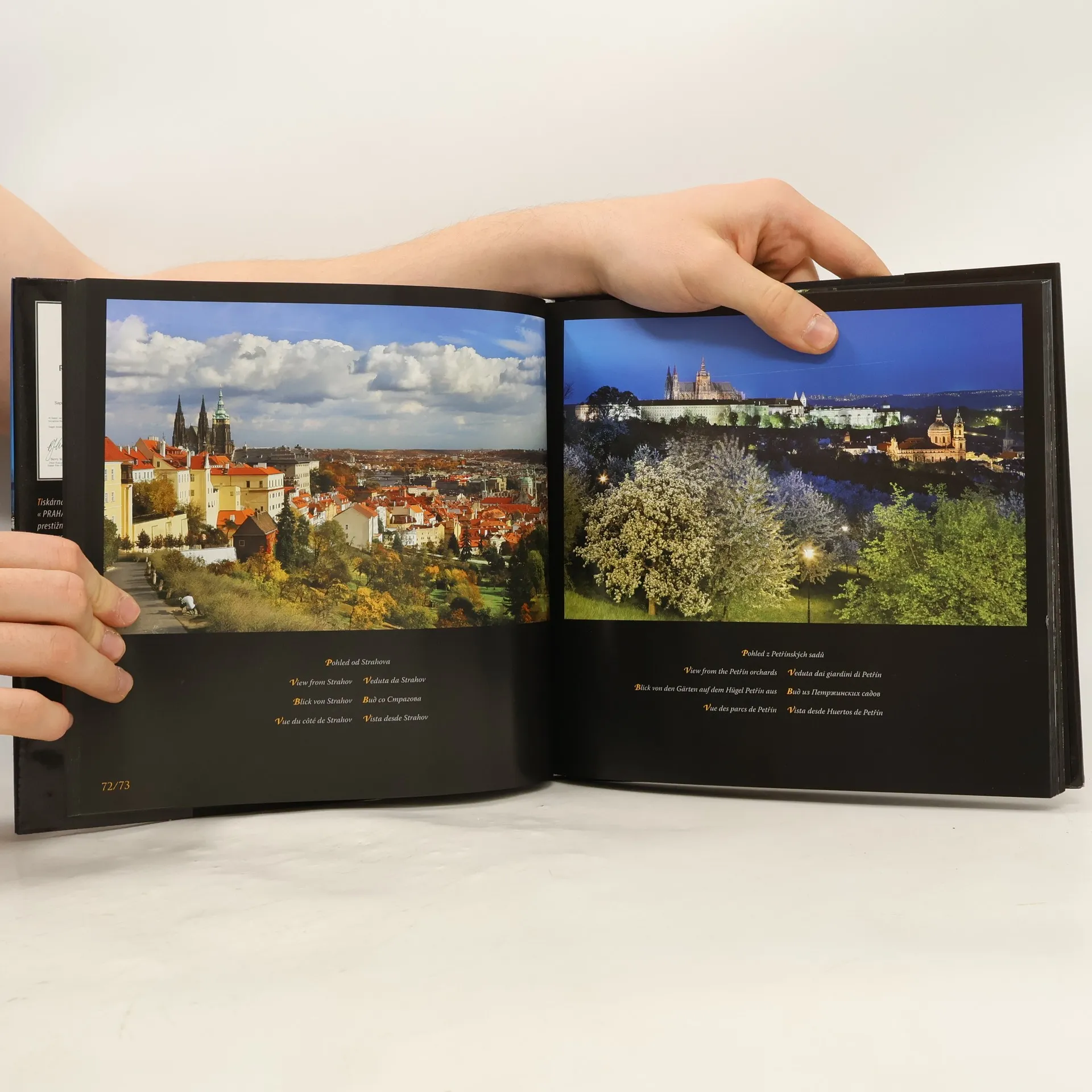 Fotografická publikace o Praze s vícejazyčnými popisky k fotografiím.