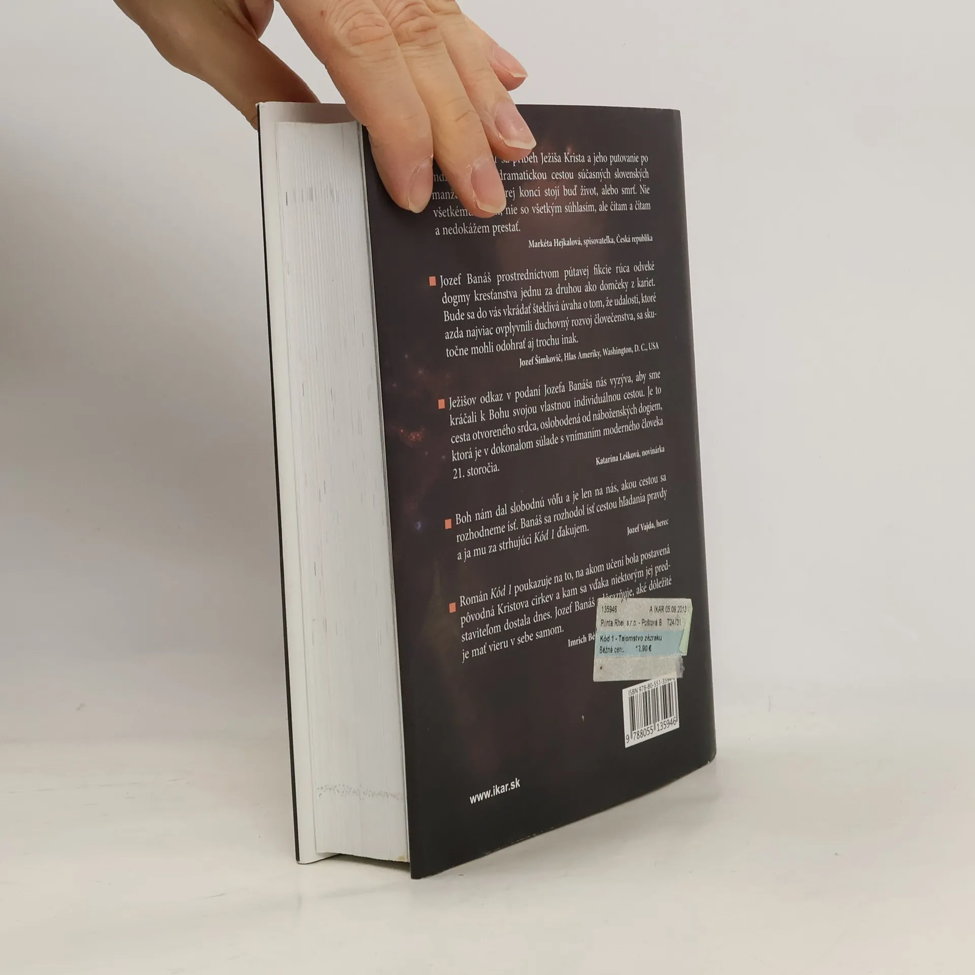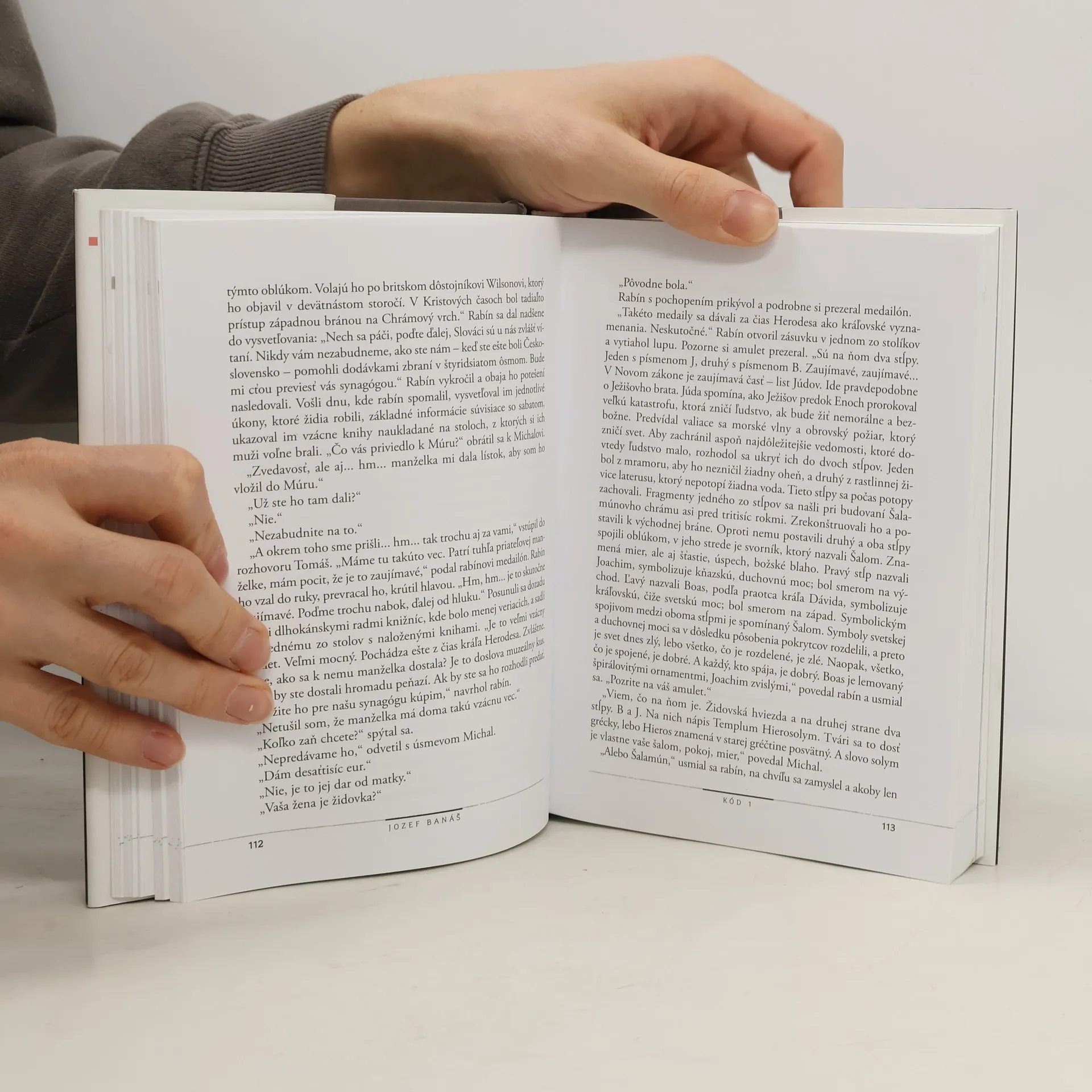 Nachádza sa hrob Ježiša Krista skutočne v Izraeli? Mohol Ježiš pôsobiť v Indii a v Kašmíre? Jozef Banáš vo svojom novom románe Kód 1 opäť rúca zažité dogmy a piliere, na ktorých stojí katolícka cirkev. Prostredníctvom príbehu hlavných hrdinov Mariky a Michala odkrýva silu viery a zároveň prináša množstvo faktov a fotografií dokazujúcich pôsobenie Židov, kresťanov a pravdepodobne aj Ježiša Krista v krajinách, ktoré dnes vnímame výlučne cez prizmu orientálnych náboženstiev. V čase, keď sa katolícka cirkev otriasa vo svojich základoch, táto kniha vyvolá v čitateľovi ešte silnejšie pochybnosti: Čo ak bolo všetko inak? Posilňuje kresťanská viera v ľuďoch pocit viny, utrpenia a bolesti? Ak áno, za akým účelom a aké dôsledky to môže mať na jednotlivca?