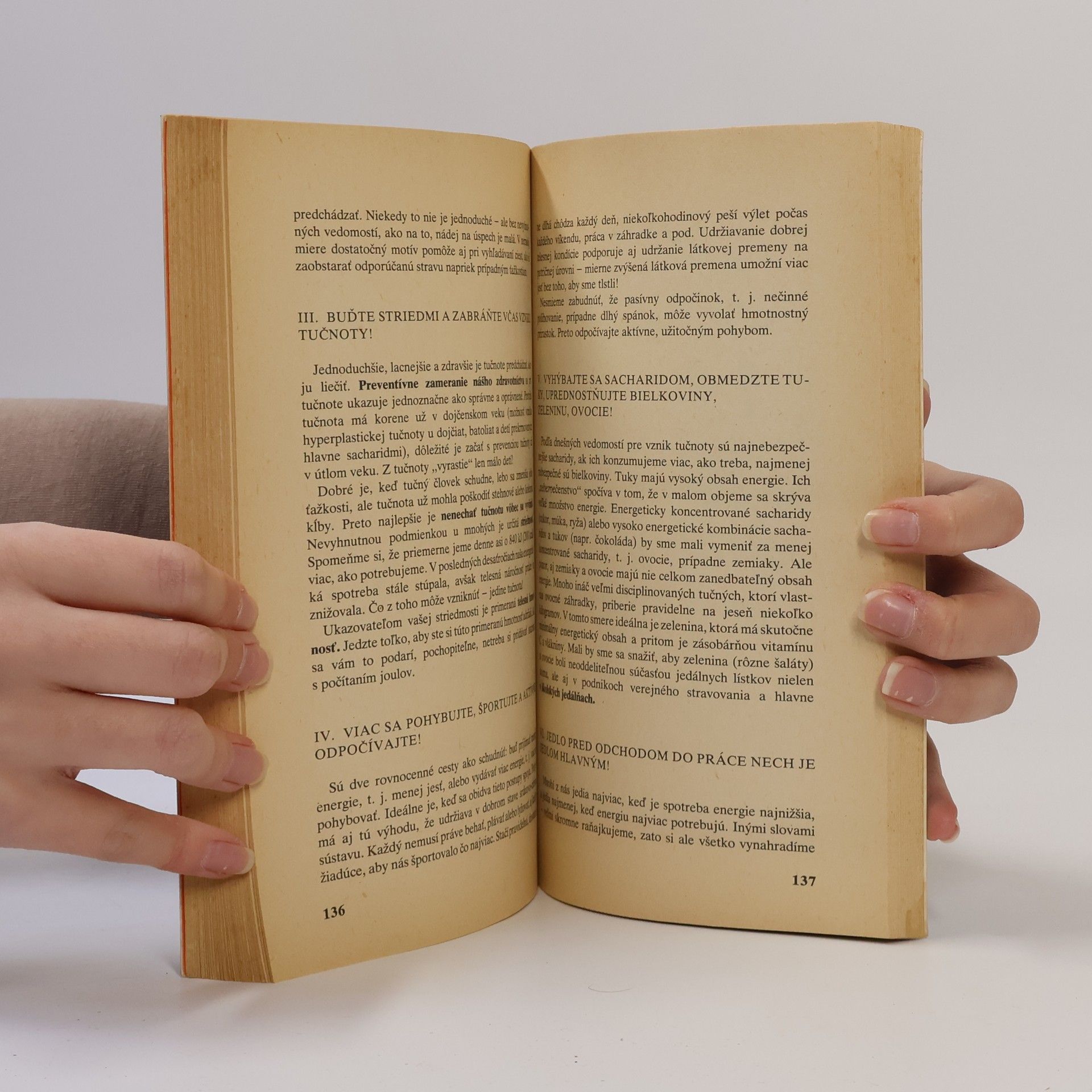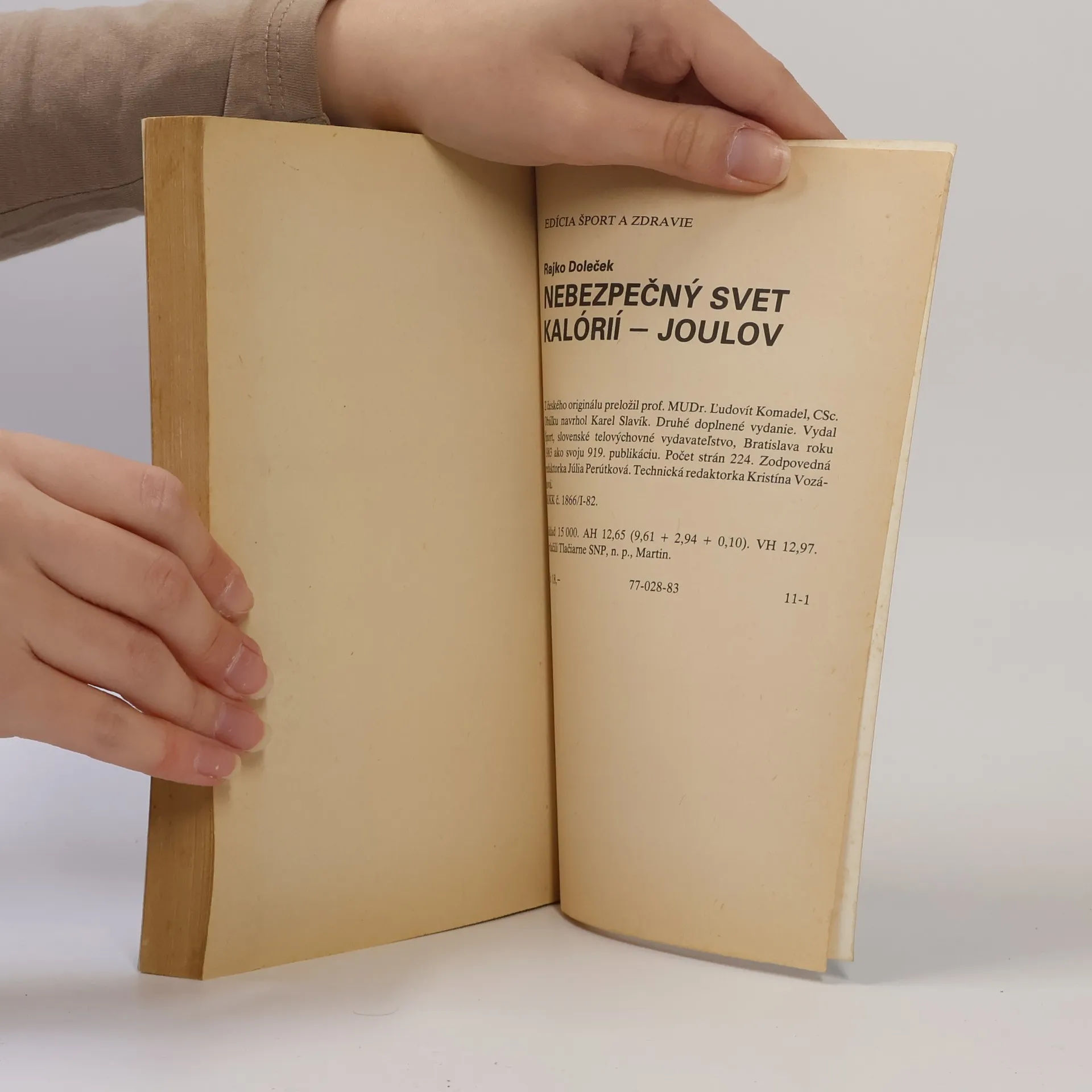 Knižka o možnostiach zlepšenia životosprávy a spôsobu života. Kapitoly: Odhalenie nepriateľa, Odstrašujúce čísla, Tajomstvo joulov /kalórií/, Energetické intermezzo, Kto je najviac ohrozený, Hľadanie vinníka, Čo robiť, Hviezdy na diétnom nebi, Nielen súkromná záležitosť, Desatoro anti-o,Prehľad liečby tučnoty, Tučnota a šport, Tučnota a hormóny, Chudosť, So srdcom sa neradno hrať. Druhé doplnené vydanie. Cena knihy v čase vydania: 18.- Kčs.