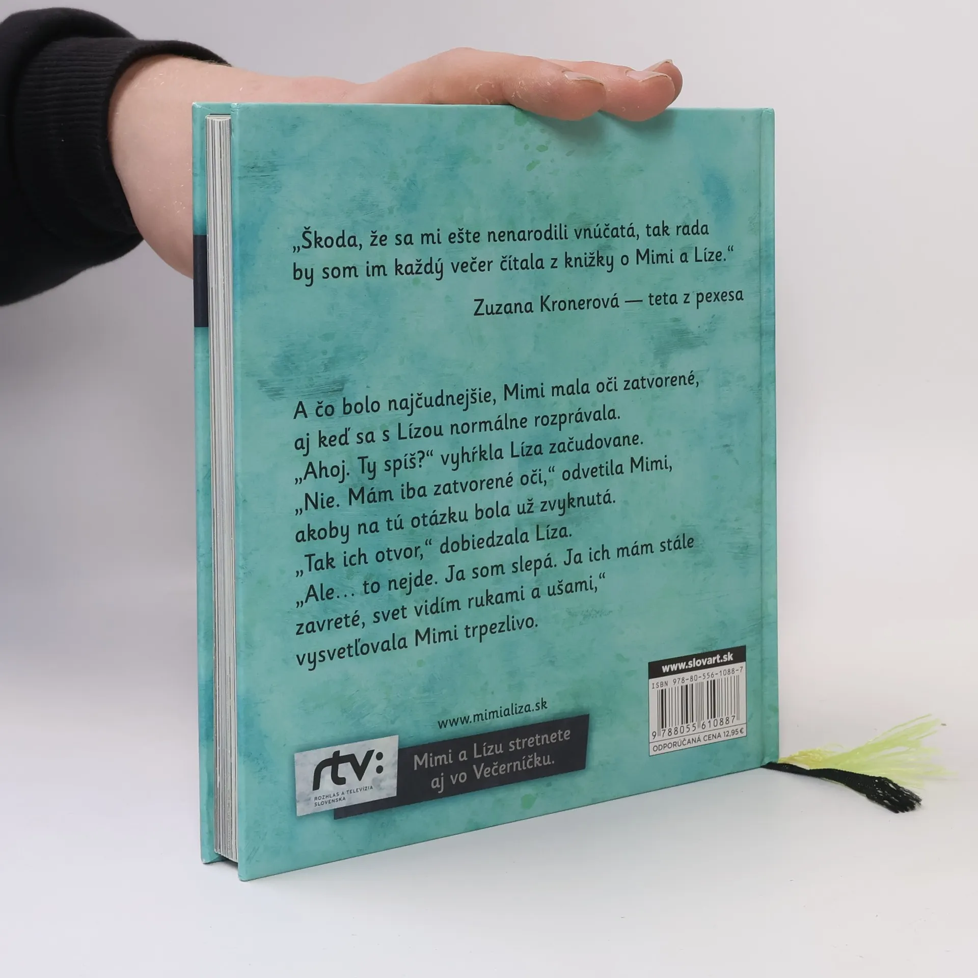 „V mojom meste sú všelijaké domy. Tehlové, kamenné, betónové. Niektoré sú hladké, iné majú zasa hrboľaté steny. Sú vysoké. Viem to, pretože vtáčiky, čo čvirikajú na strechách, počujem dosť slabo.“ Takto hovorí Mimi, ktorá žije vo svete za zavretými očami. No jej svet vôbec nie je nudný a čiernobiely. Spolu s neposednou Lízou spoznávajú susedov a prežívajú dobrodružstvá, kde zrak zrazu nie je taký dôležitý.