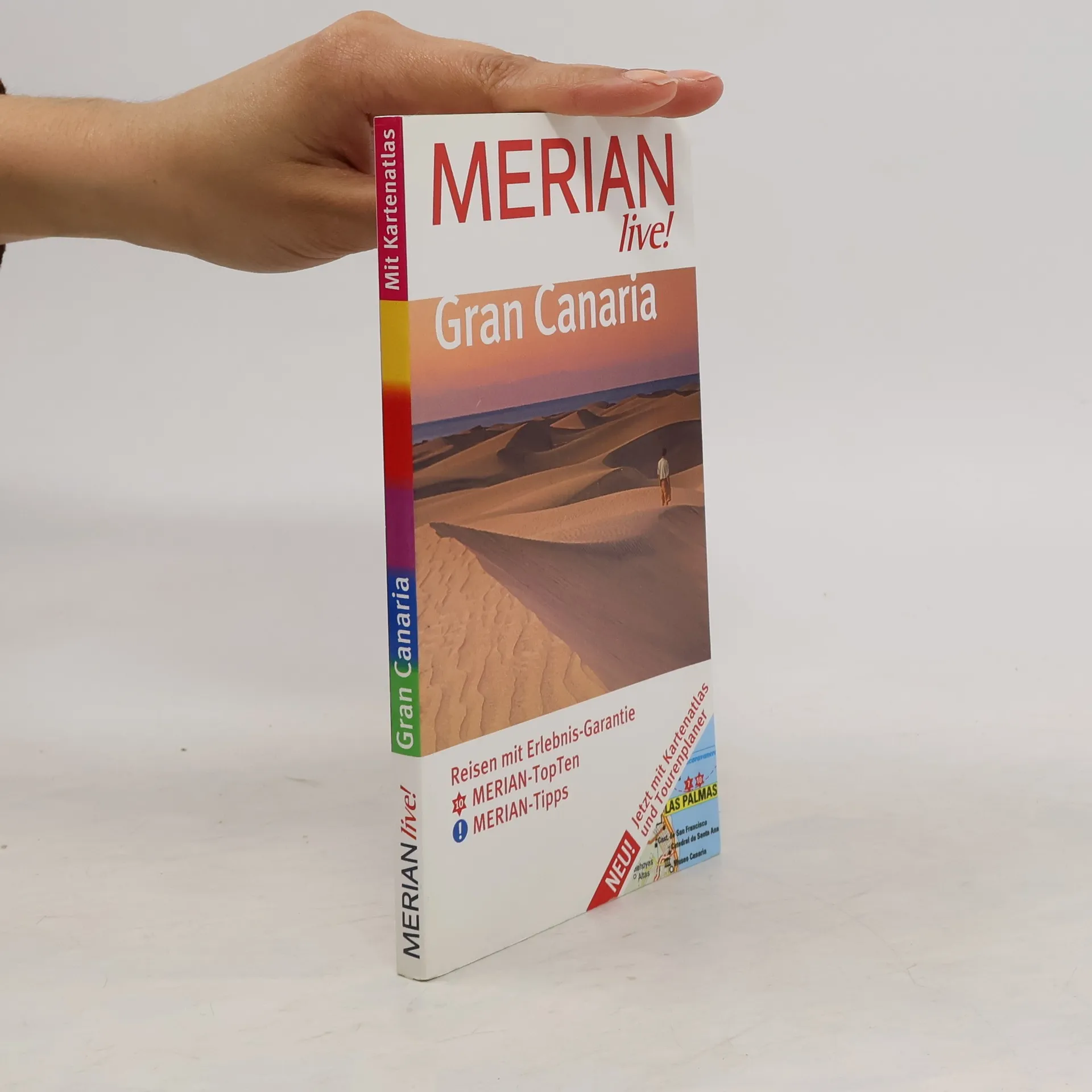 Mehrfach ausgezeichnet als bester Kompakt-Reiseführer: 1. Platz ITB BuchAward! Jetzt neu mit herausnehmbarer Straßenkarte zusätzlich zum Kartenatlas. Extra: MERIAN-Quiz mit Gewinnspiel! +++ Eine Auswahl aus dem Inhalt des MERIAN live! - Die schönsten Orte und Regionen: Las Palmas - Die kosmopolitische Metropole der Kanarischen Inseln + Der Norden - Terrassenfelder, Schafweiden und subtropische Täler + Maspalomas - Sandstrand, Dünen und »Sonnengarantie« + Der Süden - Reizvolle, einsame Plätze +++ Die 5 spannendsten Routen und Touren: Die große Inselrundfahrt + Durch die Berge im Inselinneren + Jeeptour in die Berge und den Südwesten + Wanderung von Arteara nach Los Palmitos + Auf das Altavista-Massiv - Im Kiefernwald in luftiger Höhe +++ Ca. 60 Farbfotos, herausnehmbare Straßenkarte plus 8 Seiten Kartenatlas, 2 Übersichtskarten, 1 Stadtplan, 1 Detailplan, Sprachführer und Essdolmetscher, MERIAN-TopTen und MERIAN-Tipps. +++ MERIAN-Spezial-Thema: Urlaub abseits der Ferienzentren.
