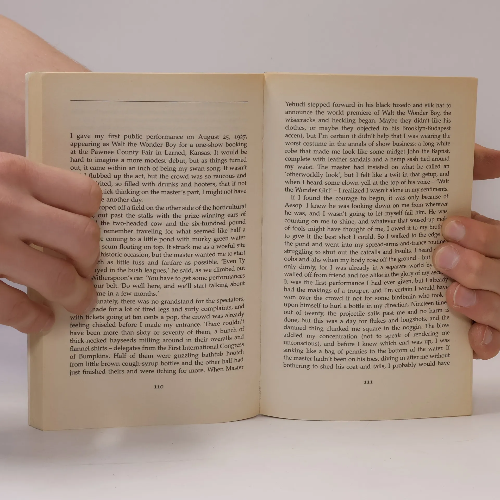 Walt meets Master Yehudi, a dark and mysterious character who sets him on the road to stardom. He is taken to a strange house where he learns first to walk on water and, eventually, to fly.
