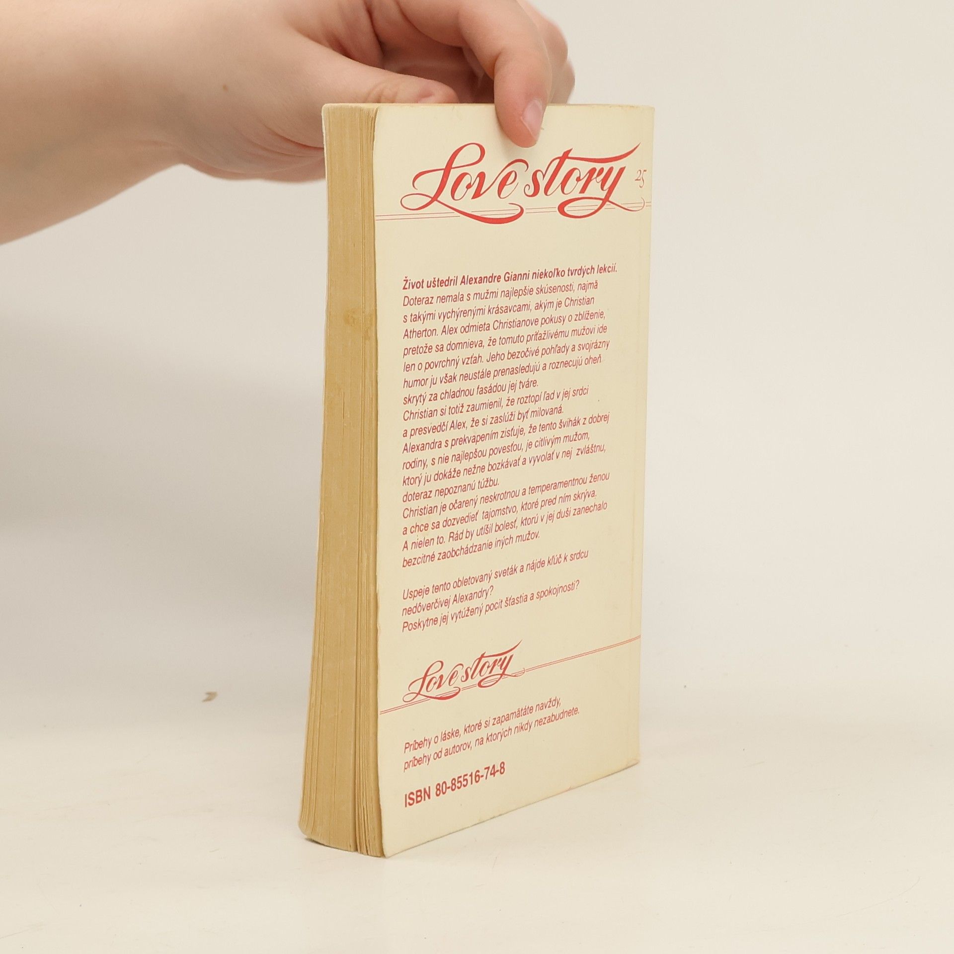 Život uštedril Alexandre Gianni niekoľko tvrdých lekcií. Doteraz nemala s mužmi najlepšie skúsenosti, najmä s takými vychýrenými krásavcami, akým je Christian Atherton. Alex odmieta Christianove pokusy o zblíženie, pretože sa domnieva, že tomuto príťažlivému mužovi ide len o povrchný vzťah. Jeho bezočivé pohľady a svojrázny humor ju však neustále prenasledujú a roznecujú oheň skrytý za chladnou fasádnou jej tváre. Christian si totiž zaumienil, že roztopí ľad v jej srdci a presvedčí Alex, že si zaslúži byť milovaná. Alexandra s preskvapením zisťuje, že tento švihák z dobrej rodiny, s nie najlepšou povesťou, je citlivým mužom, ktorý ju dokáže nežne bozkávať a vyvolať v nej zvláštnu, doteraz nepoznanú túžbu. Christian je očarený neskrotnou a temperamentnou ženou a chce sa dozvedieť tajomstvo, které pred ním skrýva. A nielen to. Rád by utíšil bolesť, ktorú v jej duši zanechalo bezcitné zaobchádzanie iných mužov. Uspeje tento obletovaný sveták a nájde kľúč k srdcu nedôverčivej Alexandry? Poskytne jej vytúžený pocit šťastia a spokojnosti?