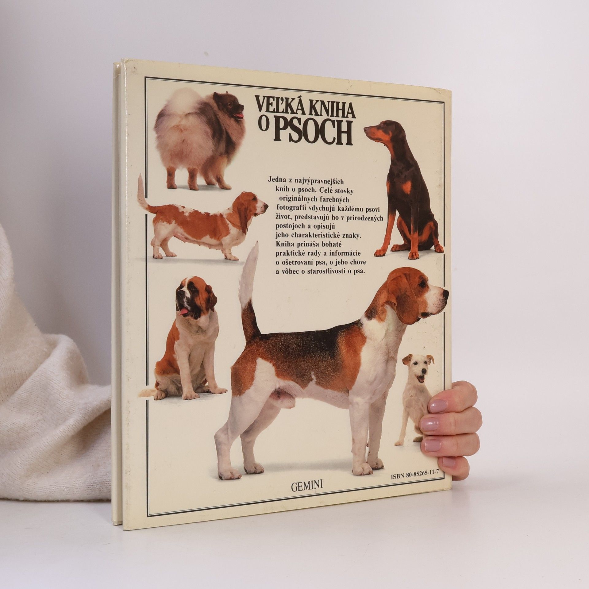 Jedna z najvýpravnejších kníh o psoch. Celé stovky originálnych farebných fotografií vdychujú každému psovi život, predstavujú ho v prirodzených postojoch a opisujú jeho charakteristické znaky. Kniha prináša bohaté praktické rady a informácie o ošetrovaní psa, o jeho chove a vôbec o starostlivosti o psa. Kapitoly: O psovi všeobecne-Pôvod psa a jeho zdomácnenie, Tvar a anatómia, Správanie a inteligencia. Plemená-Štváče a chrty, Poľovné psy, Teriéry, Úžitkové psy, Pracovné psy, Spoločenské psy. Chováme psa-Váš nový pes, Výživa, Ošetrovanie, Cestujeme so psom, Výcvik, Súťaže psov, Zdravotná starostlivosť. Rozmnožovanie-Pohlavie a dedičnosť, Kotnosť a vrh, Materské správanie, Vývoj šteňaťa, Kŕmenie a opatrovanie. Rozdelenie plemien podľa Kynologického klubu Veľkej Británie, Rozdelenie plemien podľa Medzinárodnej kynologickej federácie.