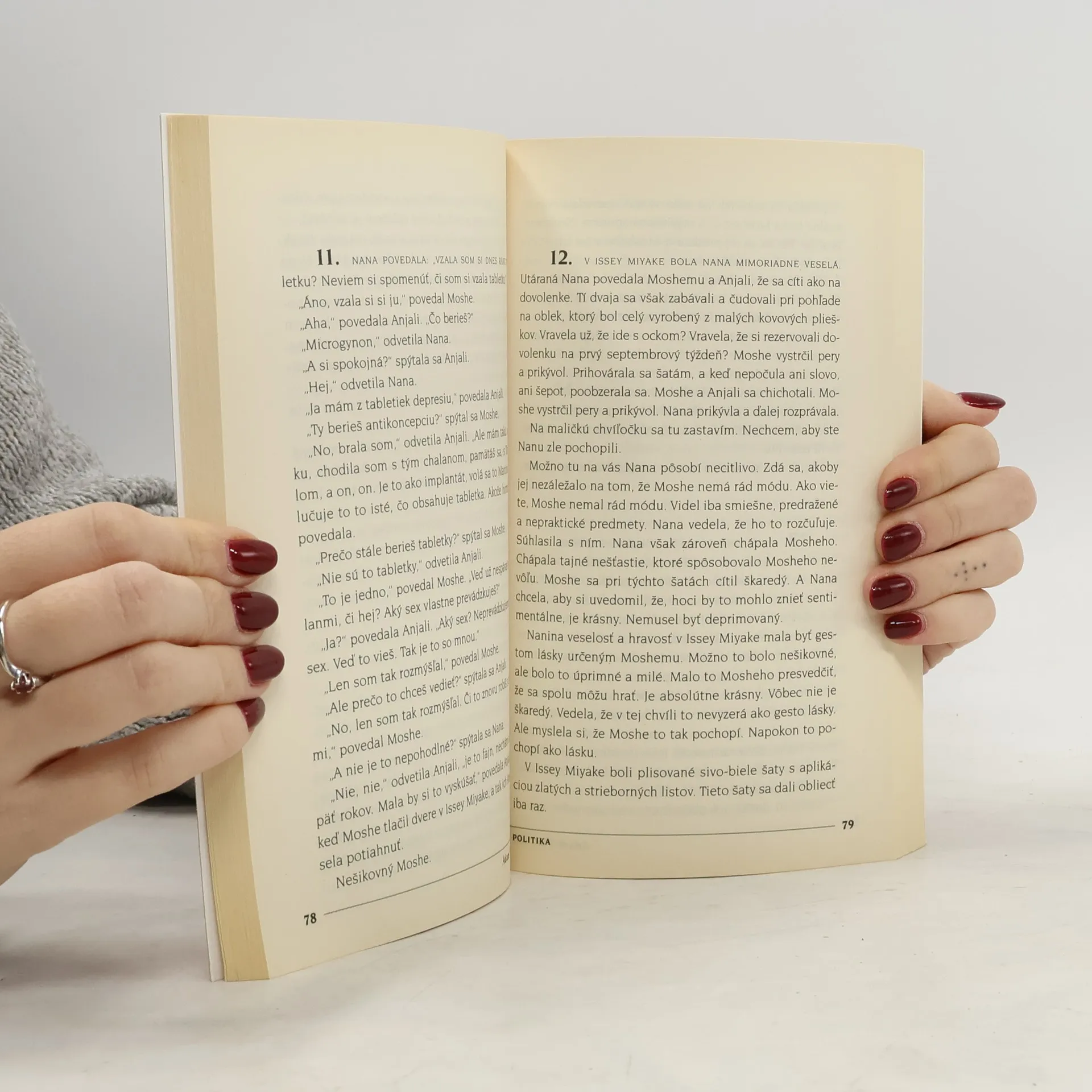 Román Politika nie je vôbec o politike. O čom teda je? Predovšetkým o sexe v trojici, aj keď nie tak úplne. Sexom v trojici sa to začína, avšak ako nás poučí vševedúci rozprávač, sex v trojici vlastne nie je vôbec o sexe. Ani Politika vlastne nie je o sexe. Je o dobre, pretože ide o to, ako byť dobrý. Život v trojici vôbec nie je jednoduchý – ani jeden zo zúčastnených nevie, čo cítia tí druhí a výsledkom je jedno veľké nedorozumenie. Politika je vtipnou psychologickou štúdiou vzťahov medzi tromi postavami.