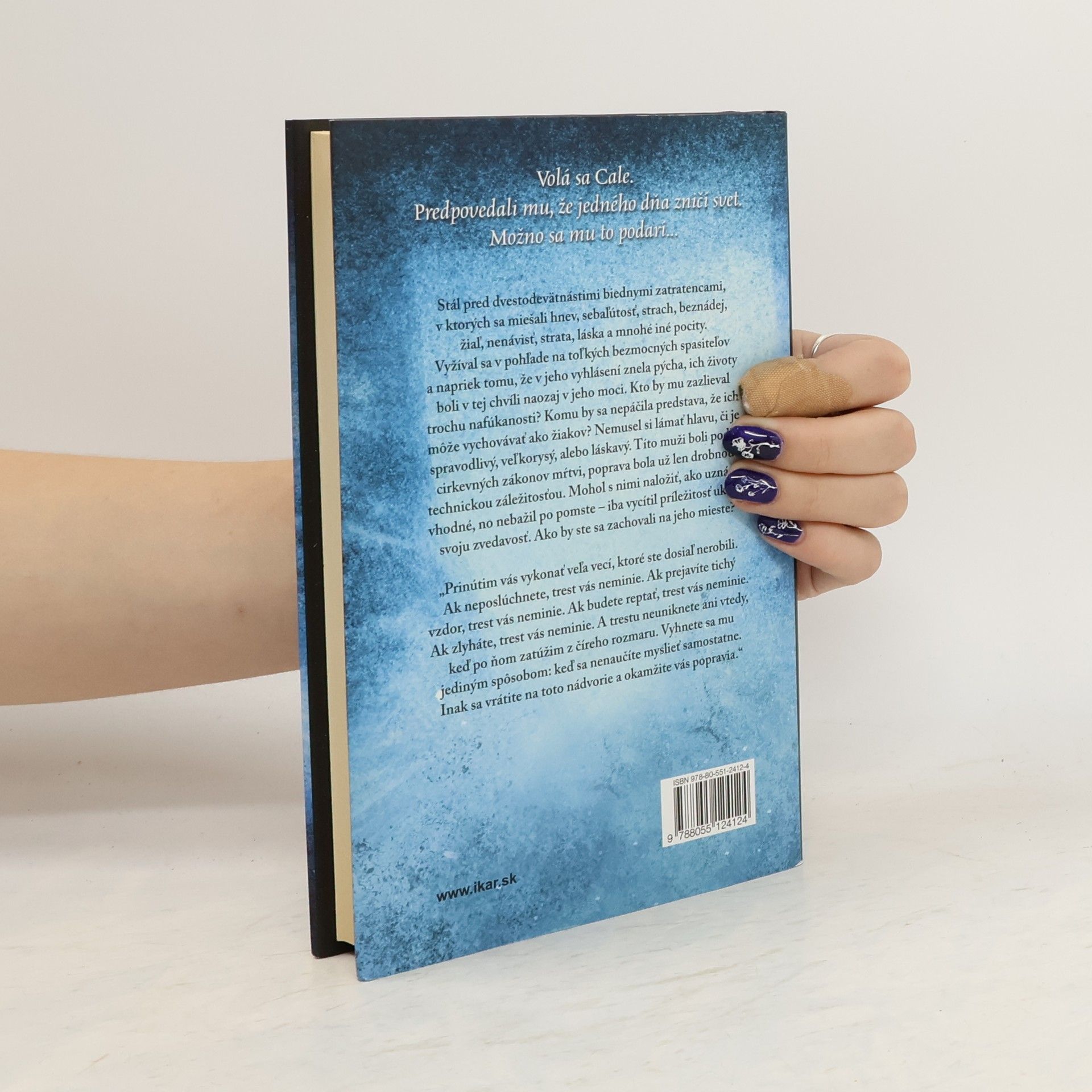 V druhom diele trilógie Paula Hoffmana trpí hlavný hrdina Thomas Cale pocitom roztrpčenia po tom, čo ho zradila láska jeho života, a zahráva sa s čoraz lákavejšou predstavou vyhladenia ľudstva. V sprievode majstra Bosca sa vracia do útulku, kde už nie je chovancom, ale obávaným a uctievaným stelesnením Božieho hnevu. Bosco mu vysvetľuje, že ľudský rod je skrz-naskrz prehnitý, a preto ho treba zničiť a pripraviť svet na príchod dokonalejšej bytosti. No najskôr treba poraziť odporcov a uchvátiť moc v srdci cirkvi spasiteľov. Cesty Caleových priateľov sa rozchádzajú. Kleist sa stáva členom zvláštneho horského klanu zbabelých zlodejov. IdrisPukke odchádza do Španielskeho Leedsu, kde našli útočisko zvyšky rozprášených Materazziovcov. Henri Zahmlievač sa ako jediný rozhodne vyhľadať Calea a zapojí sa do boja proti kacírom. Henri priateľa presviedča, že stále má dôvod žiť. Podarí sa mu to skôr, než bude neskoro?