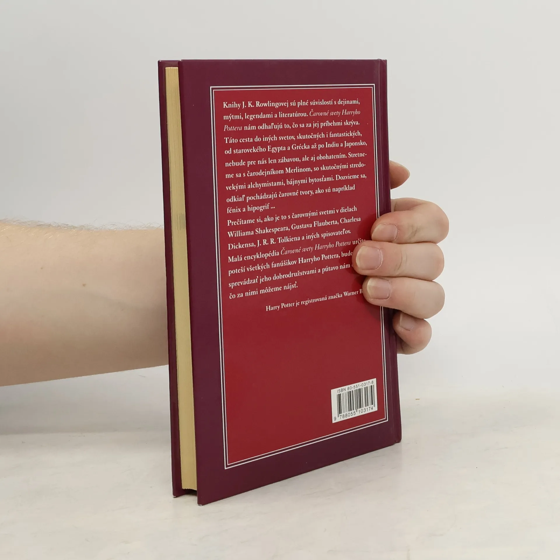 V tejto zábavnej encyklopédii odhalíme zaujímavé súvislosti medzi knižkami o Harrym Potterovi a historickými udalosťami i legendami. Dozvieme sa, z čoho pochádzajú zaklínadlá, ako si ľudia predstavovali čarovné bytosti, prečo študenti z Durmstrangu pricestovali loďou a veľa iných vecí - napr. odkiaľ pochádzajú čarovné tvory, ako napríklad fénix a hipogrif... Prečítame si aj, ako je to s čarovnými svetmi v dielach Williama Shakespeara, Gustava Flauberta, J. R. R. Tolkiena a iných spisovateľov. Pri tejto objavnej výprave do sveta mágie sa nám otvoria dvere, ktoré nás budú lákať nazrieť ďalej do iných vedných disciplín a prebudia v nás chuť začítať sa do starovekých mýtov, legiend a historických kníh