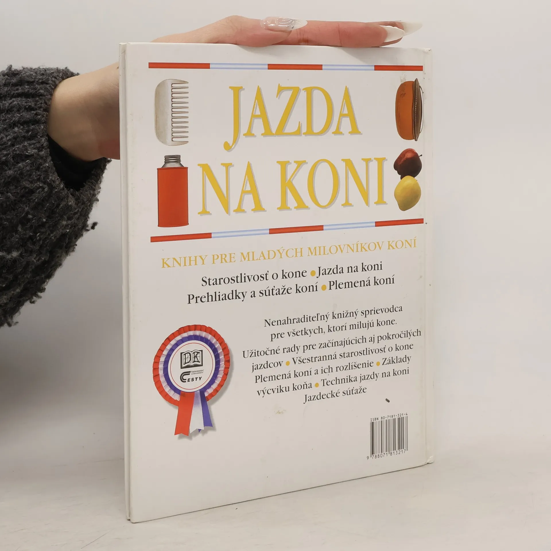 Nenahraditeľný knižný sprievodca pre všetkých, ktorí milujú kone. Užitočné rady pre začínajúcich aj pokročilých jazdcov. Všestranná starostlivosť o kone. Plemená koní a ich rozlíšenie. Základy výcviku koňa. Technika jazdy na koni. Jazdecké súťaže. Kapitoly: Začínaš, Uzdenie a sedlanie koňa, Nasadanie a zosadanie, V sedle, Prvé kroky, Klus, Výcvik v sedle, Cval a trysk, Pre pokročilých, Učíš sa skákať, Vychádzky do terénu, Pre pokročilých, Skákanie pre pokročilých, Westernové jazdenie, Pomáhaš pri výcviku, Ťažko ovládateľné kone, Dovolenka v sedle, Prvá pomoc a zásady bezpečnosti. Prvé vydanie.
