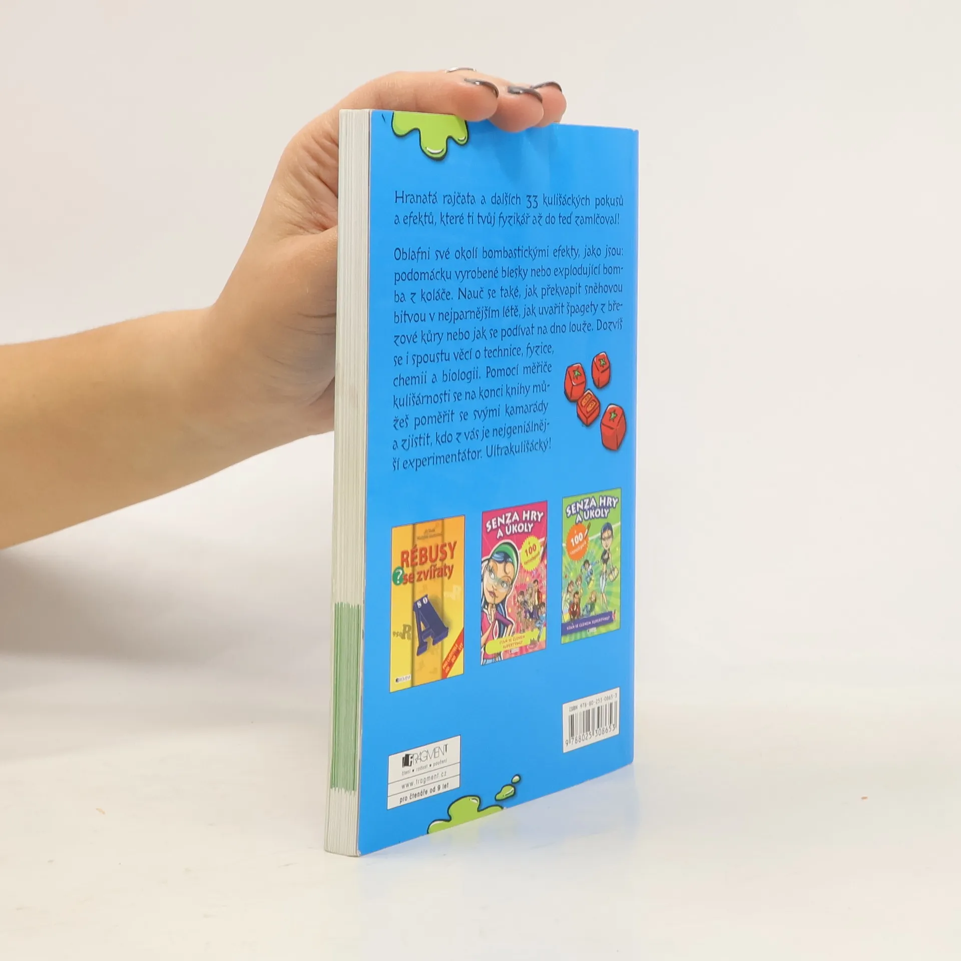 Hranatá rajčata a dalších 33 kulišáckých pokusů a efektů, které ti tvůj fyzikář až do teď zamlčoval! Oblafni své okolí bombastickými efekty, jako jsou: podomácku vyrobené blesky nebo explodující bomba z koláče. Nauč se také, jak překvapit sněhovou bitvou v nejparnějším létě, jak uvařit špagety z březové kůry nebo jak se podívat na dno louže. Dozvíš se i spoustu věcí o technice, fyzice, chemii a biologii. Pomocí měřiče kulišárnosti se na konci knihy můžeš poměřit se svými kamarády a zjistit, kdo z vás je nejgeniálnější experimentátor. Ultrakulišácký!