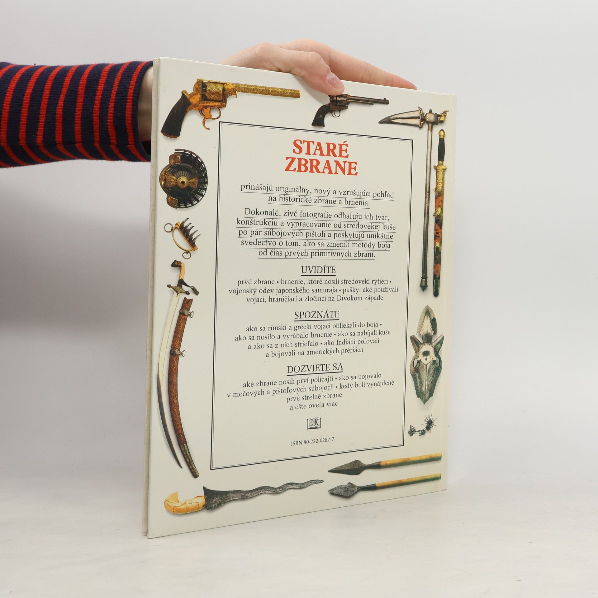 Od pästného klinu doby kamennej po legendárne pušky Divokého západu. Obsah: Praveké zbrane, Vrhacie zbrane, Prví bojovníci, Rímsky legionár, Zbrane temného stredoveku, Európske meče, Kuša versus dlhý luk, Sekery, dýky a nože, Plátové a drôtené brnenie, Súčasti plátového brnenia, Prilby, Turnajové brnenie, Indický bojovník, Indické zbrane, Japonský samuraj, Prvé palné zbrane, Kresadlové palné zbrane, Súbojové meče, Súbojové pištole, Útok zbojníkov, Zvláštne zbrane, Granátnici a kavaléria, Zákon a poriadok, Perkusný revolver, Pištole, Pušky, ktoré dobyli Západ, Severoamerickí Indiáni.