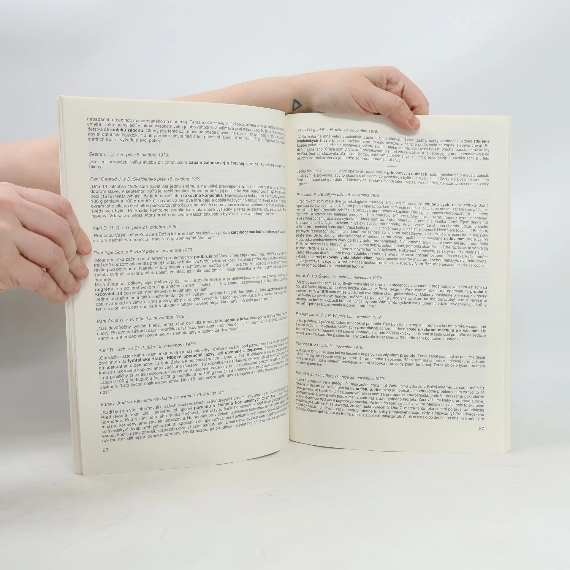 Listy a správy o liečebných úspechoch podľa bylinkárskej knižky "Zdravie z božej lekárne". Cena knihy v čase vydania: 59.- Kčs.